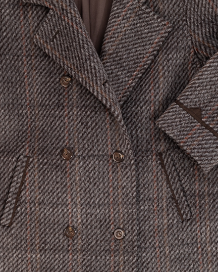 - Плотная шерстяная ткань подчёркивает фактуру диагонального плетения