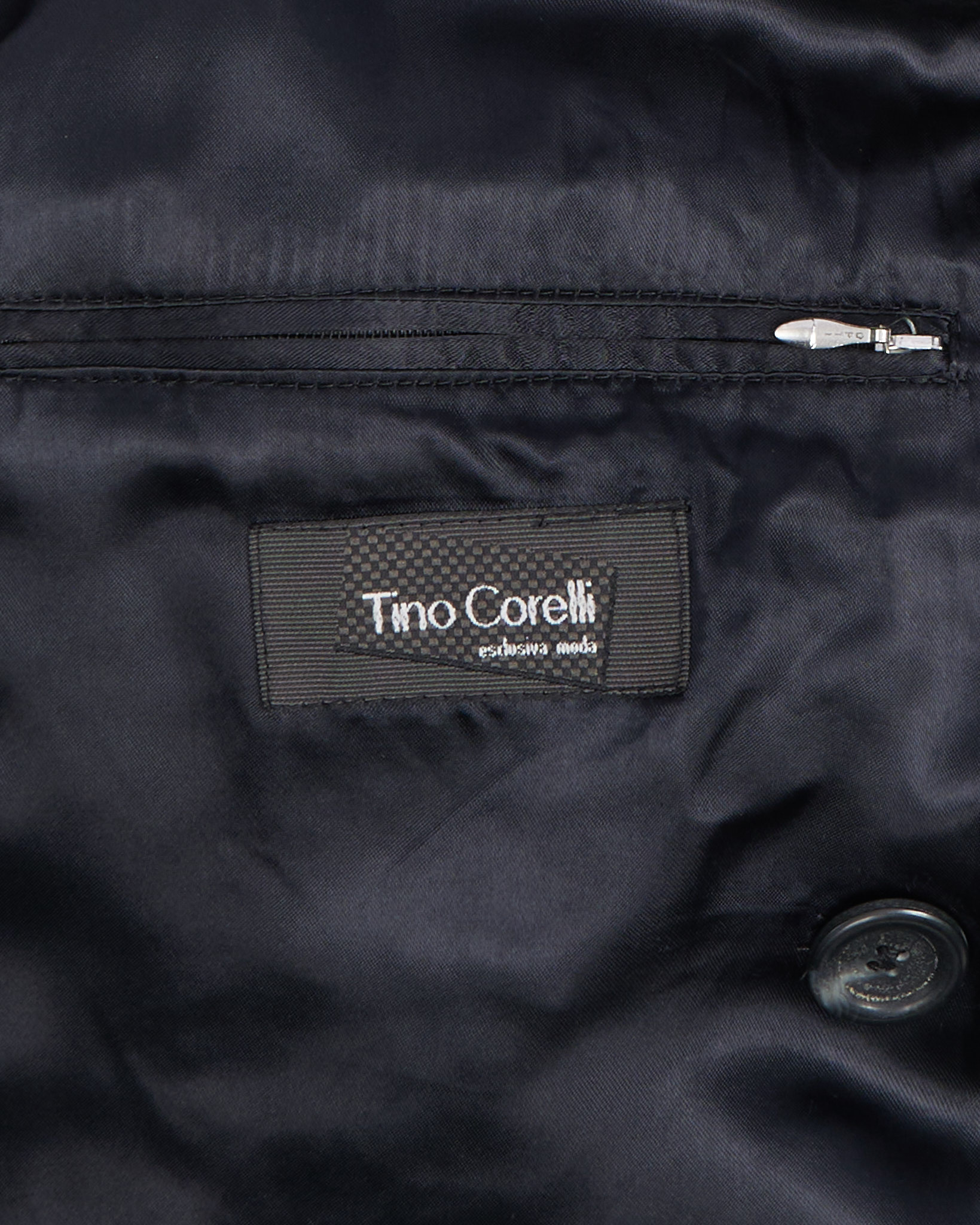 Двубортное пальто из шерсти и кашемира от Tino Corelli. Прямой силуэт с чёткой линией плеч. Классическая застёжка на два ряда пуговиц и аккуратные прорезные карманы.