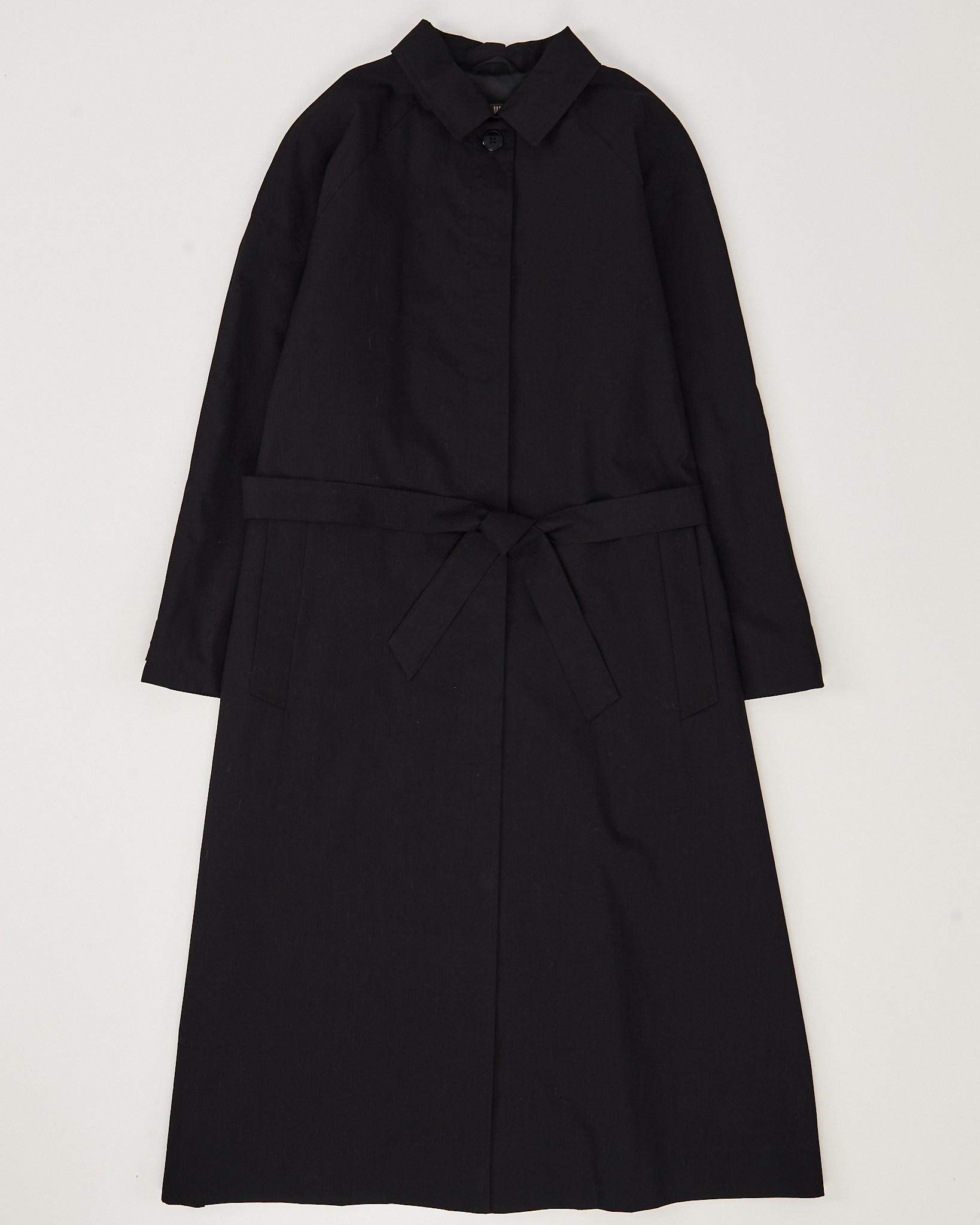 Пальто с поясом Rohdi Heintz в чёрном цвете. Материал держит форму, поверхность гладкая и приятная на ощупь. Прямой силуэт с мягкой линией плеч и аккуратным воротником. Пояс подчёркивает талию и позволяет регулировать посадку