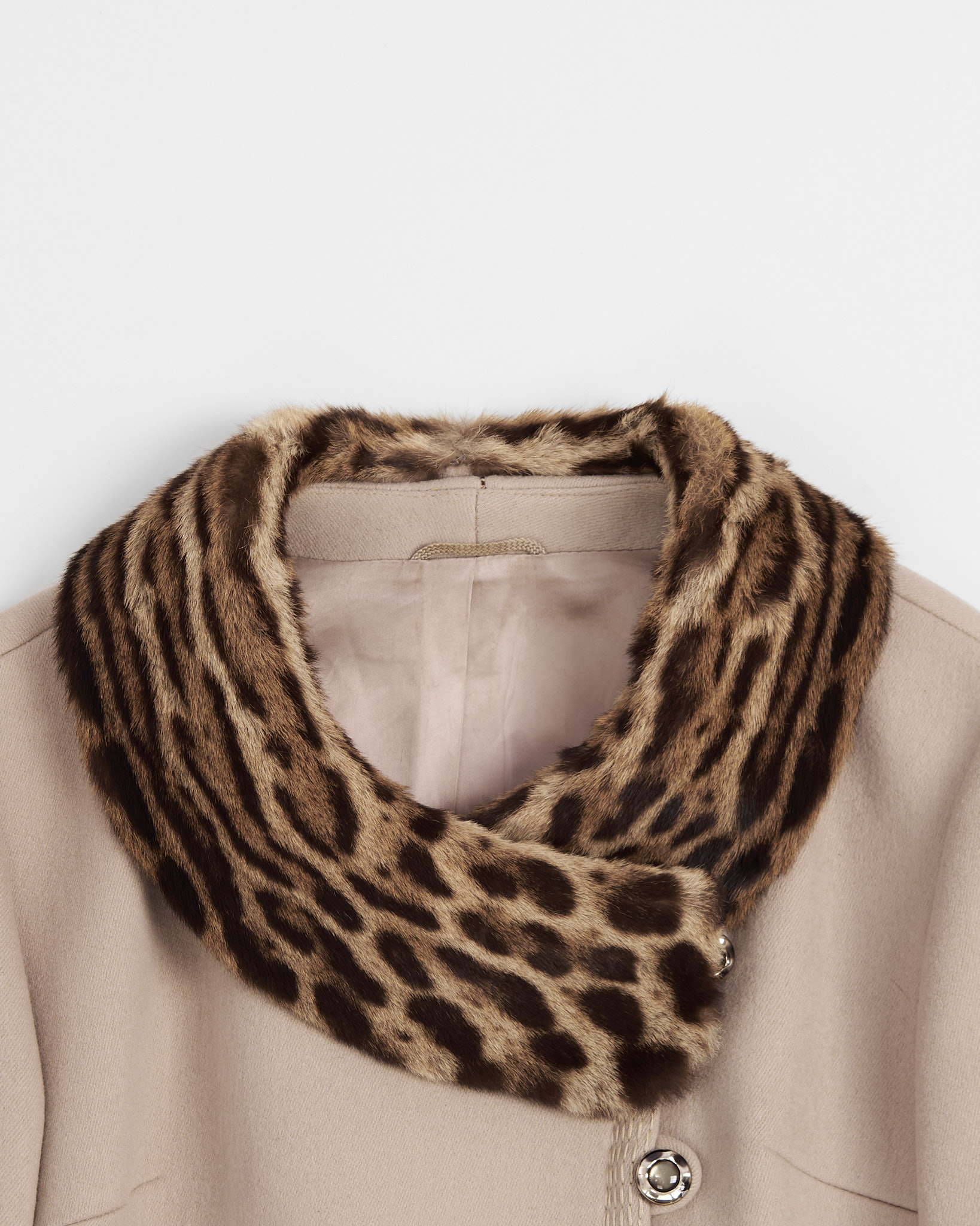 Элегантное бежевое пальто c эффектным леопардовым воротником от бренда Gerlach. Пальто в стиле 60-х, силуэт колокол. Премиальное качество, ткань по ощущениям- шерсть с кашемиром, воротник из натурального меха.