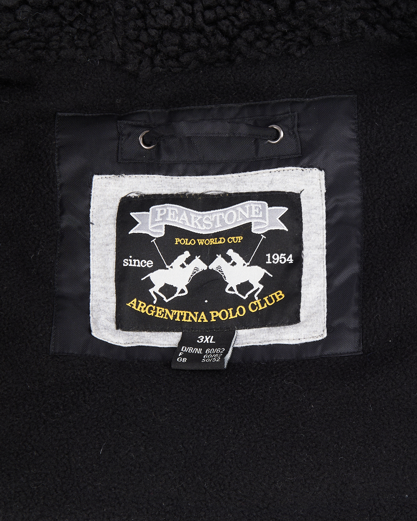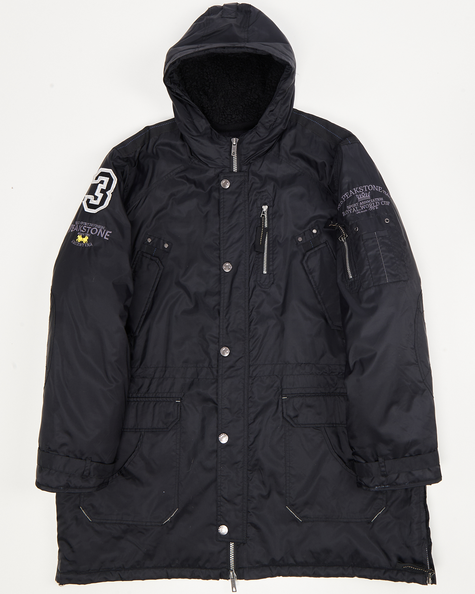 Парка Peakstone Polo Sport Division. Черная парка в спортивном стиле, прямой крой, свободная посадка. Детали в виде нашивок, вышивка и контрастные строчки. Множество карманов, утепленный капюшон.