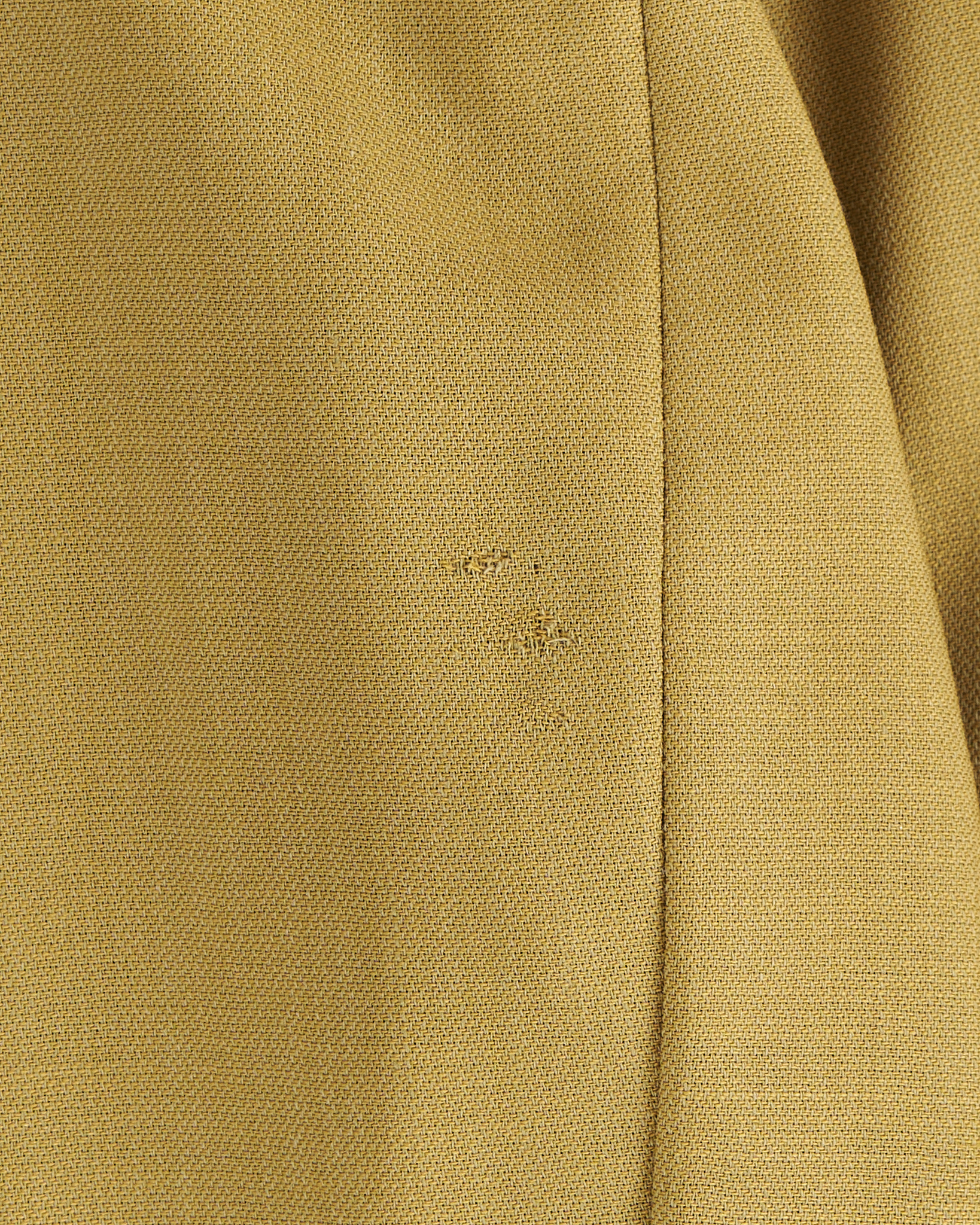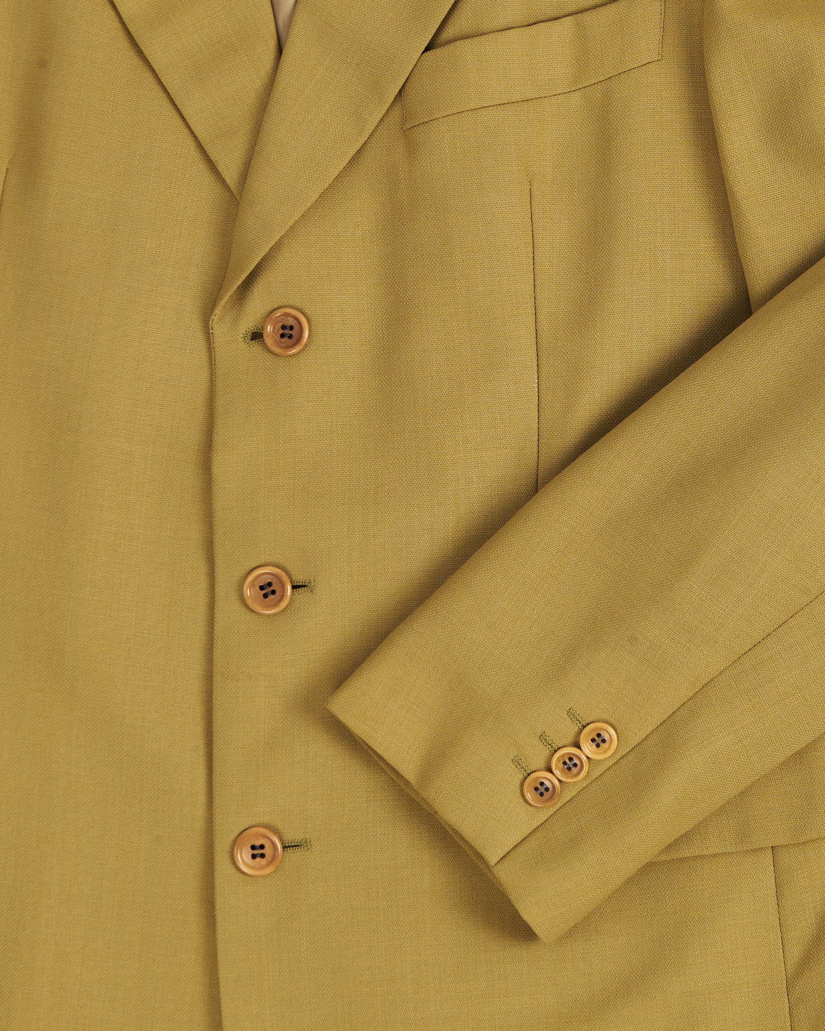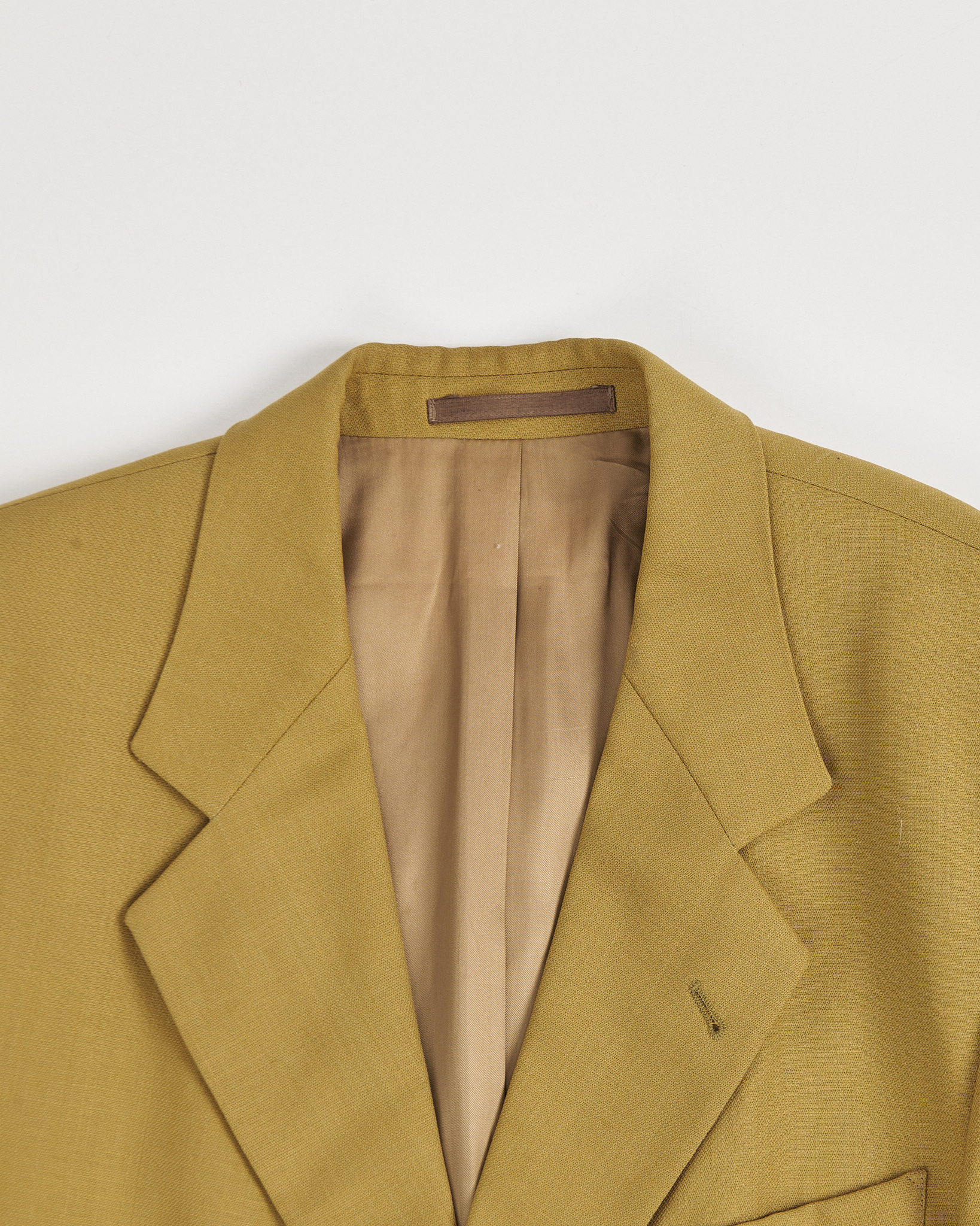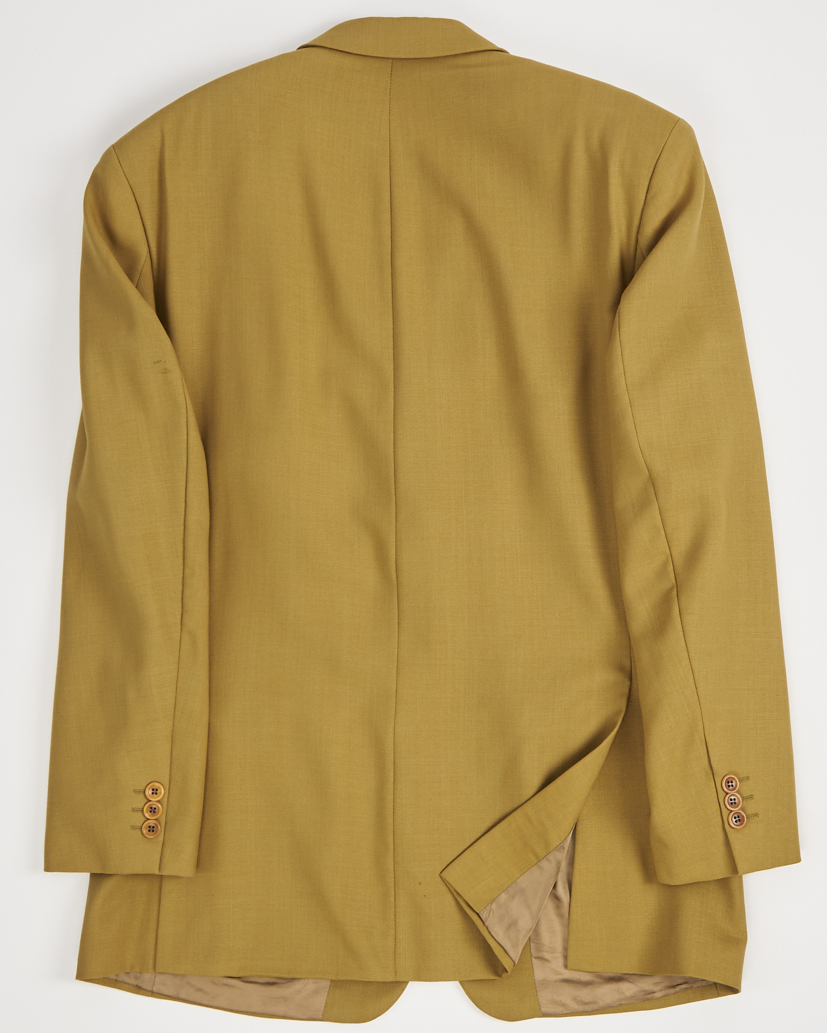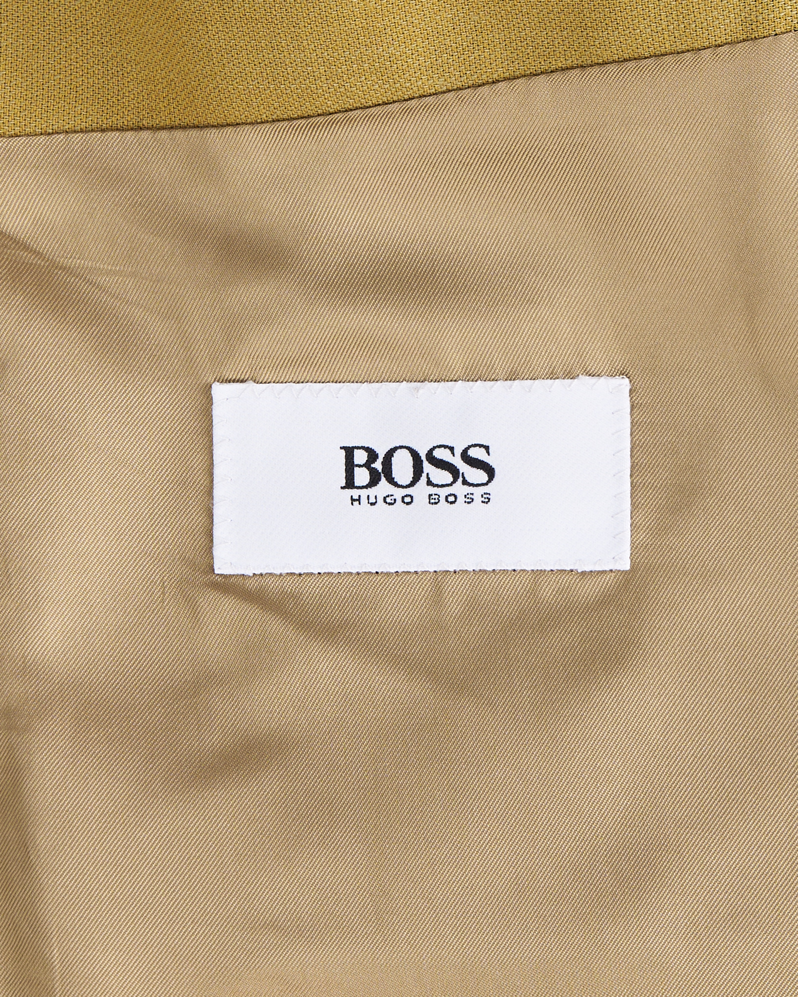 Пиджак BOSS Hugo Boss в горчичном оттенке. Пиджак выполнен из плотной костюмной шерсти. Прямой крой, подплечники. Модель отражает эстетику минимализма и делового стиля.