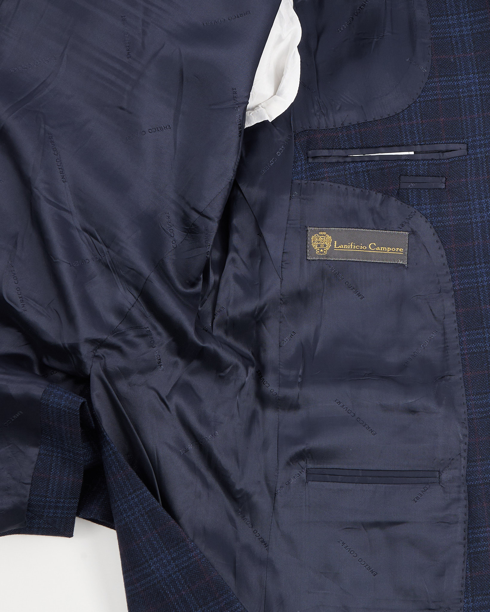 Пиджак из плотной натуральной шерсти с клеткой. Прямая посадка, аккуратные лацканы и классическая застёжка. Ткань от итальянской мануфактуры Lanificio Campore.