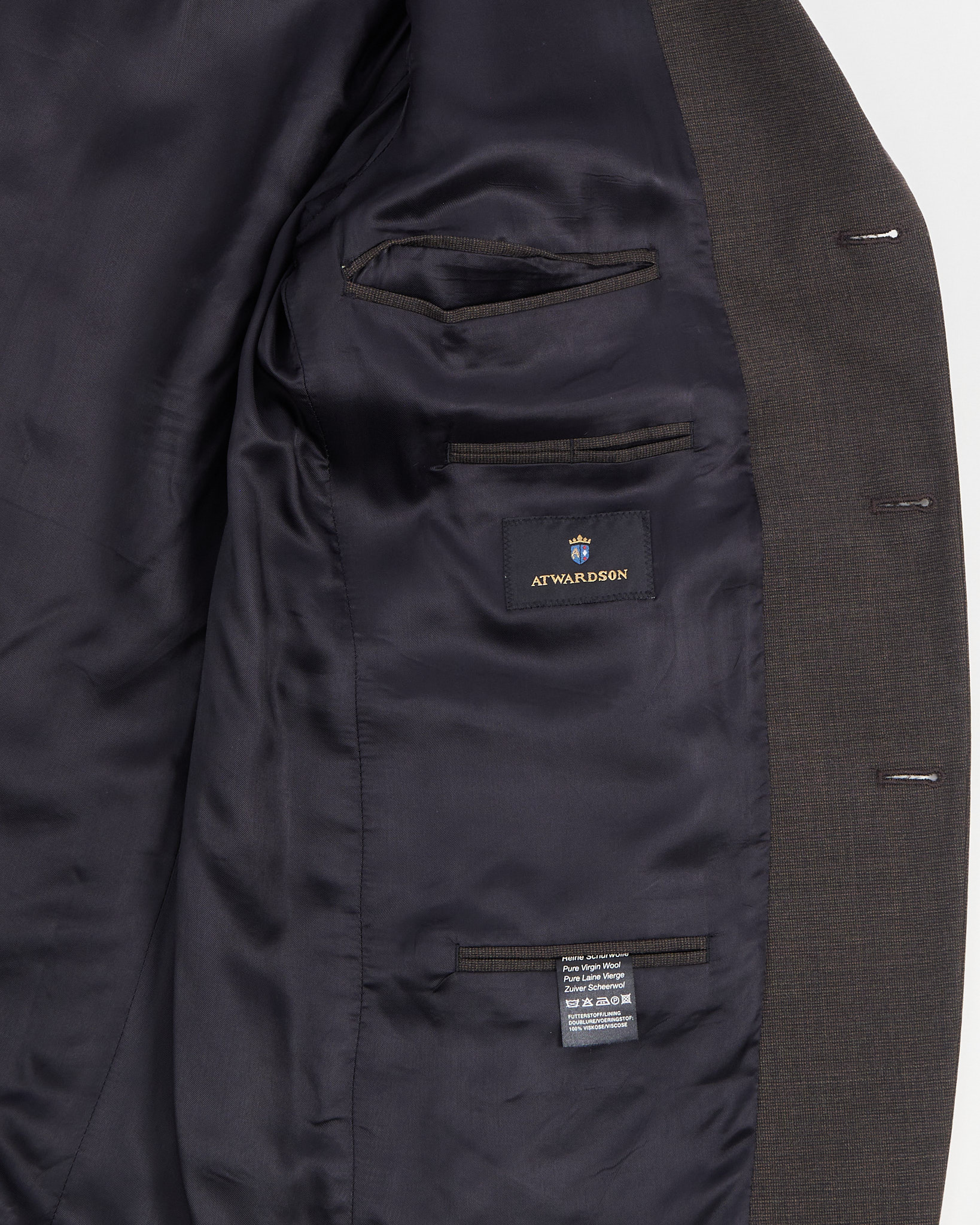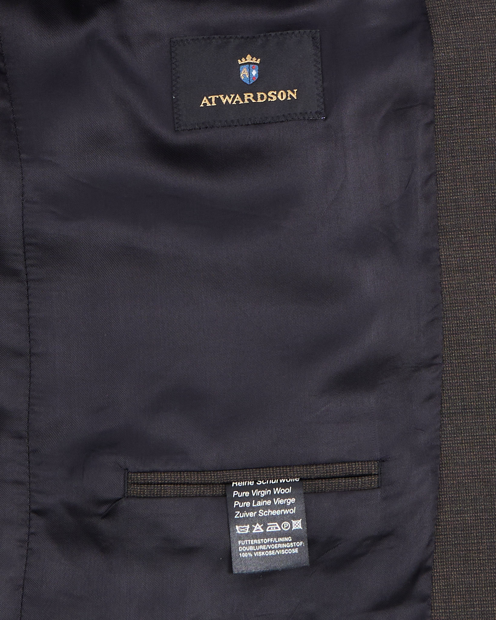 Пиджак из 100% шерсти Atwardson. Посадка прямая, внутренняя подкладка из вискозы, функциональные карманы, акцентные вытачки.