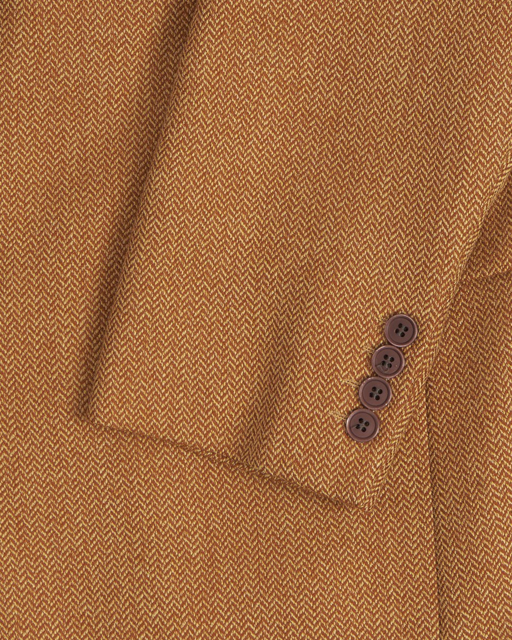 Горчичный пиджак из итальянской шерсти Cerruti 1881. Однобортный пиджак, прямой силуэт, свободная посадка по фигуре.