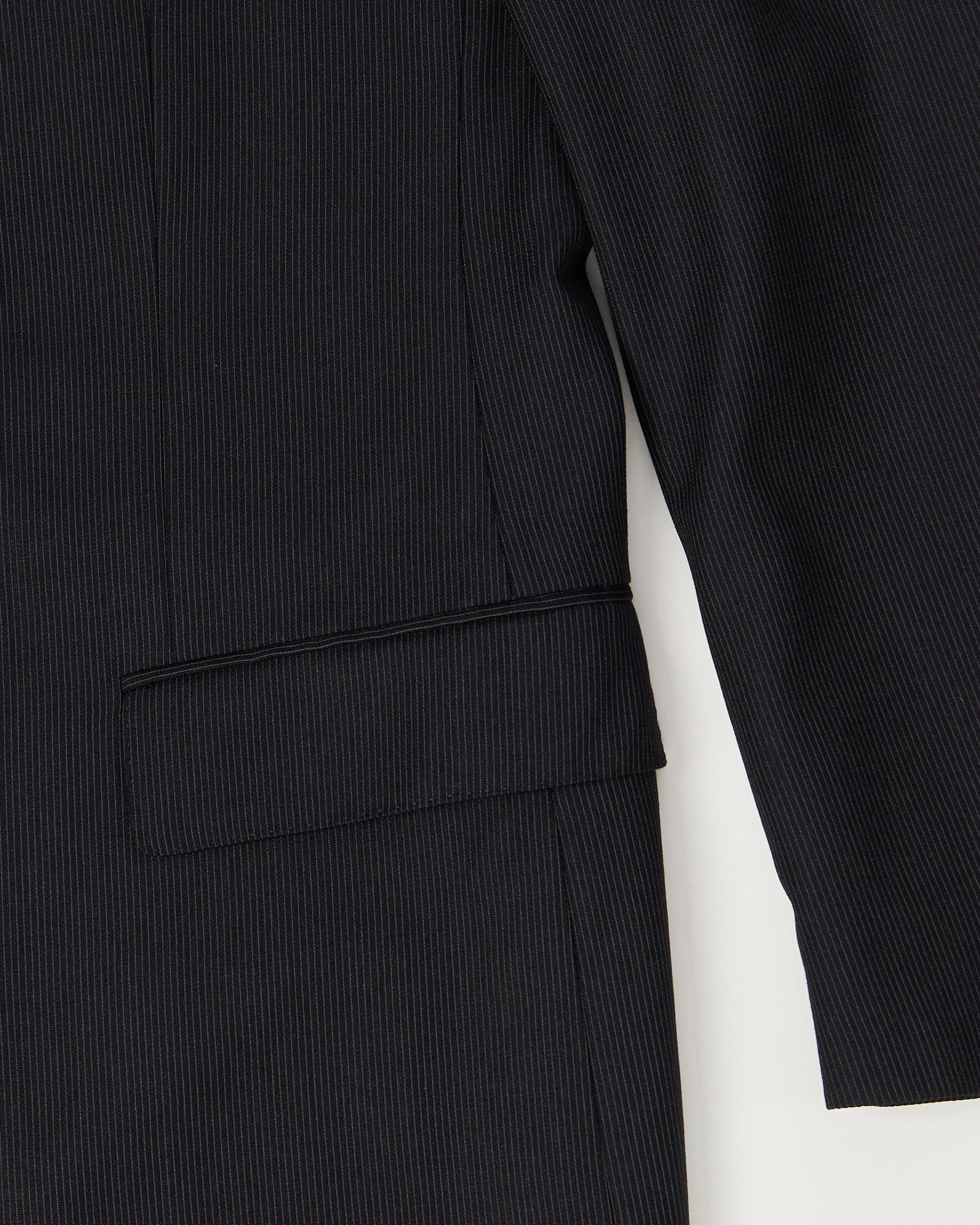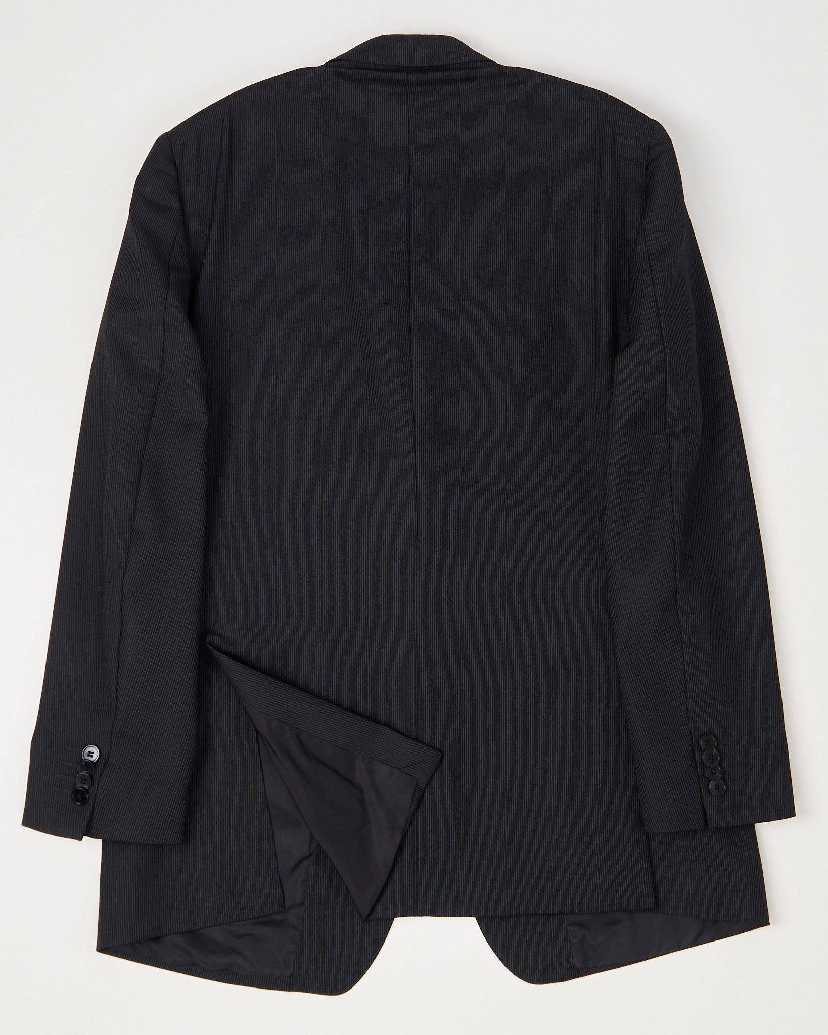 Пиджак из шерсти Ermenegildo Zegna. Прямой крой, свободная посадка. Двубортный воротник, принт в тонкую полоску, функциональные карманы.