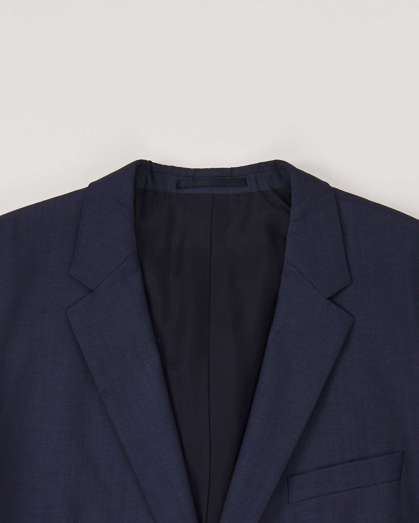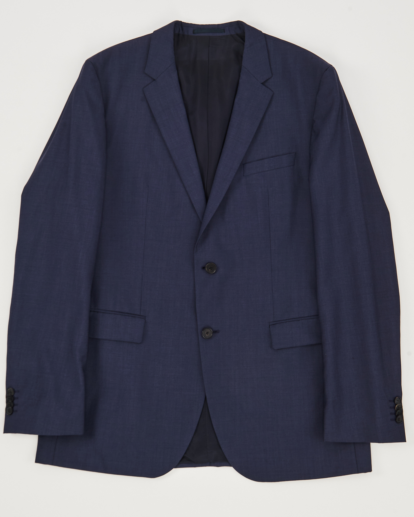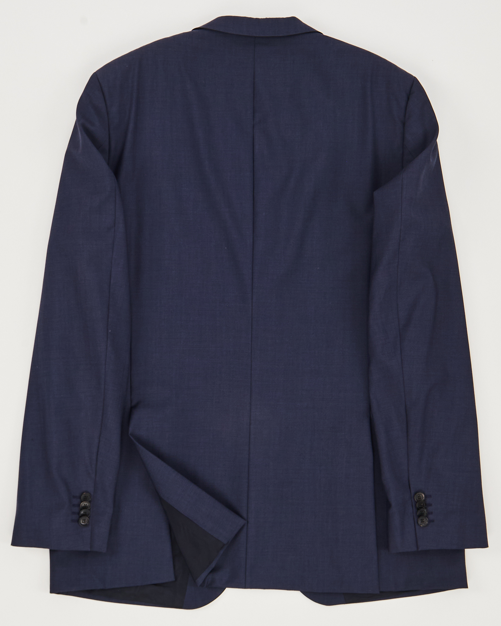 Пиджак Hugo Boss из тонкой шерсти, материал гладкий, с мягкой и ровной фактурой. Глубокий синий цвет, посадка прямая. Двубортный воротник, функциональные карманы.