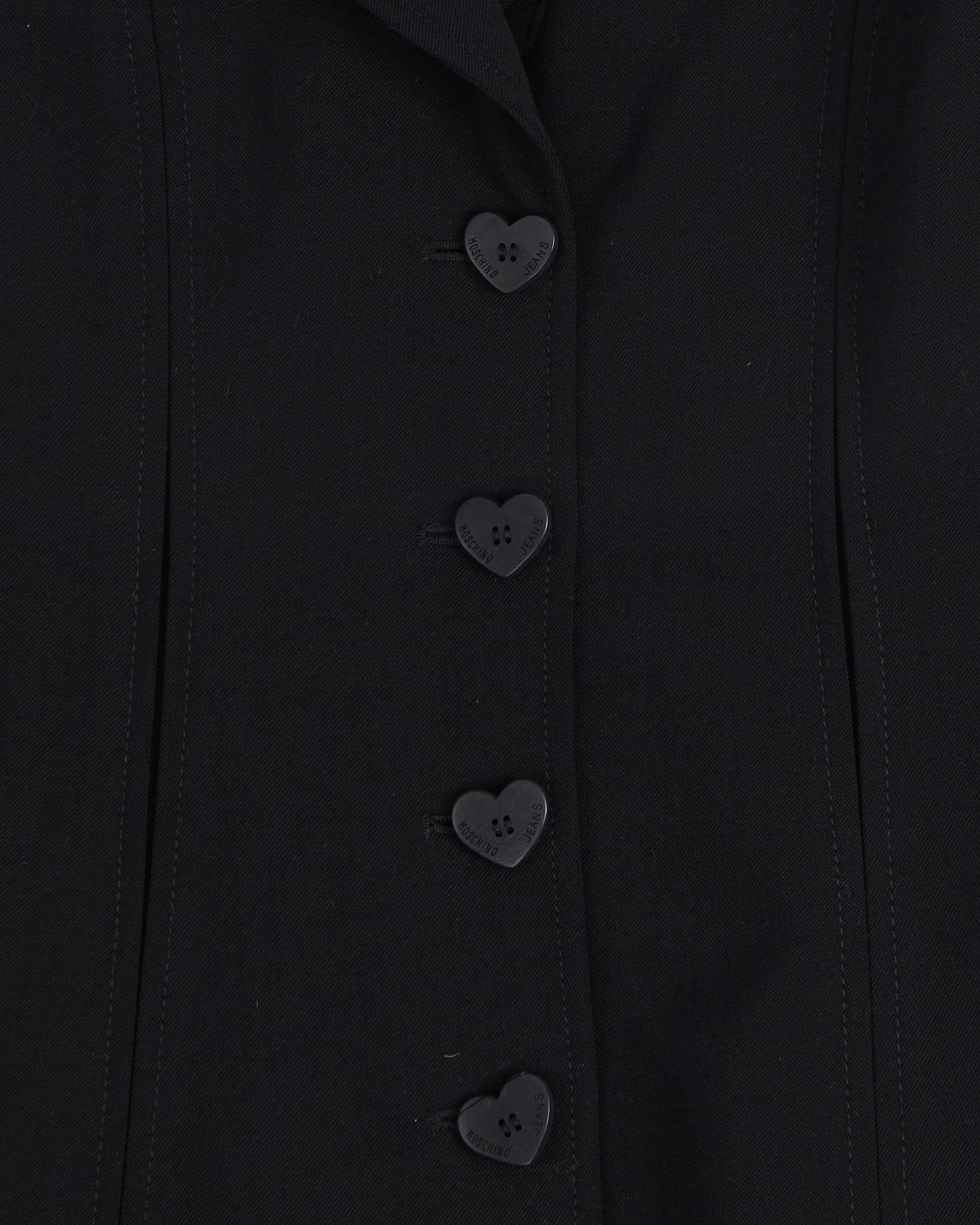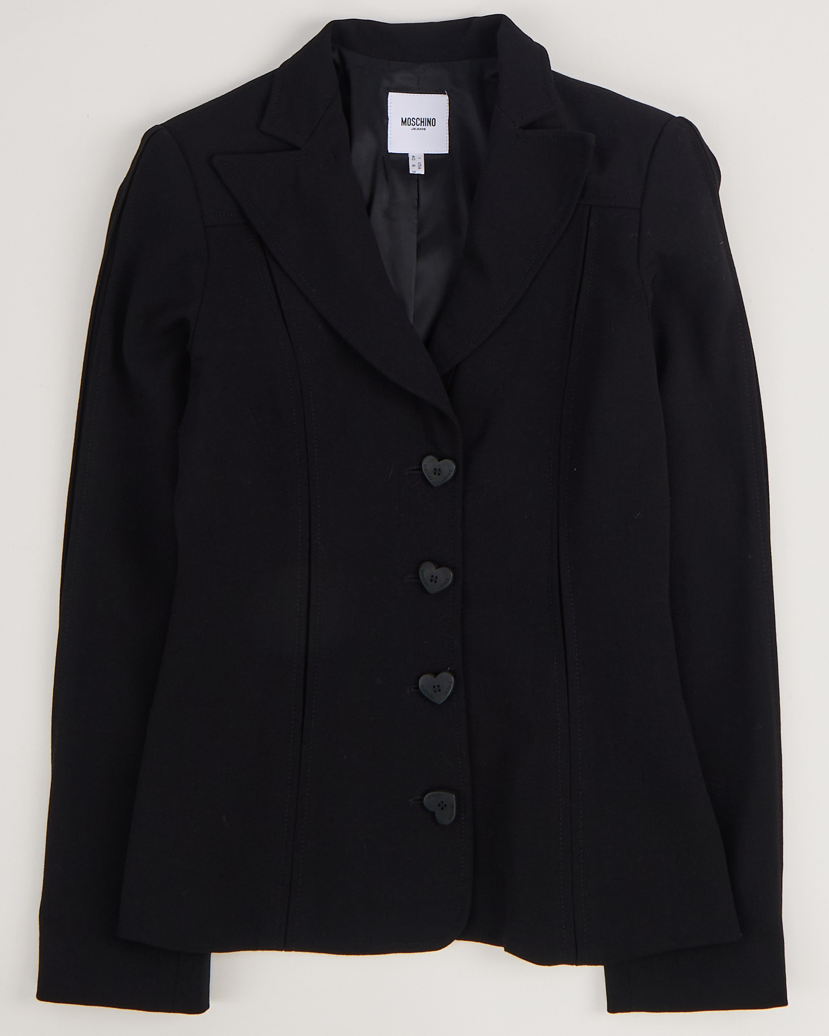 Классический жакет с лацканами из смесовой ткани. Приталенный силуэт. Застежка на пуговицы в форме сердца.
