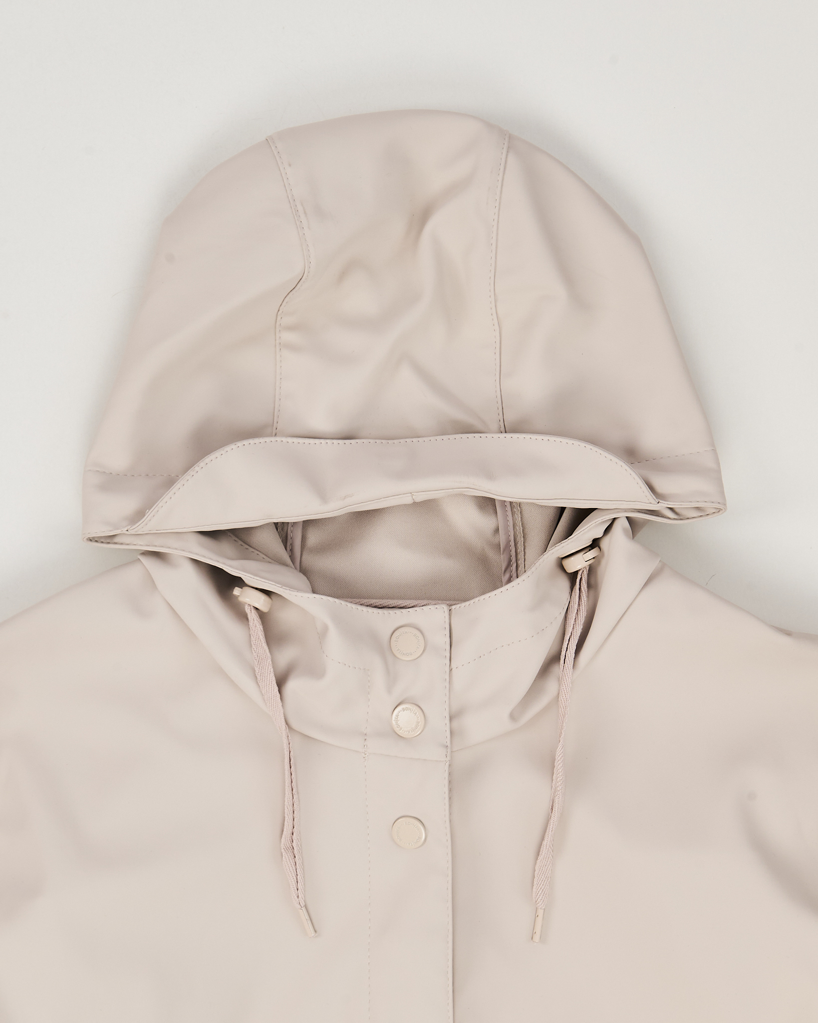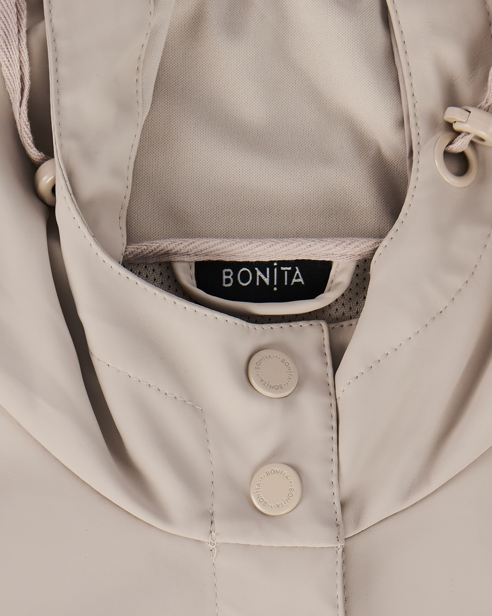 Плащ Bonita светло-бежевого цвета. Материал гладкий, мягкий, с легким матовым эффектом, приятный на ощупь. Прямой силуэт. Застежка на кнопки, два боковых функциональных кармана, капюшон