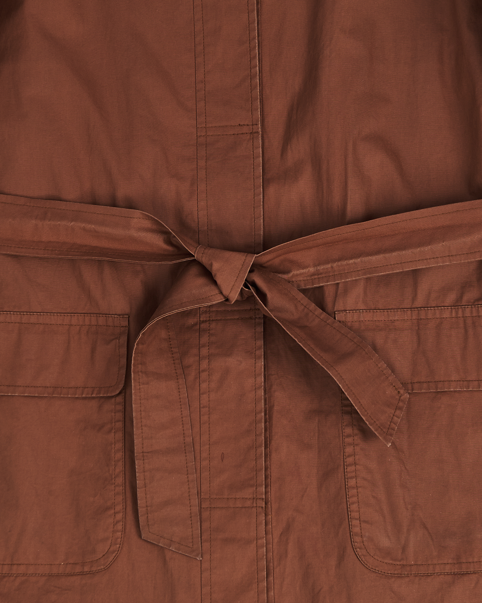 Плащ Herno коричневого оттенка. Прямой крой, пояс для регулировки силуэта. Классический вариант воротника. Накладные карманы