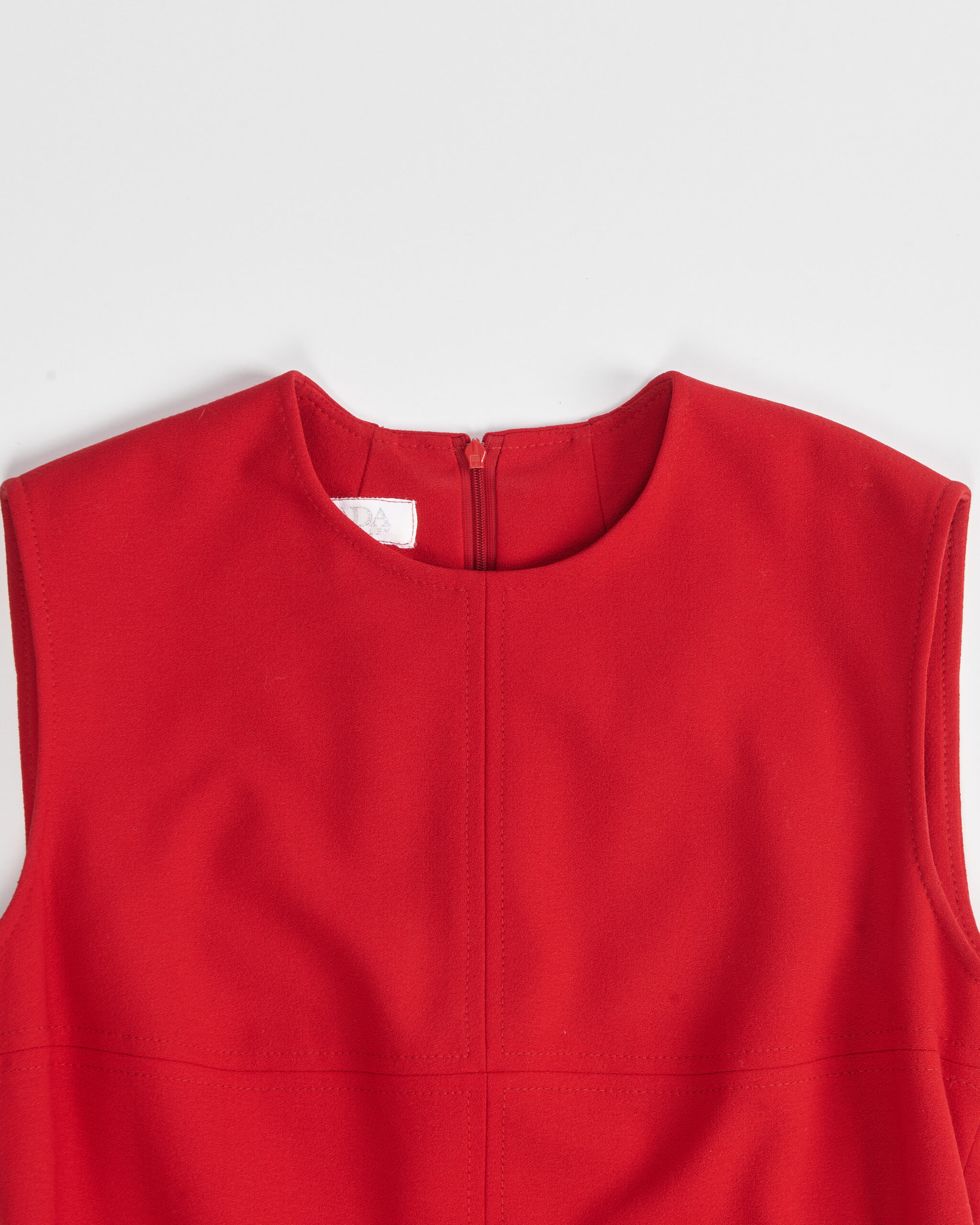• Закрытая пройма и вытачки создают собранный силуэт.