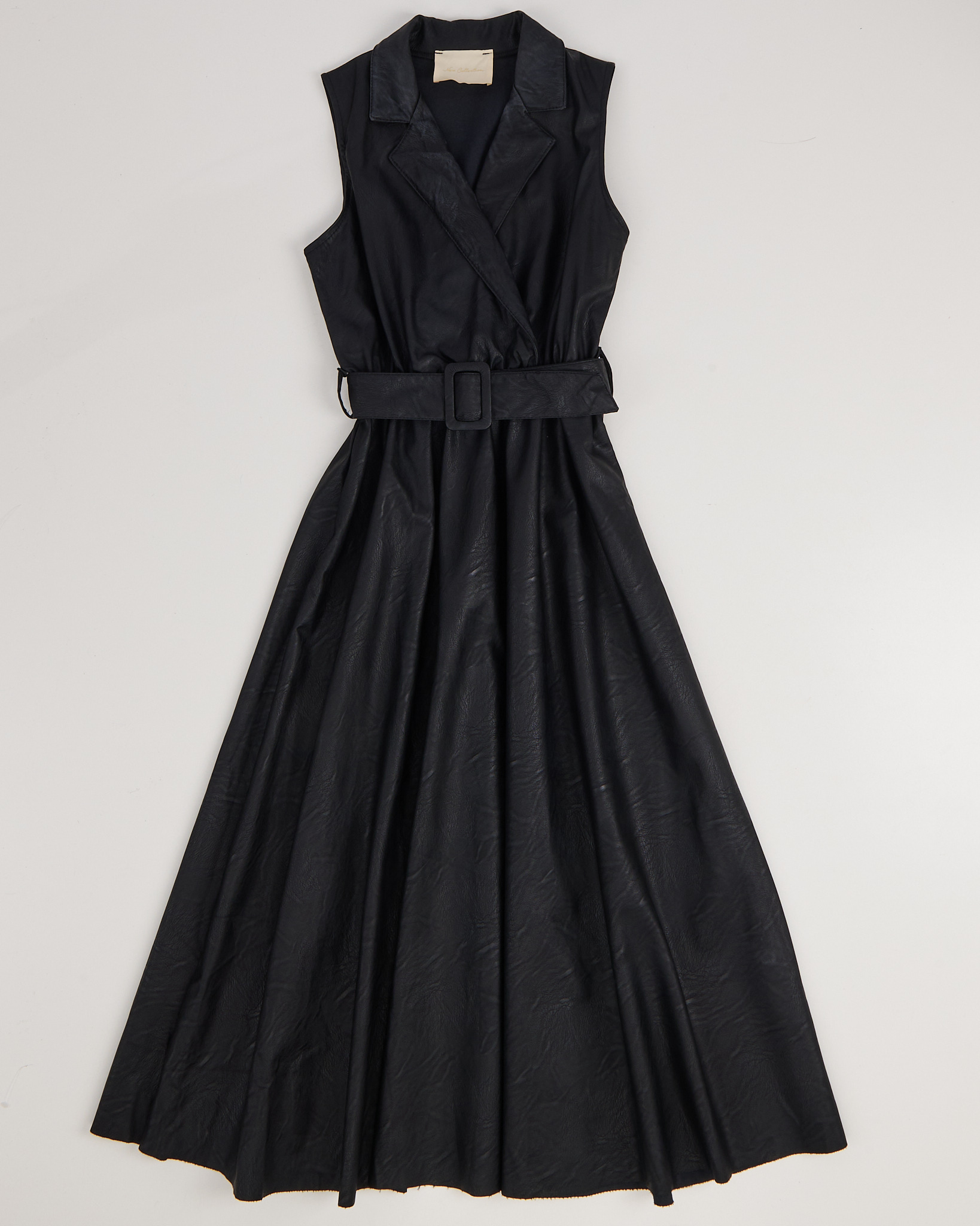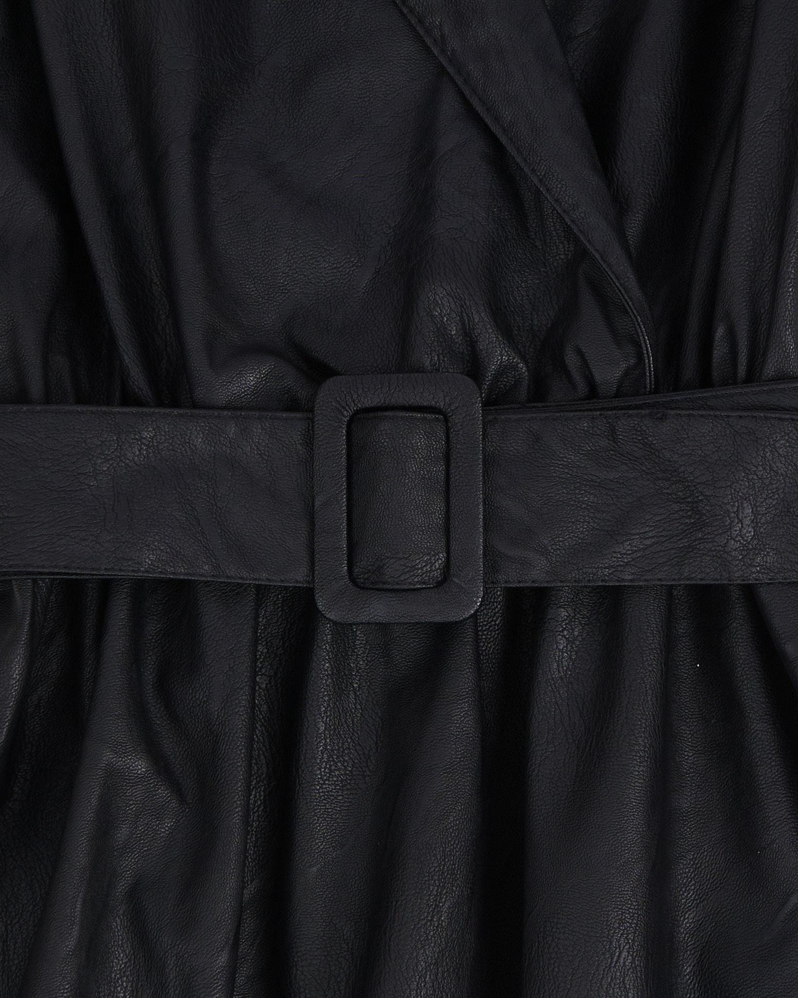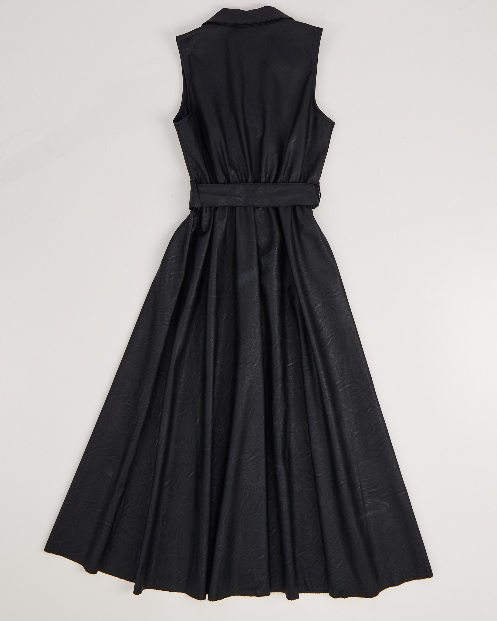 Платье из эко-кожи. Приталенный силуэт, длина миди. Съемный пояс.