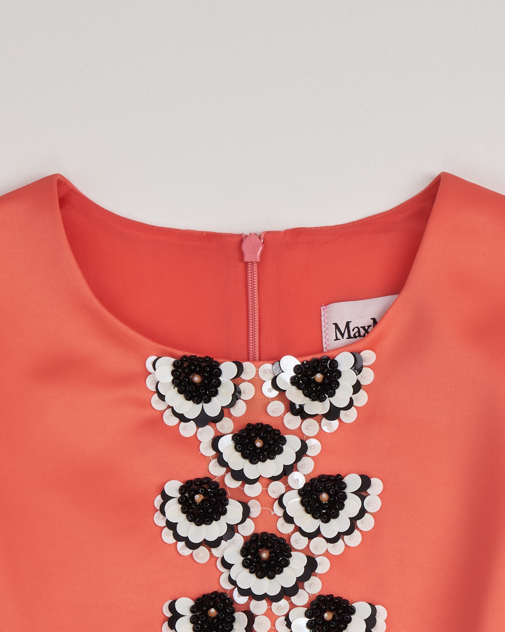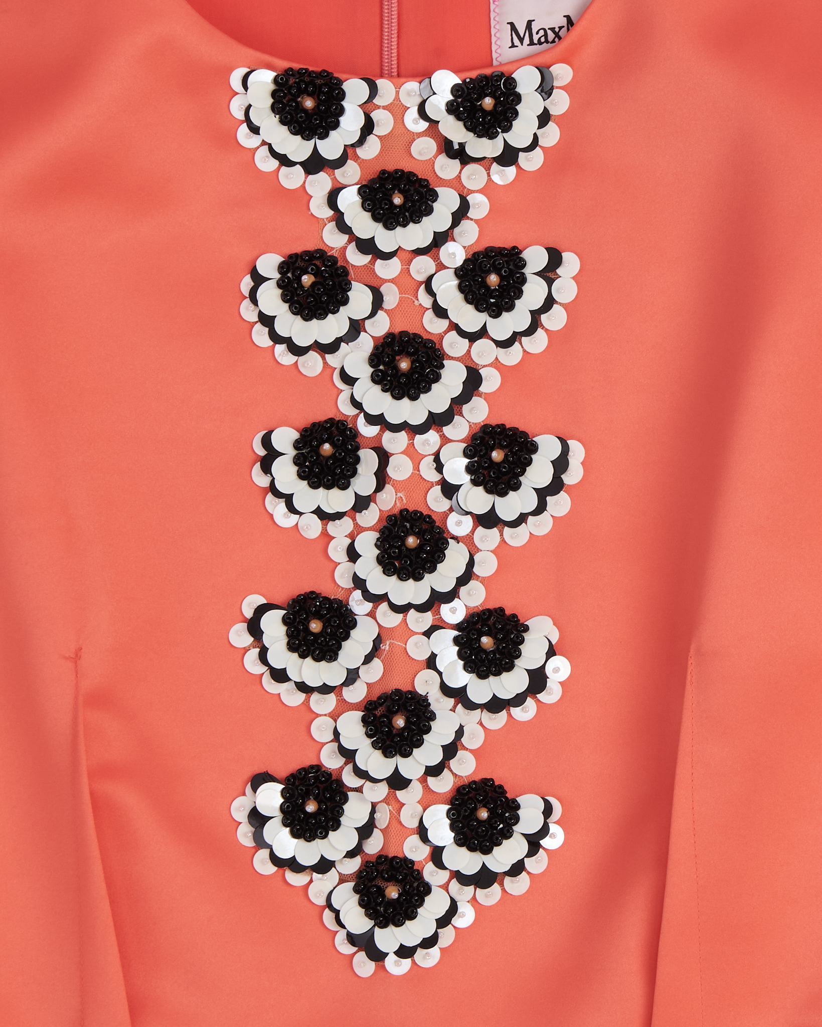 Платье Max Mara прямого силуэта. С декоративной вставкой с объемными цветами из бисера и пайеток.