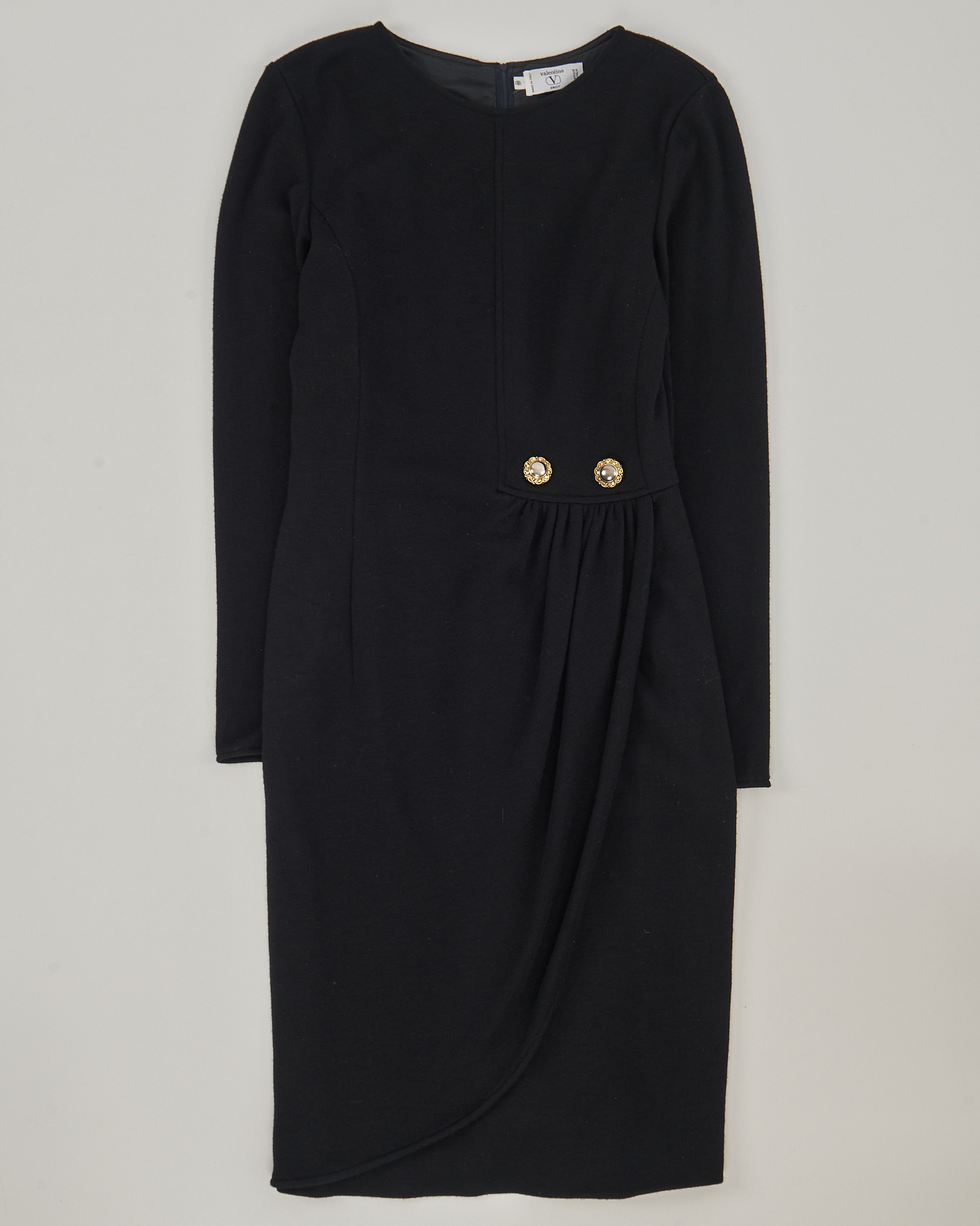 Платье от культового бренда Valentino. Плотная , мягкая ткань, приталенный силуэт со сборкой на талии. Акцентные пуговицы на поясе, рукава удобным замком.