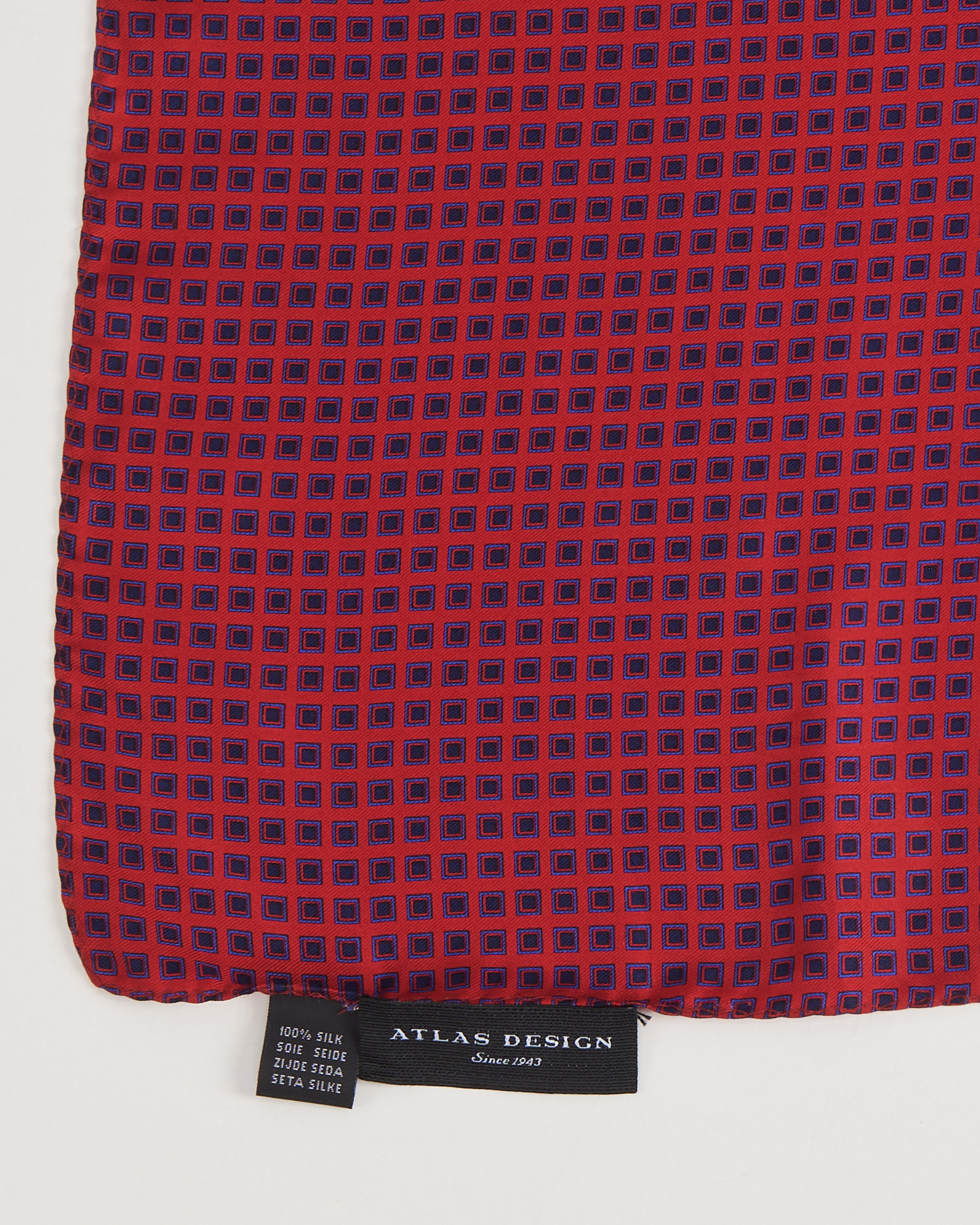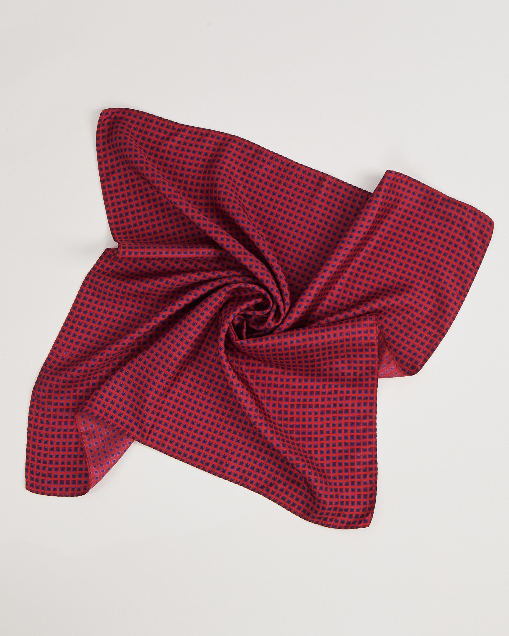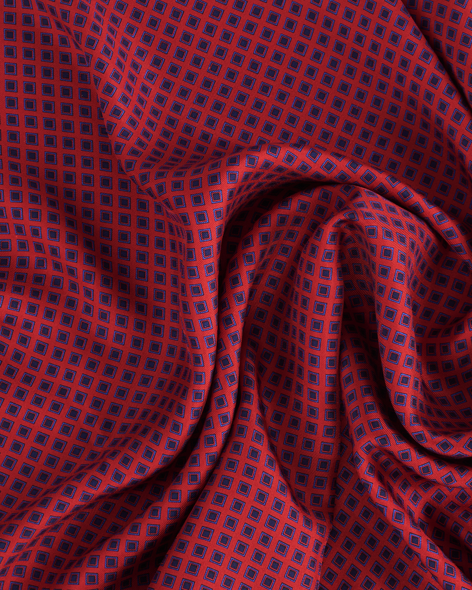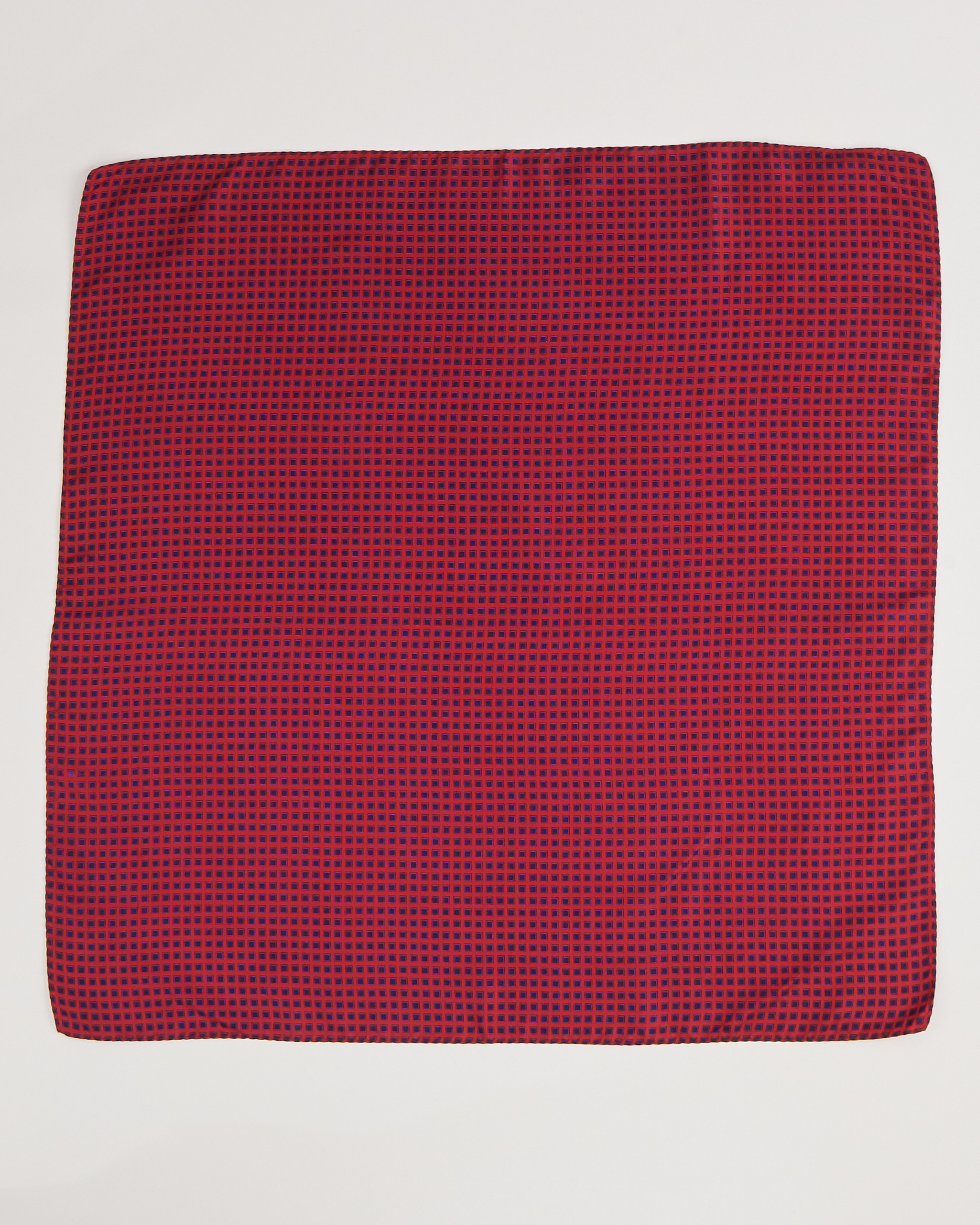 Платок из тонкой, гладкой ткани. Мелкий геометрический рисунок в красно-синей гамме