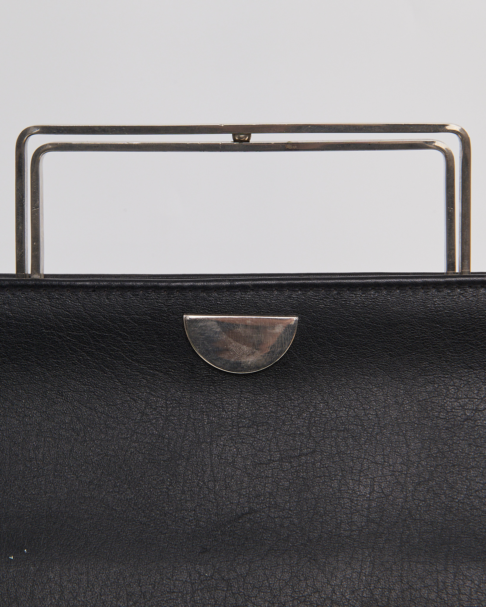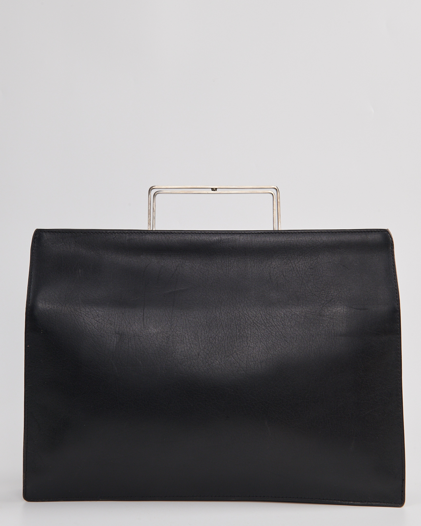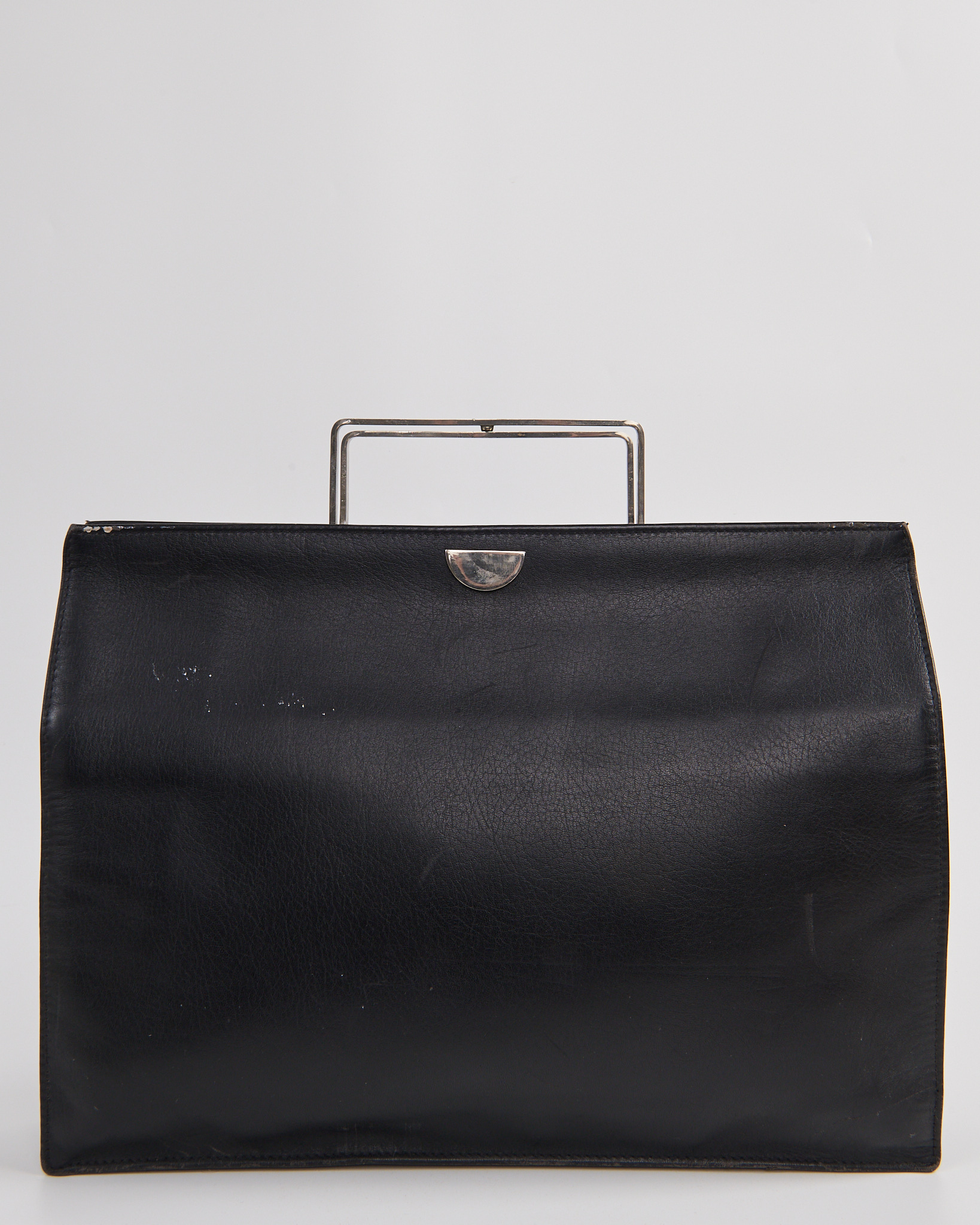 Портфель выполнен в глубоком чёрном оттенке. Жёсткая металлическая рамка формирует четкий силуэт и служит акцентной деталью конструкции. Внутри — вместительное отделение