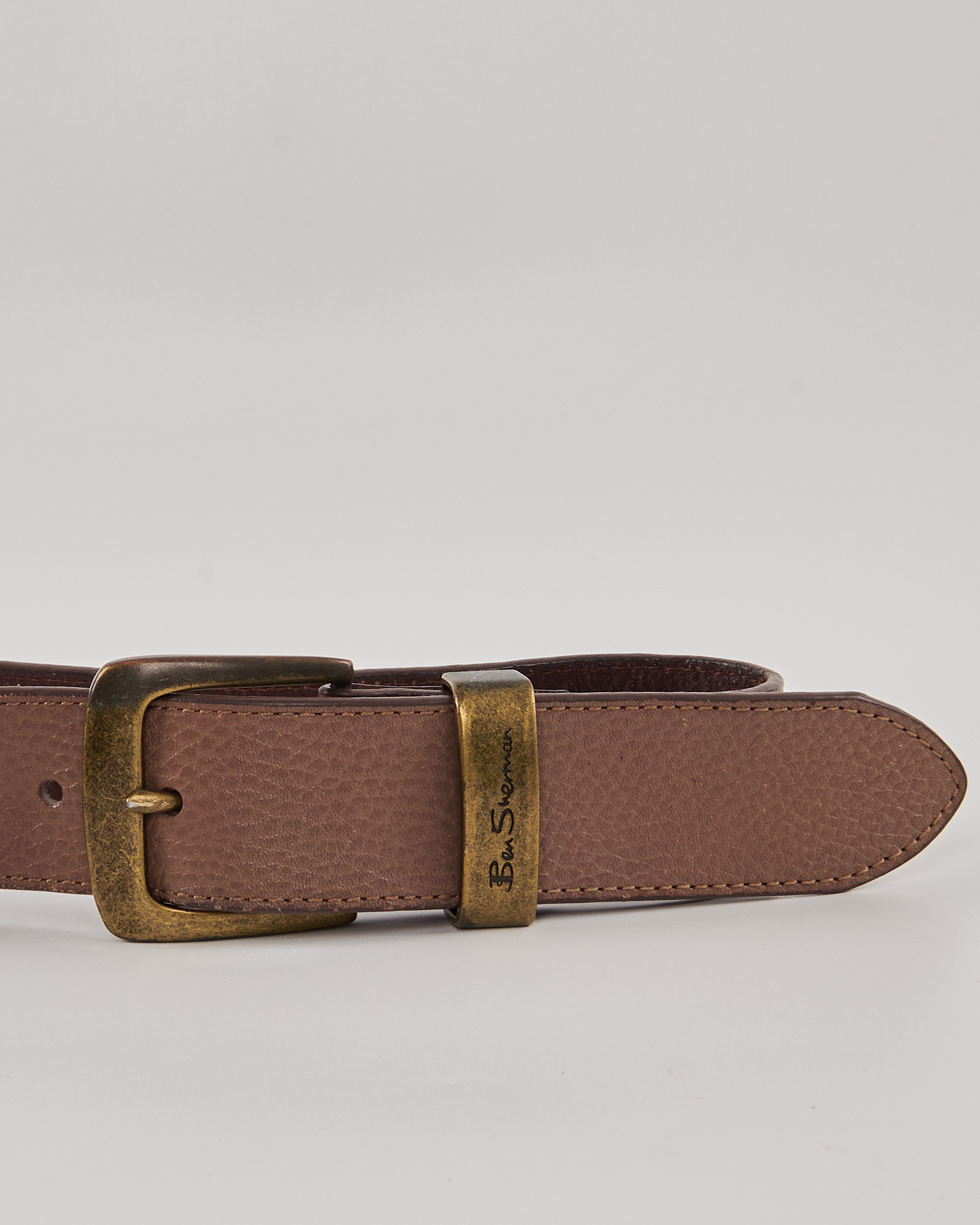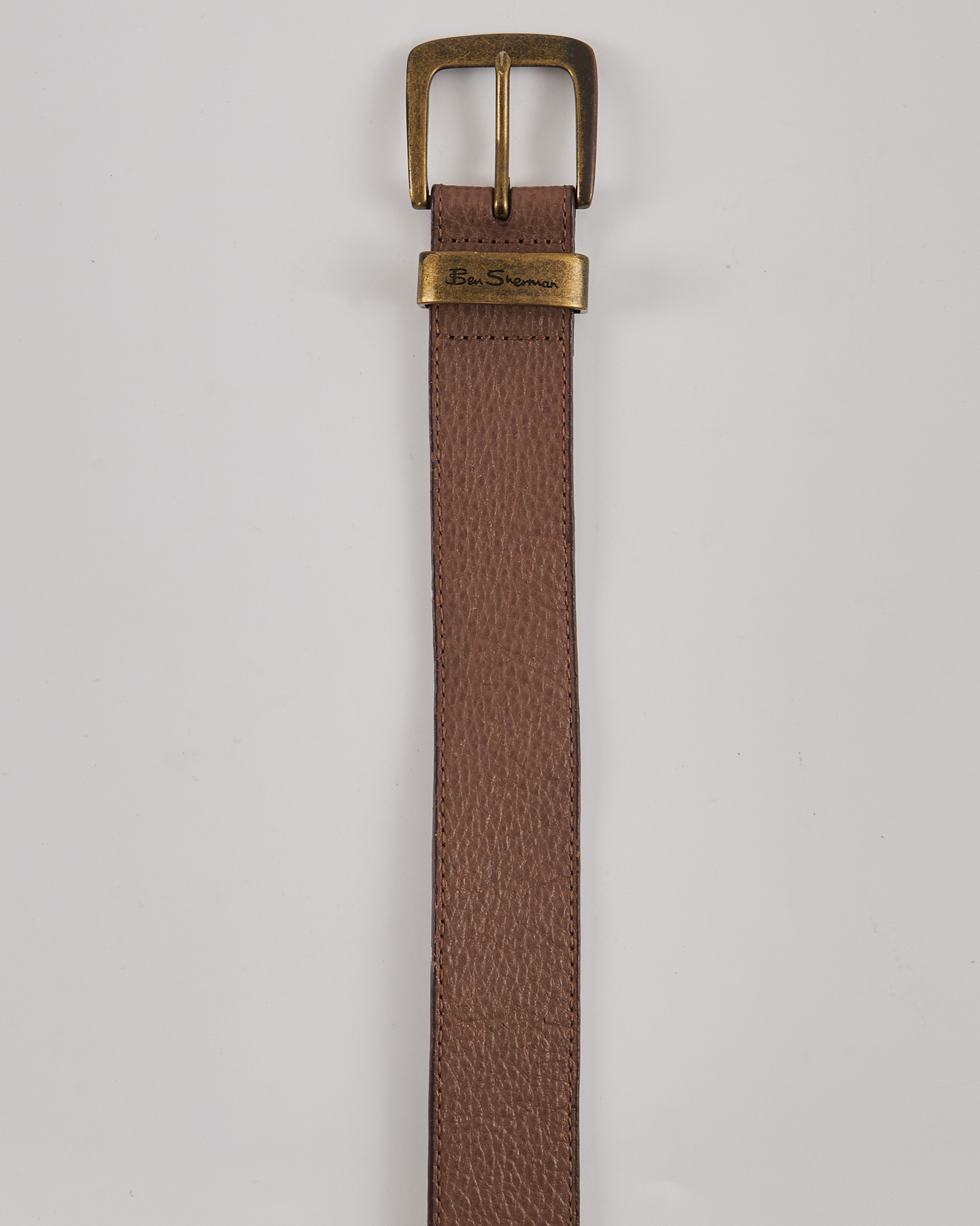 Ремень Ben Sherman теплого коричневого цвета. Зернистая фактура. Шлевка с гравировкой Ben Sherman.