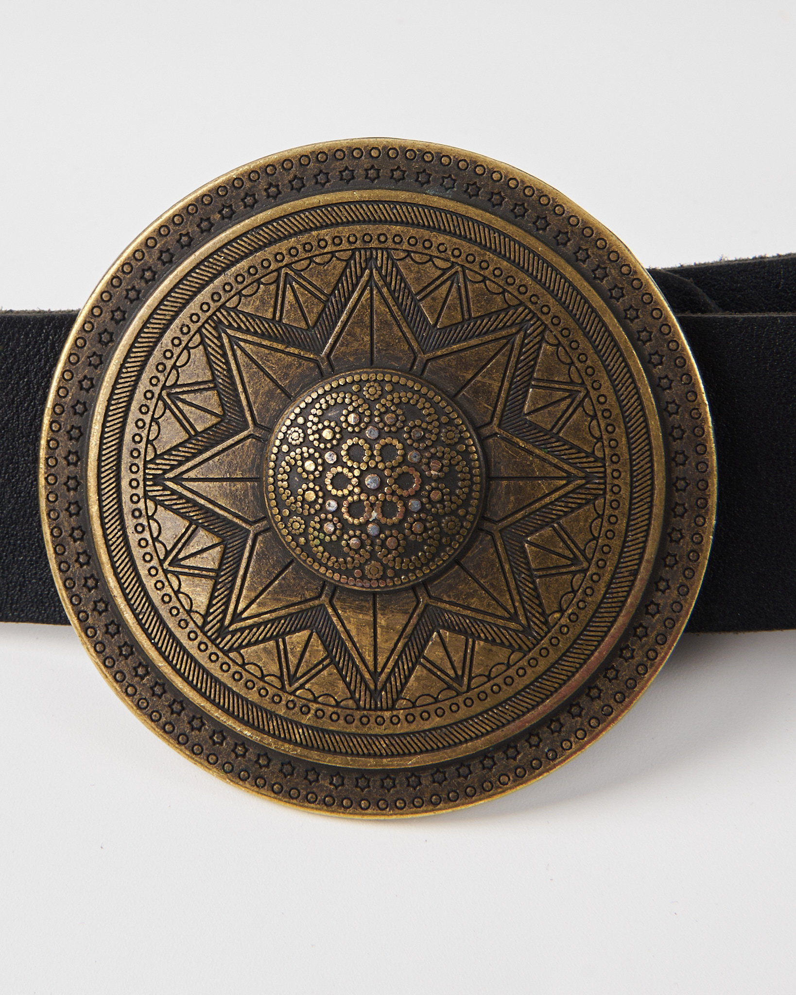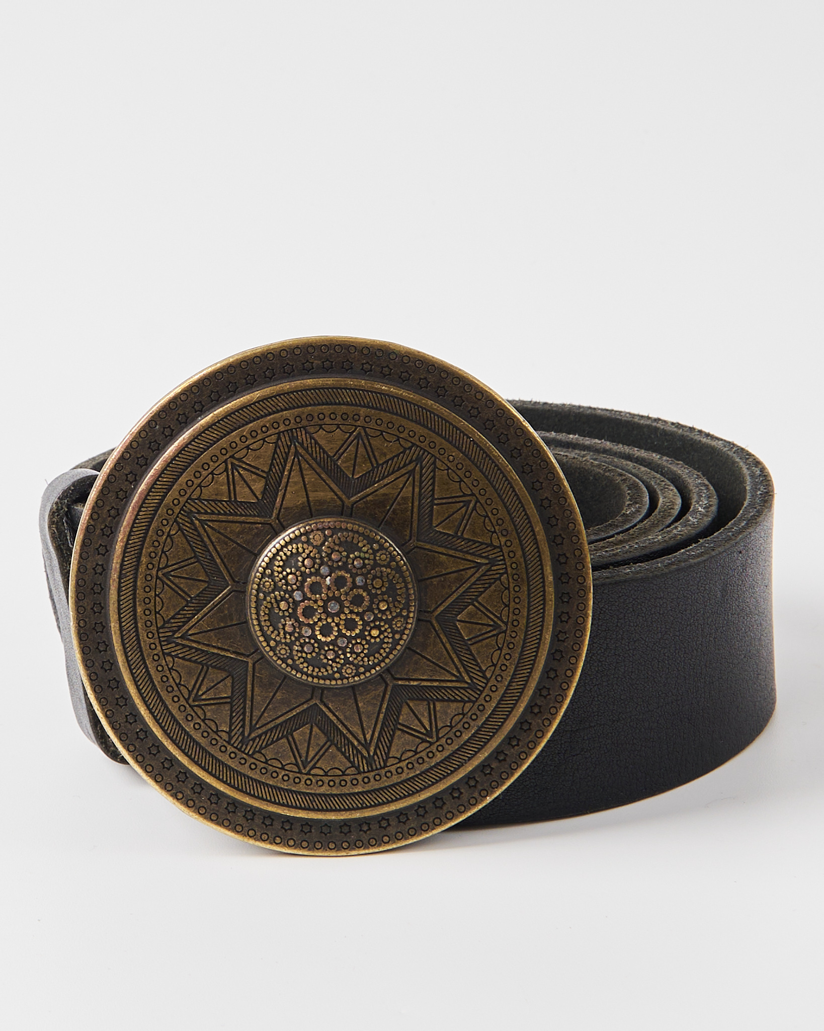 Винтажный кожаный ремень с латунной пряжкой. Натуральная кожа. Пряжка с детализированным узором