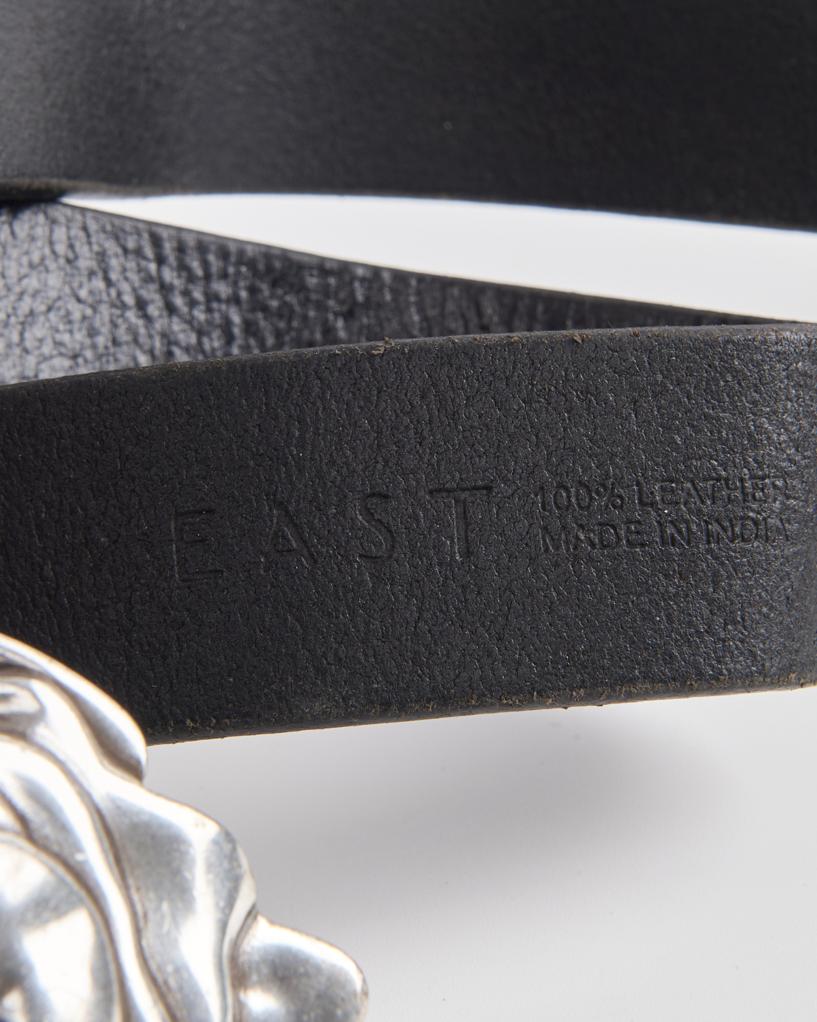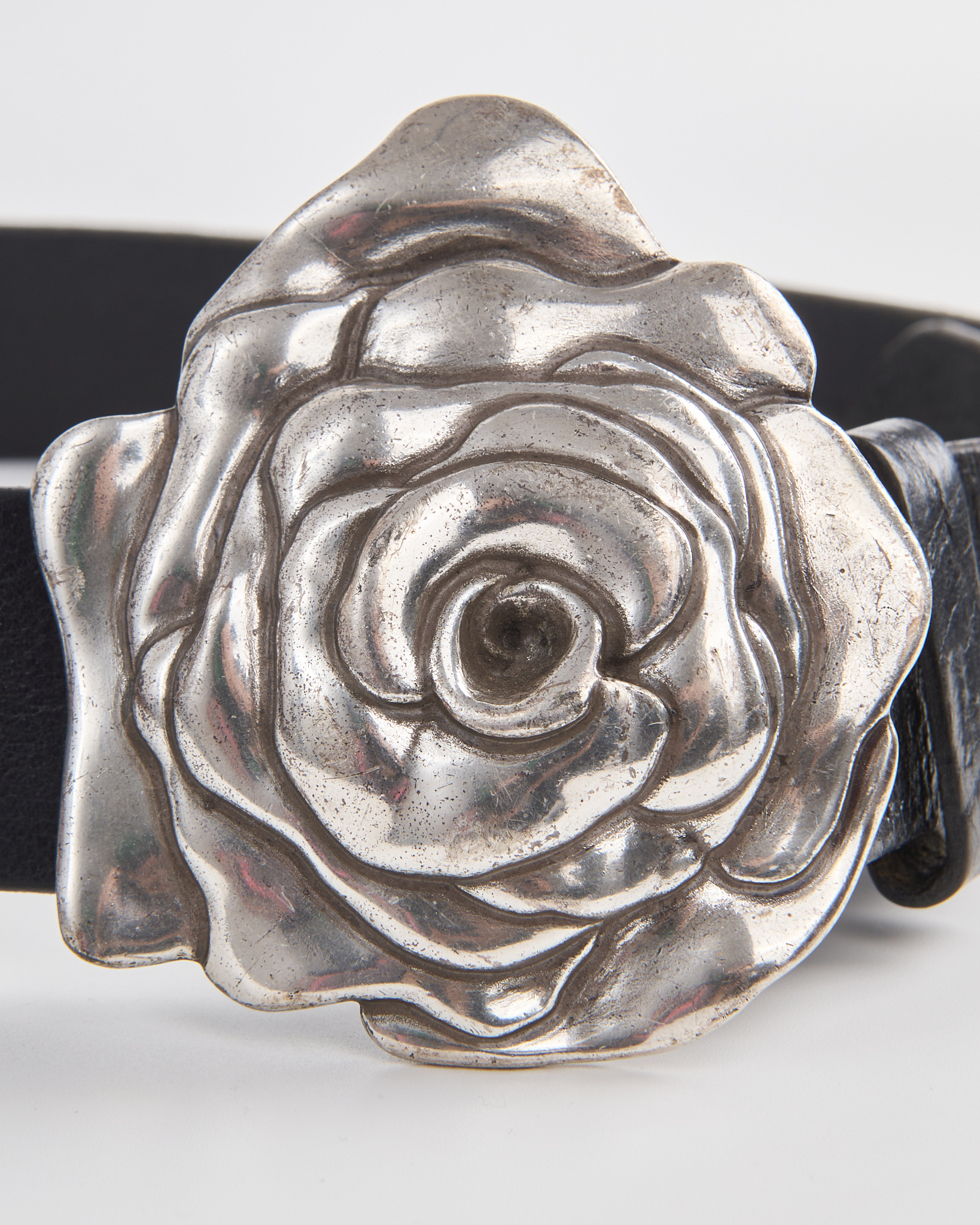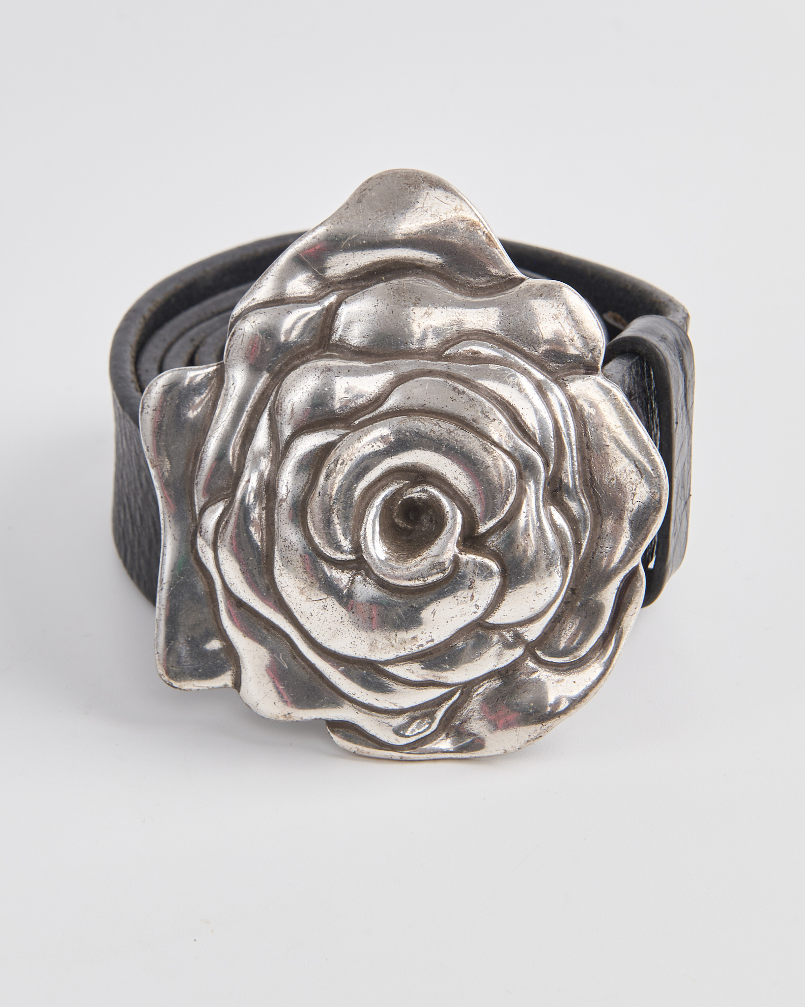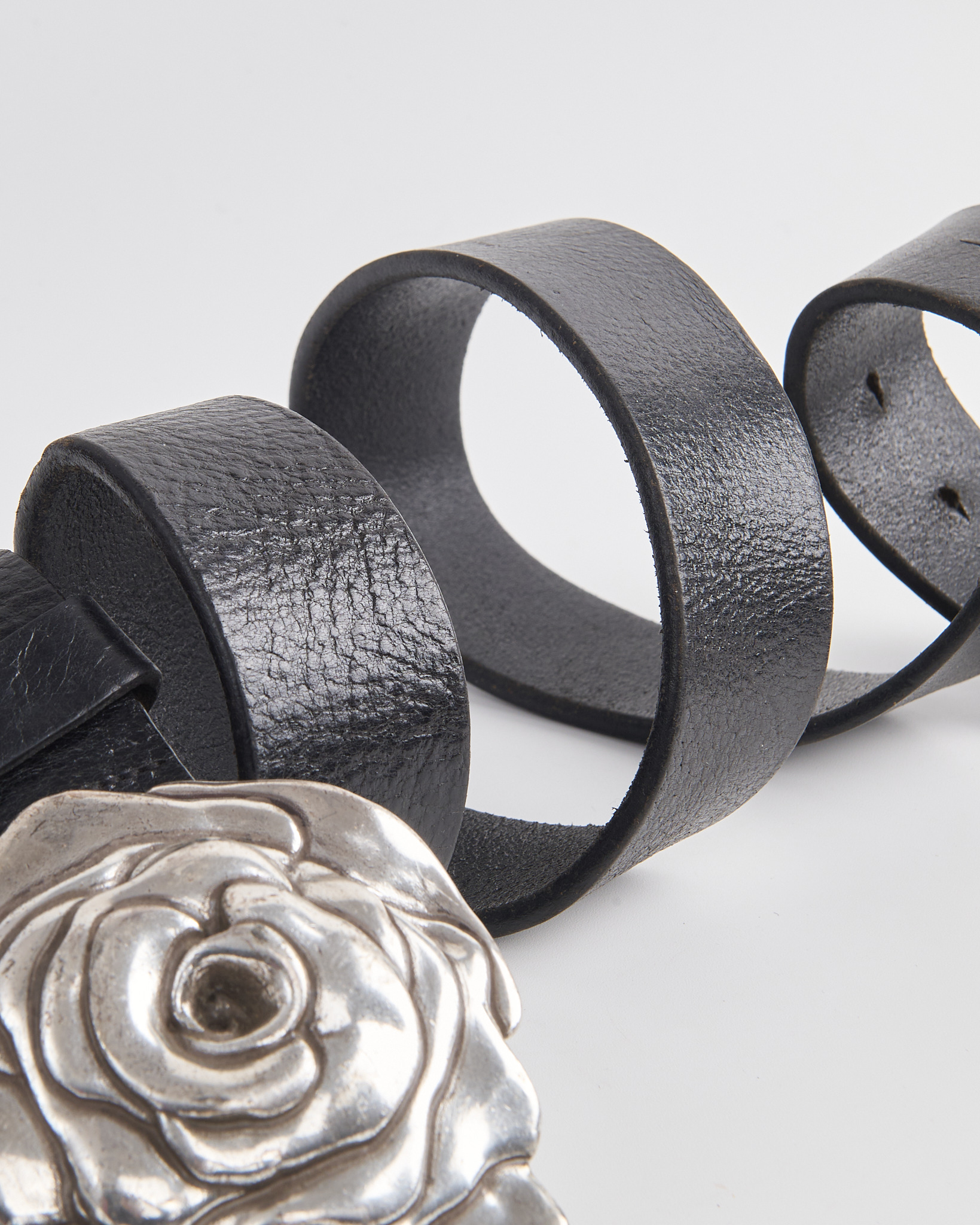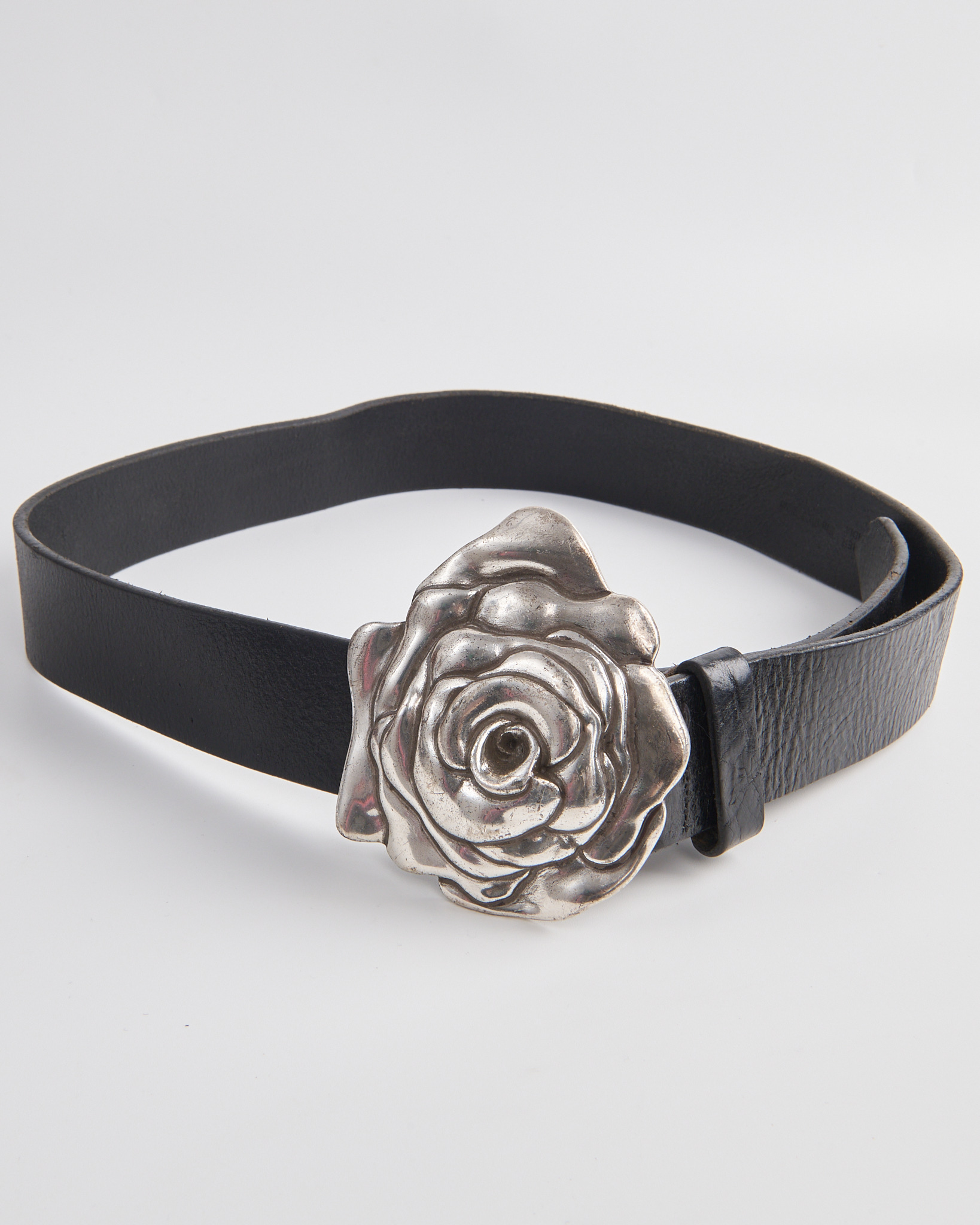 Ремень из кожи с пряжкой в виде объёмной розы серебристого оттенка