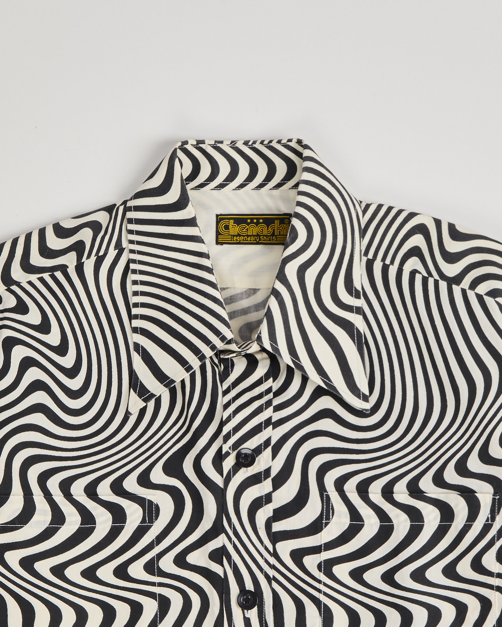 Классический крой с нагрудными карманами, винтажная эстетика. Рубашка вдохновлена модой 1970-х годов