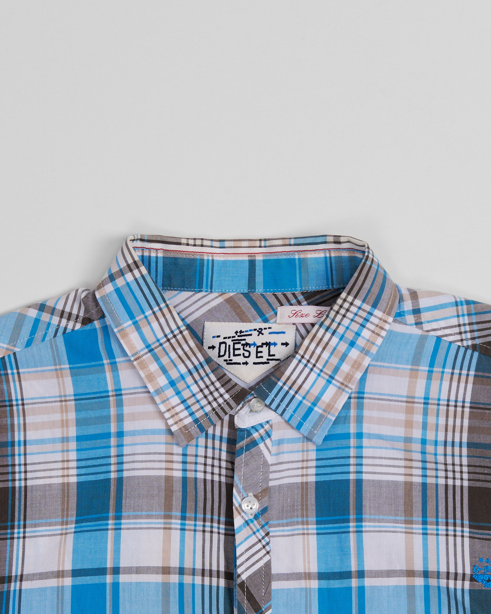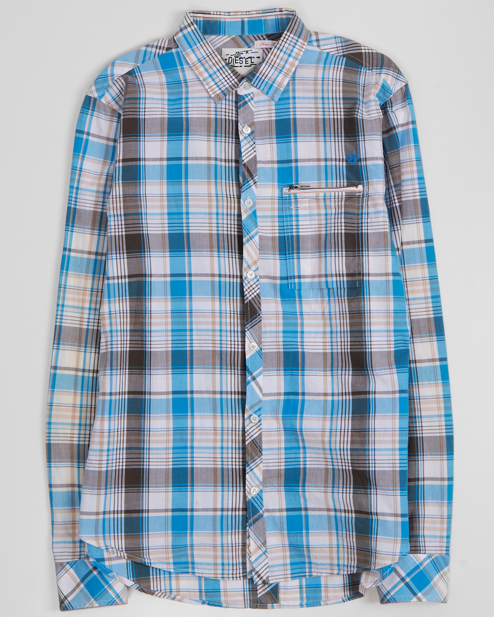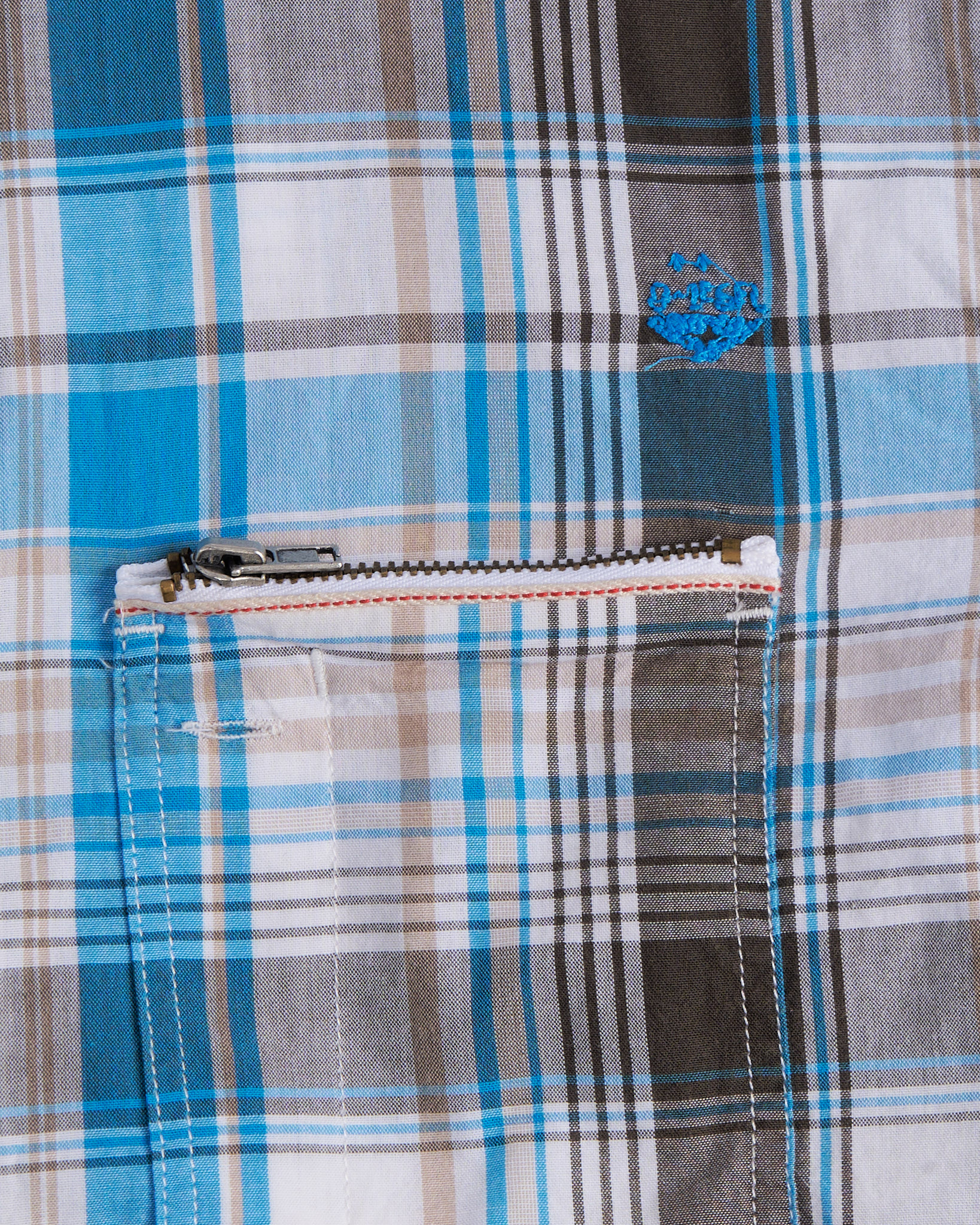 Рубашка из 100% натурального хлопка. Рисунок клетка, свободный крой и нагрудный карман на молнии.