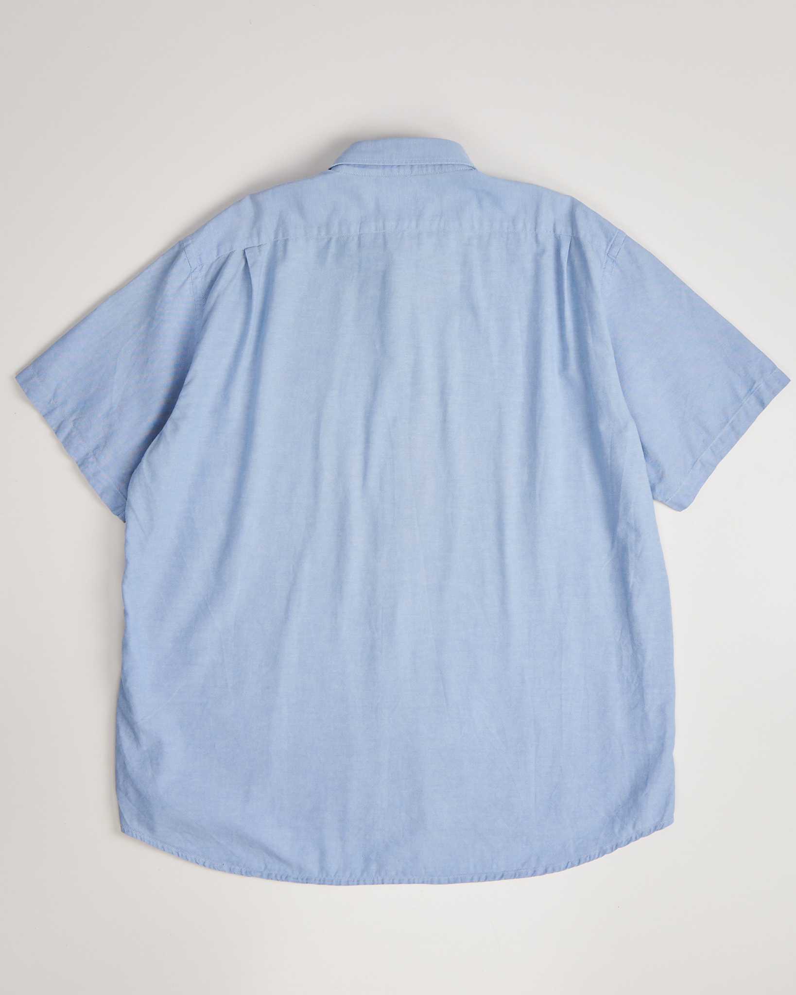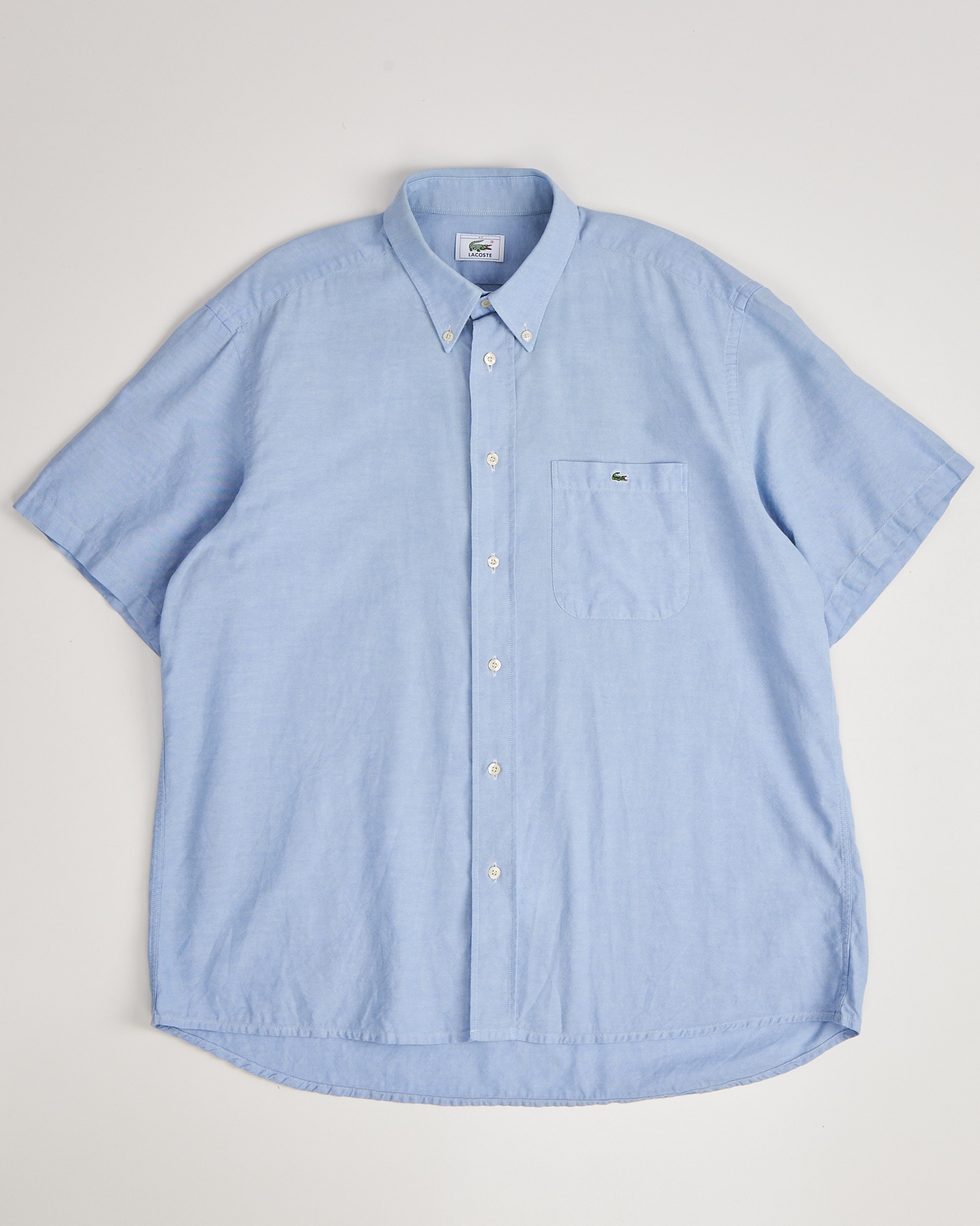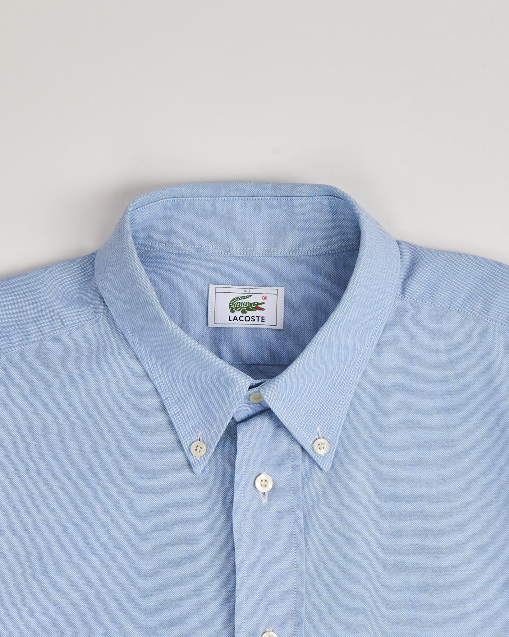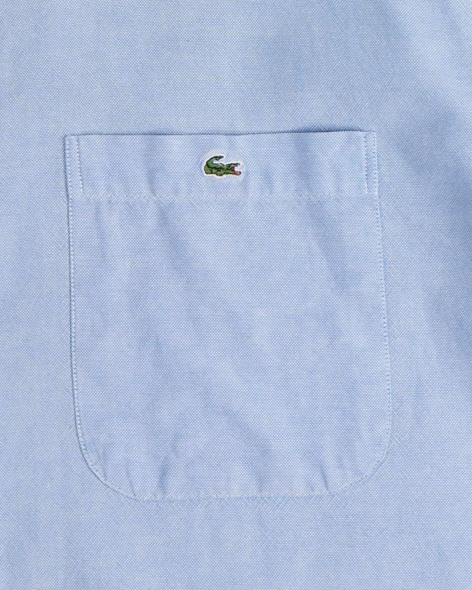 Рубашка из хлопка Lacoste голубого цвета. Свободная посадка. Классический воротник на пуговицах. Нагрудный карман с фирменным логотипом. Брендированные пуговицы в тон. Низ рубашки удлинен сзади.