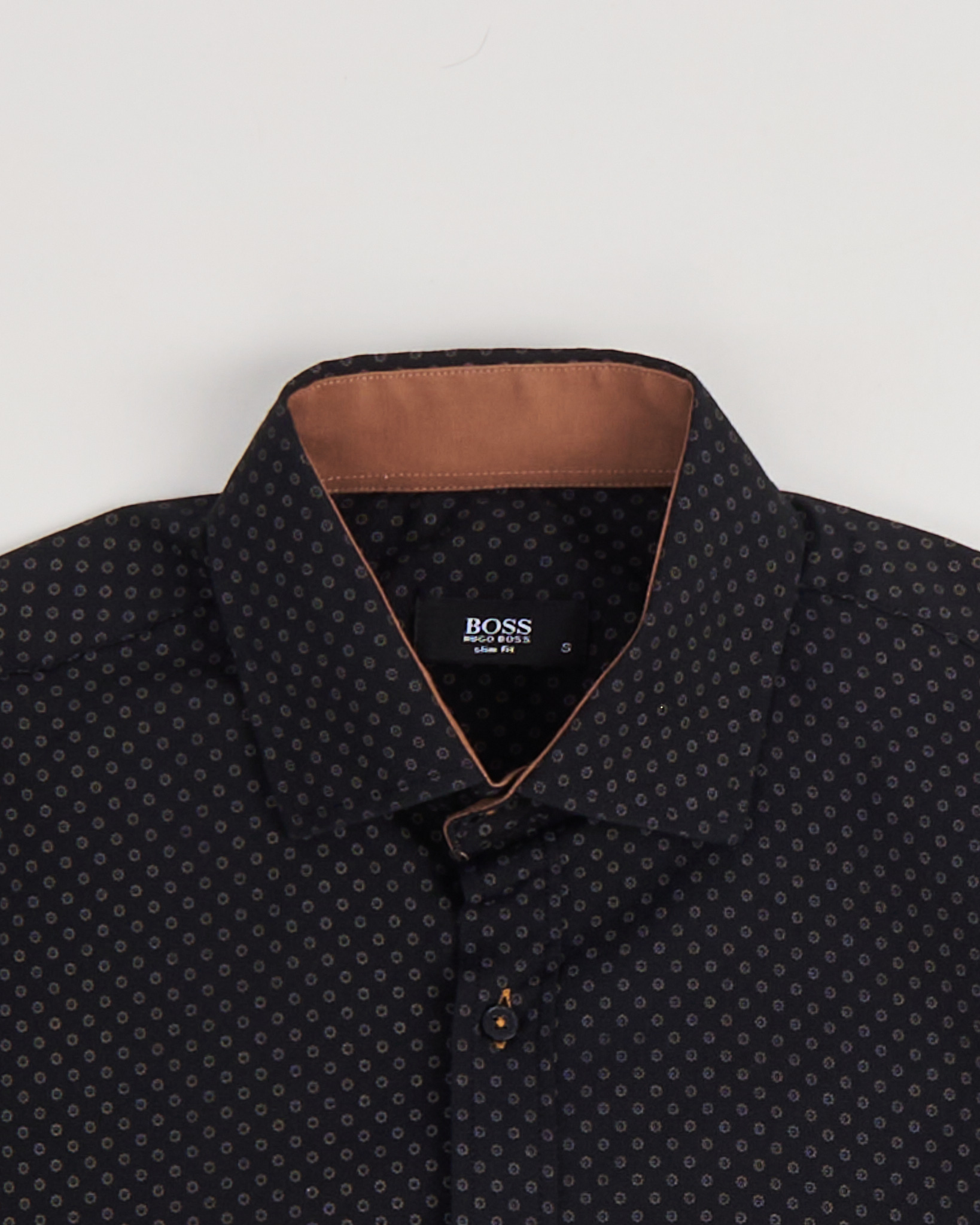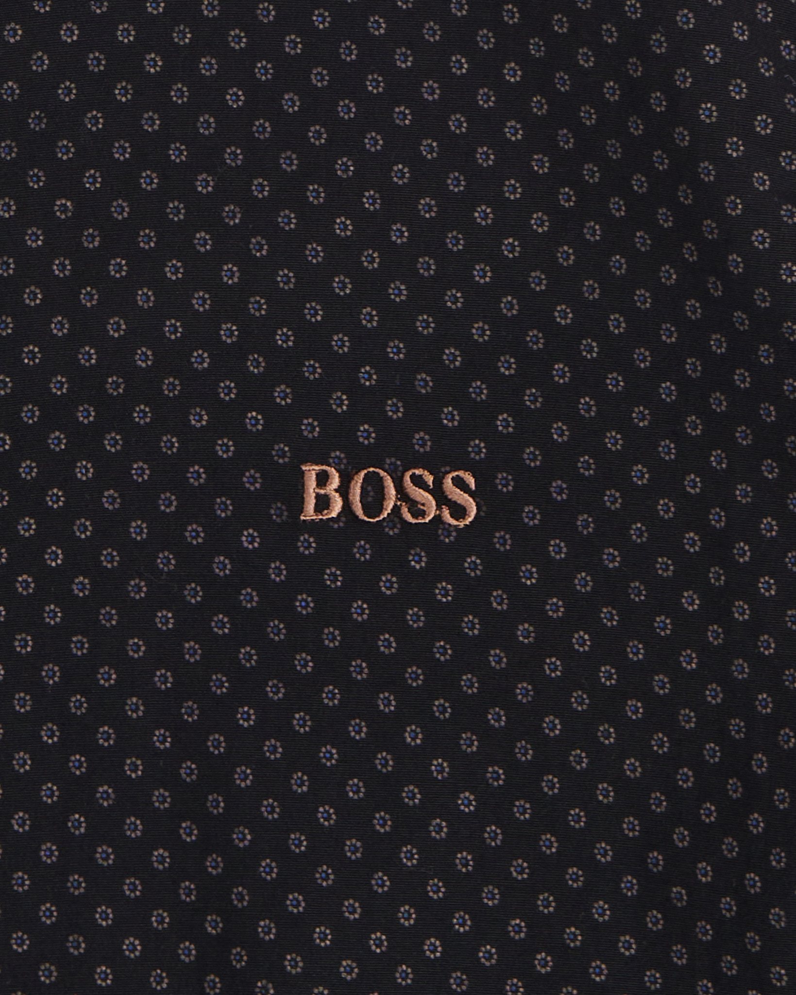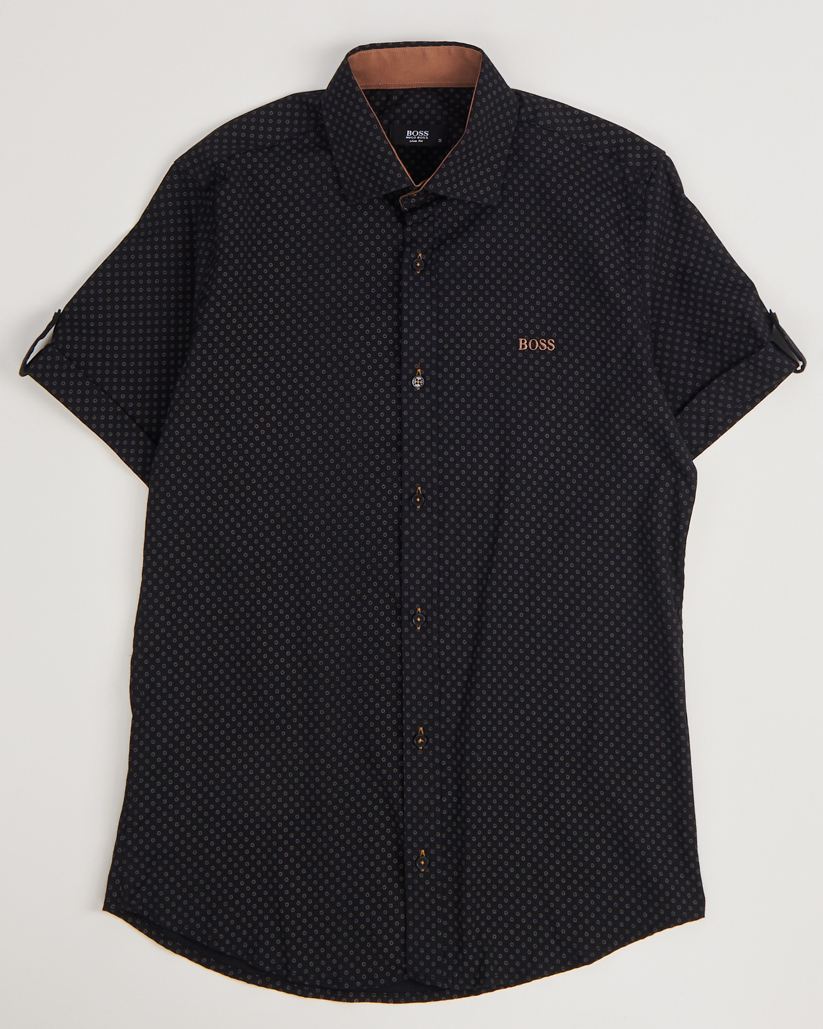 Рубашка из легкого хлопка Hugo Boss. Прямой крой, посадка slim fit. Акцентный принт и фирменный логотип на груди.