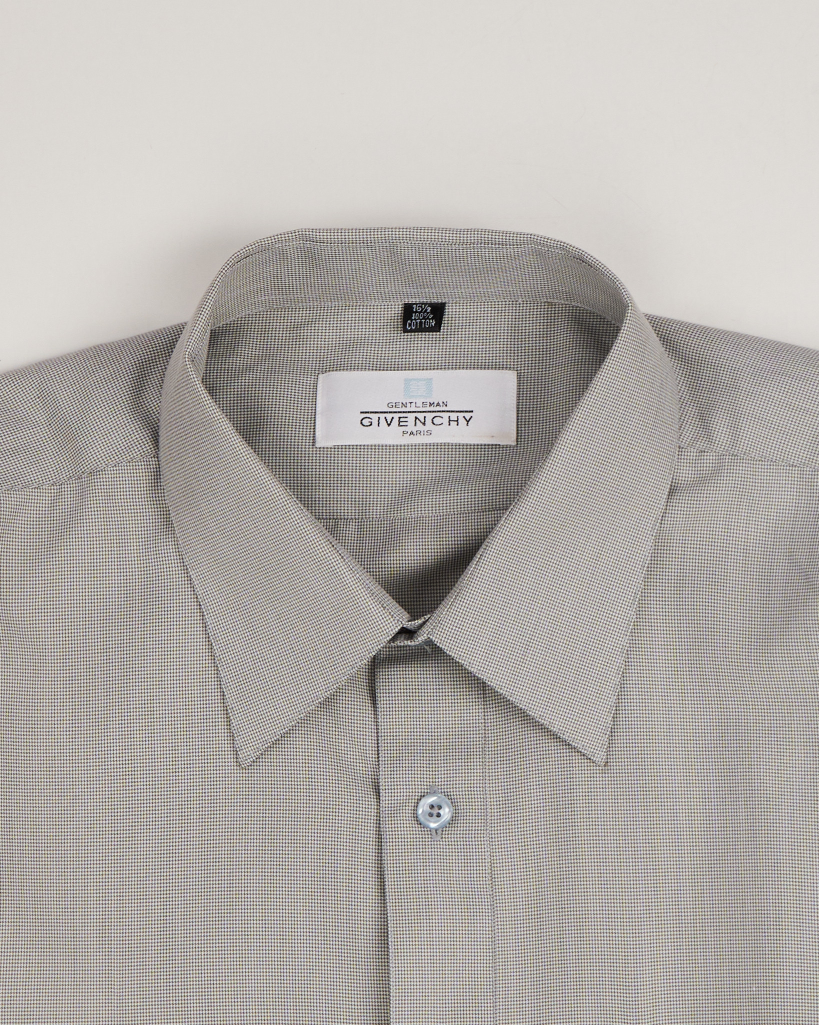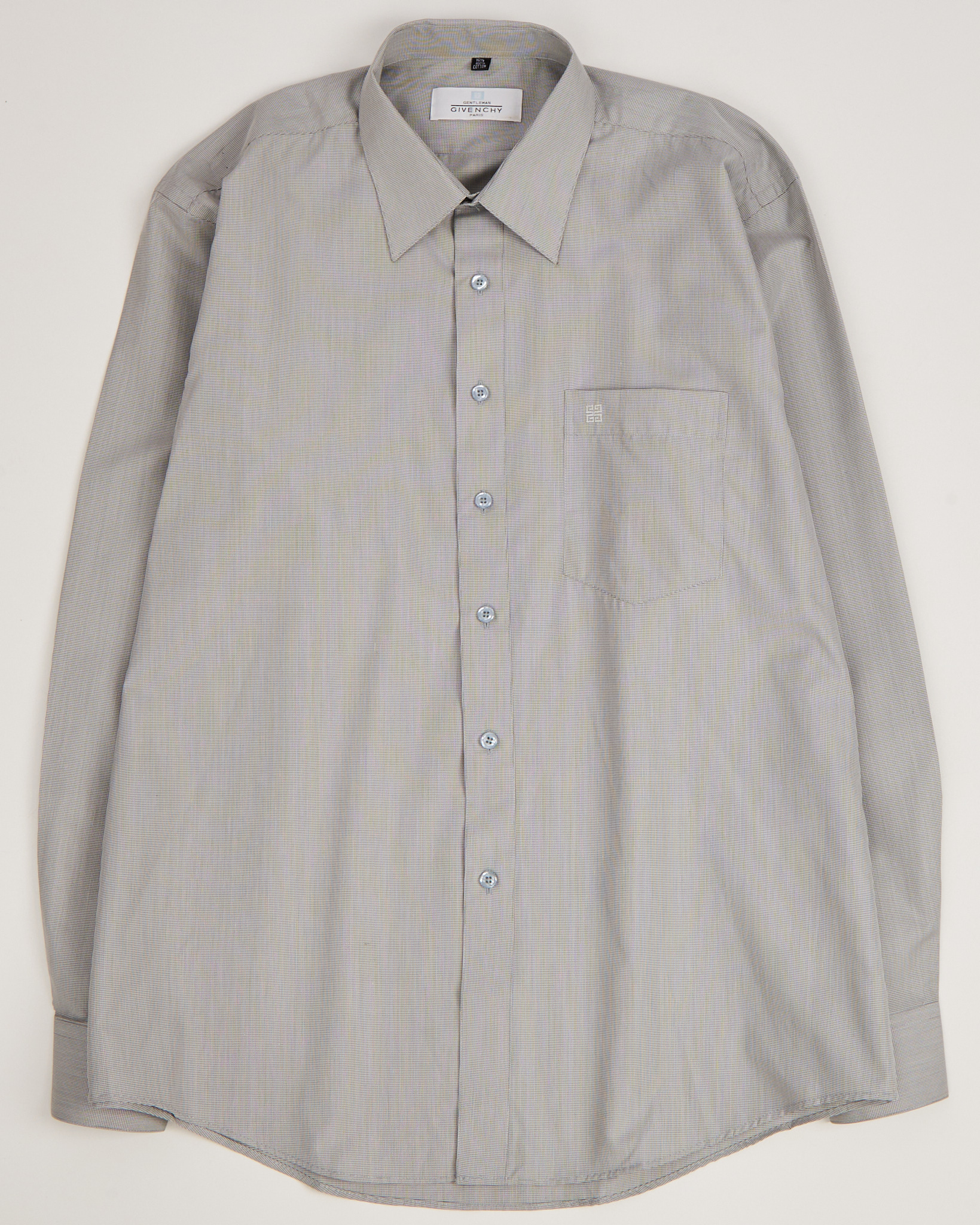 Рубашка из хлопка GIVENCHY светло-зеленого цвета с мелким узором. Прямой крой. Вышивка логотипа на нагрудном кармане.