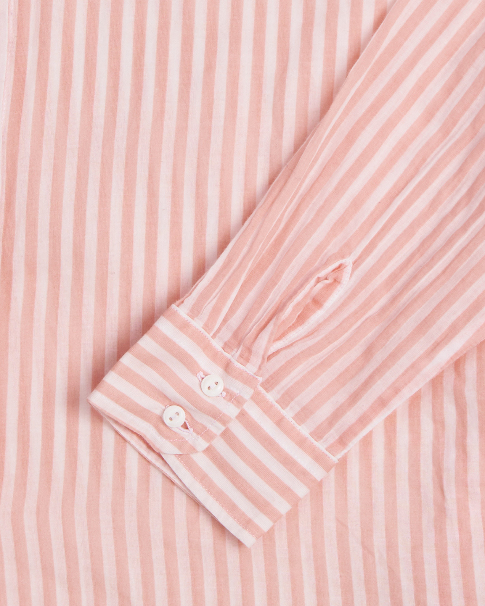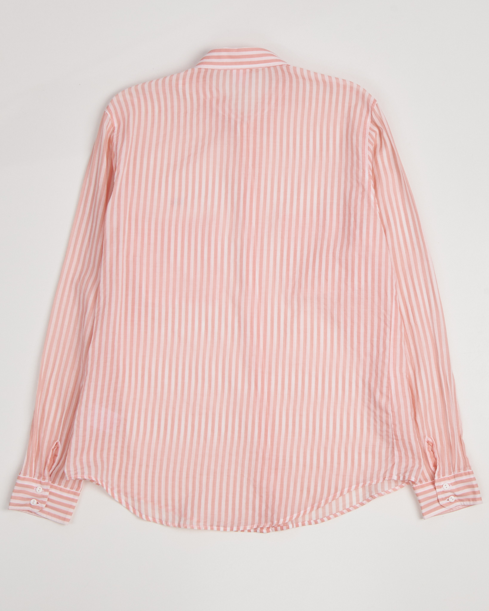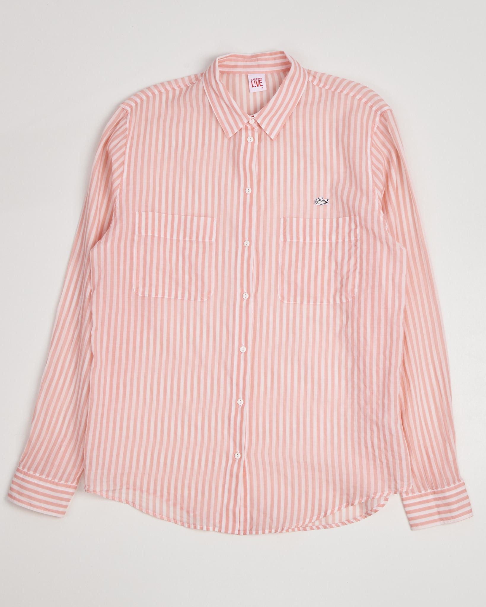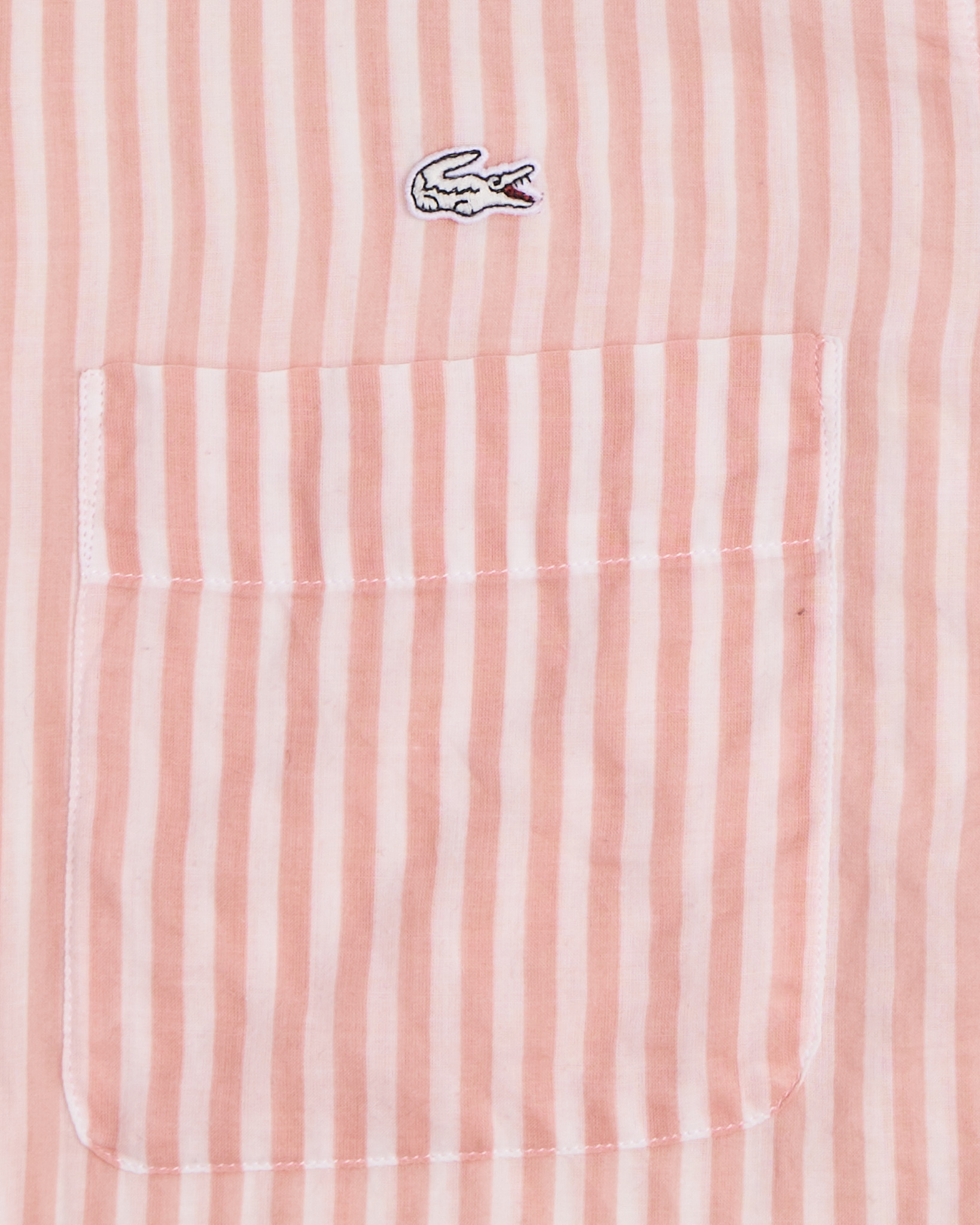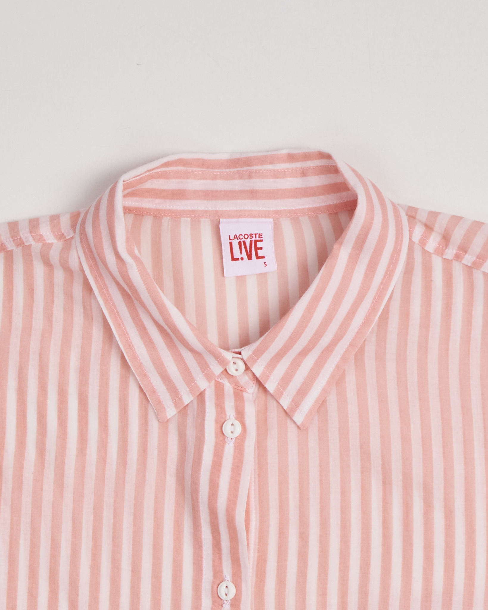 Рубашка из тонкого хлопка от Lacoste. Прямой крой, свободная посадка. Принт в акцентную полоску, аккуратные нагрудные карманы, вышитый логти бренда на груди.