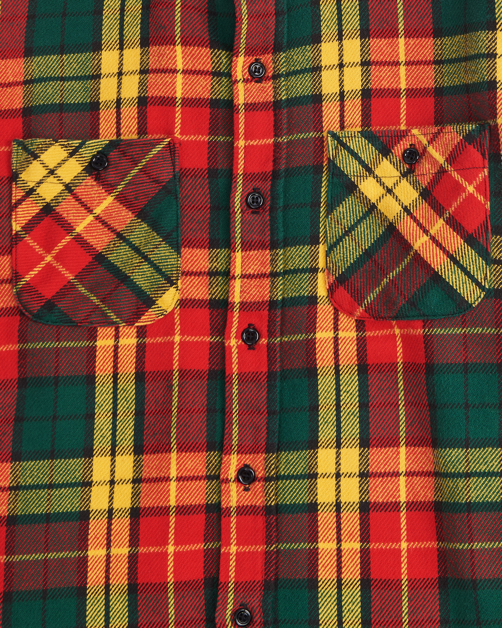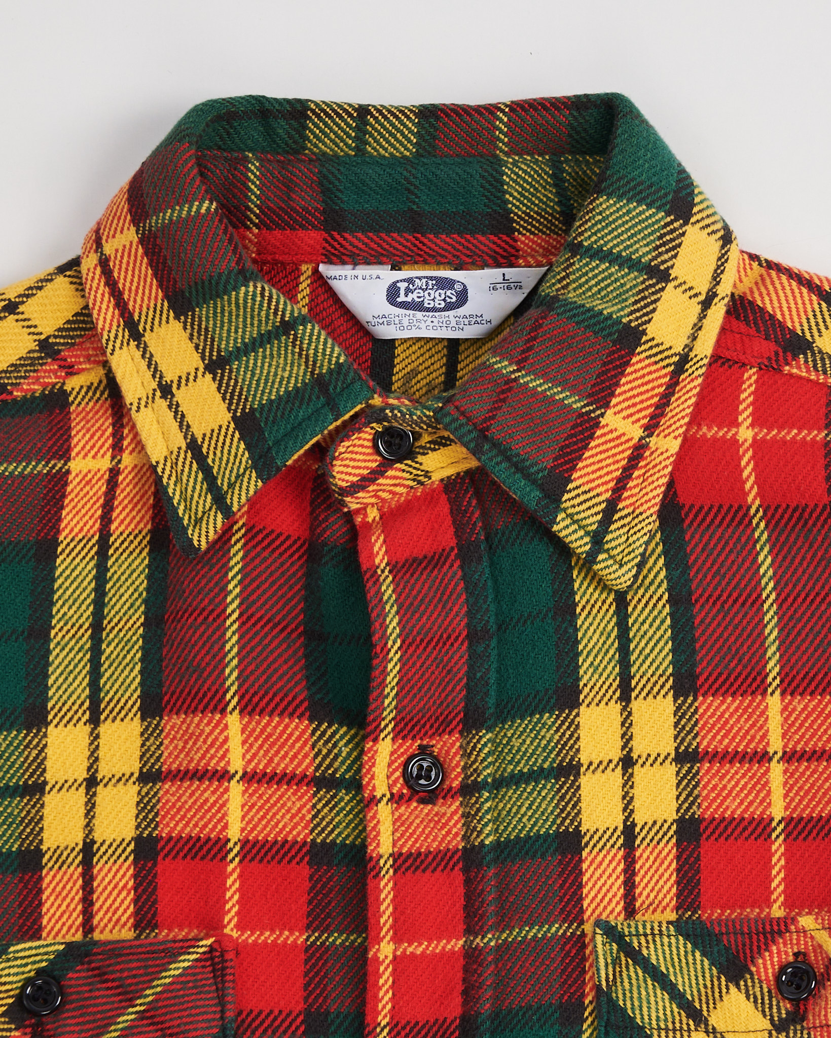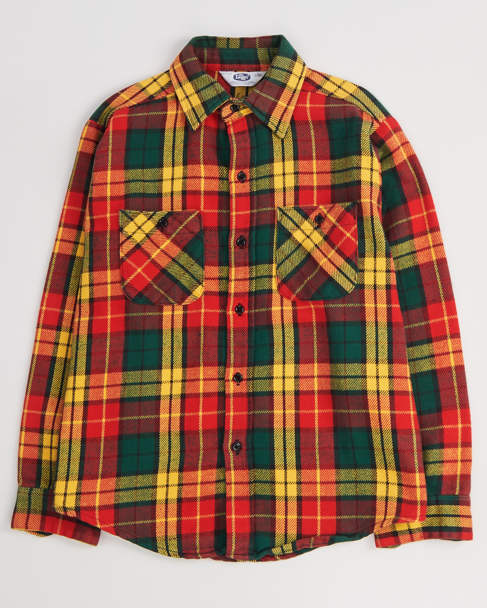 Рубашка из хлопка Mr. Leggs в клетку красного, желтого и зеленого цвета. Свободная посадка. Два функциональных кармана на груди. Застежка на пуговицы по всей длине. Сделано в США.