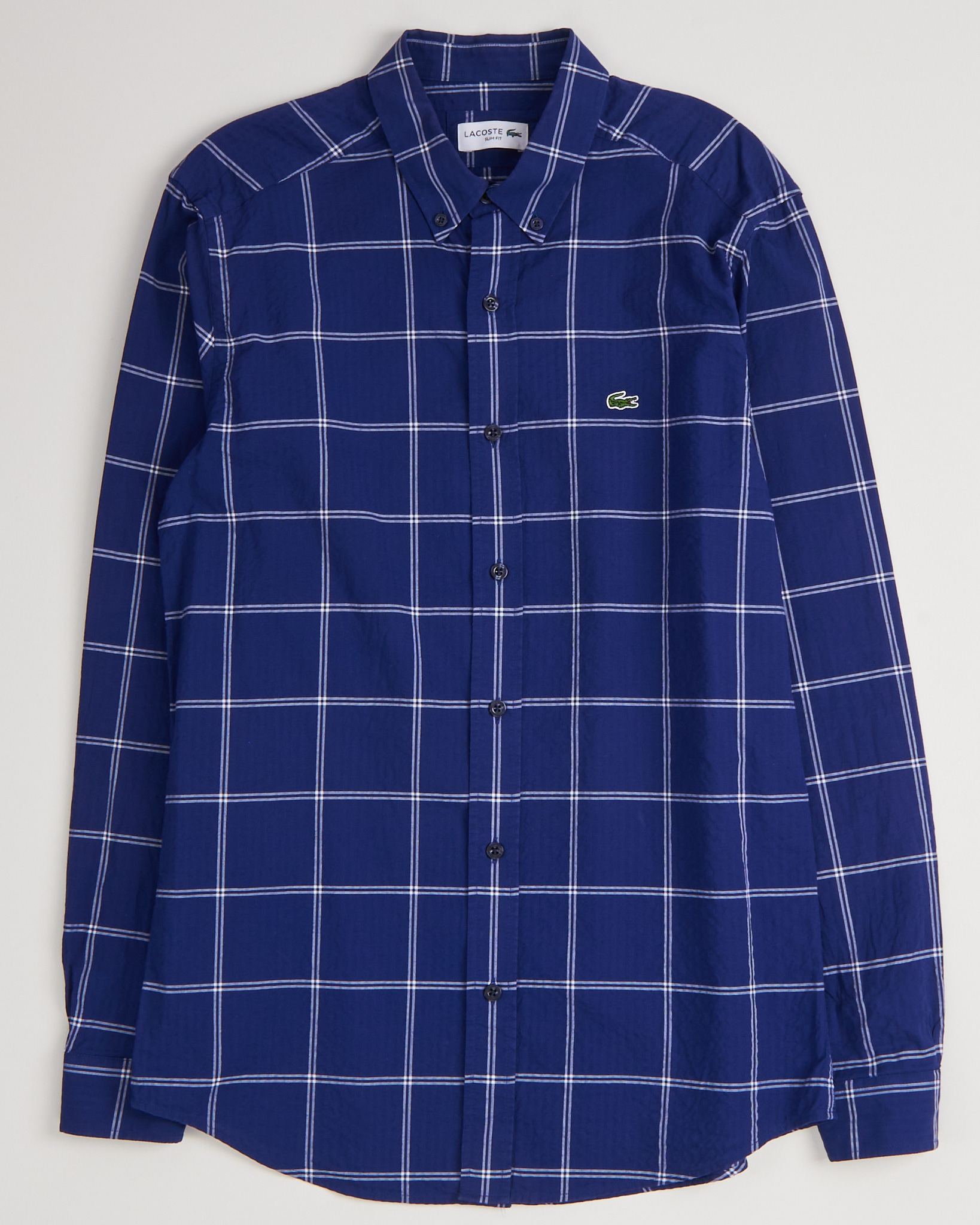 Мужская Рубашка Lacoste. Клетчатый узор с эффектом сжатой ткани. Брендированные пуговицы с перламутровым отливом.