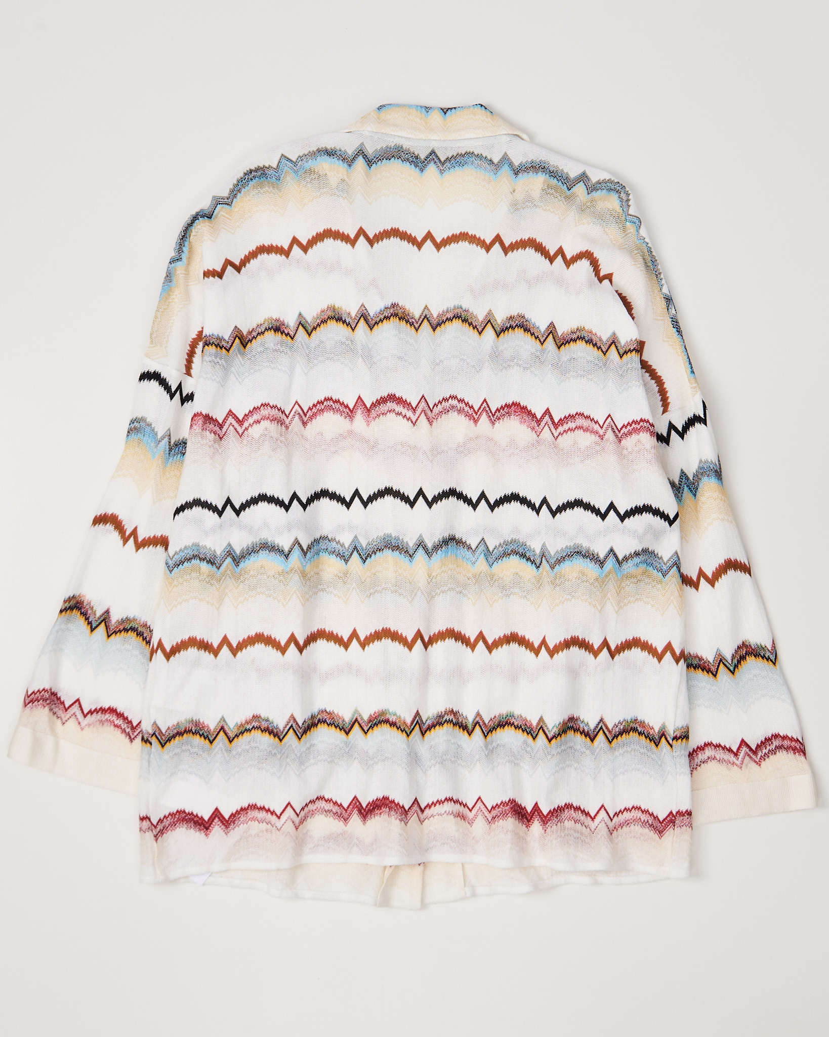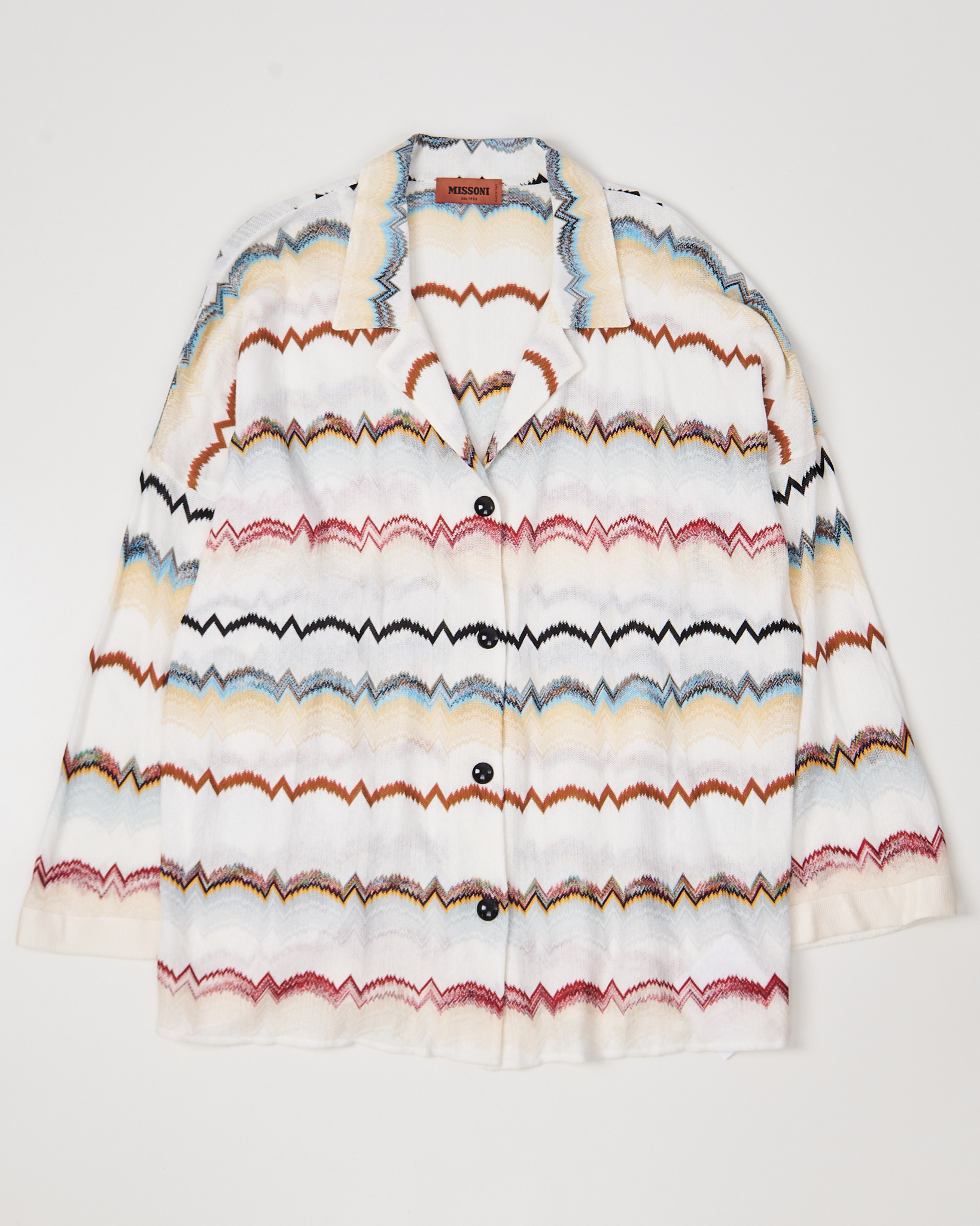Рубашка Missoni из хлопка и вискозы. Прямой крой, свободная посадка, рукав реглан. Мягкий материал, аккуратный двубортный воротник и акцентный узор ярких оттенках.
