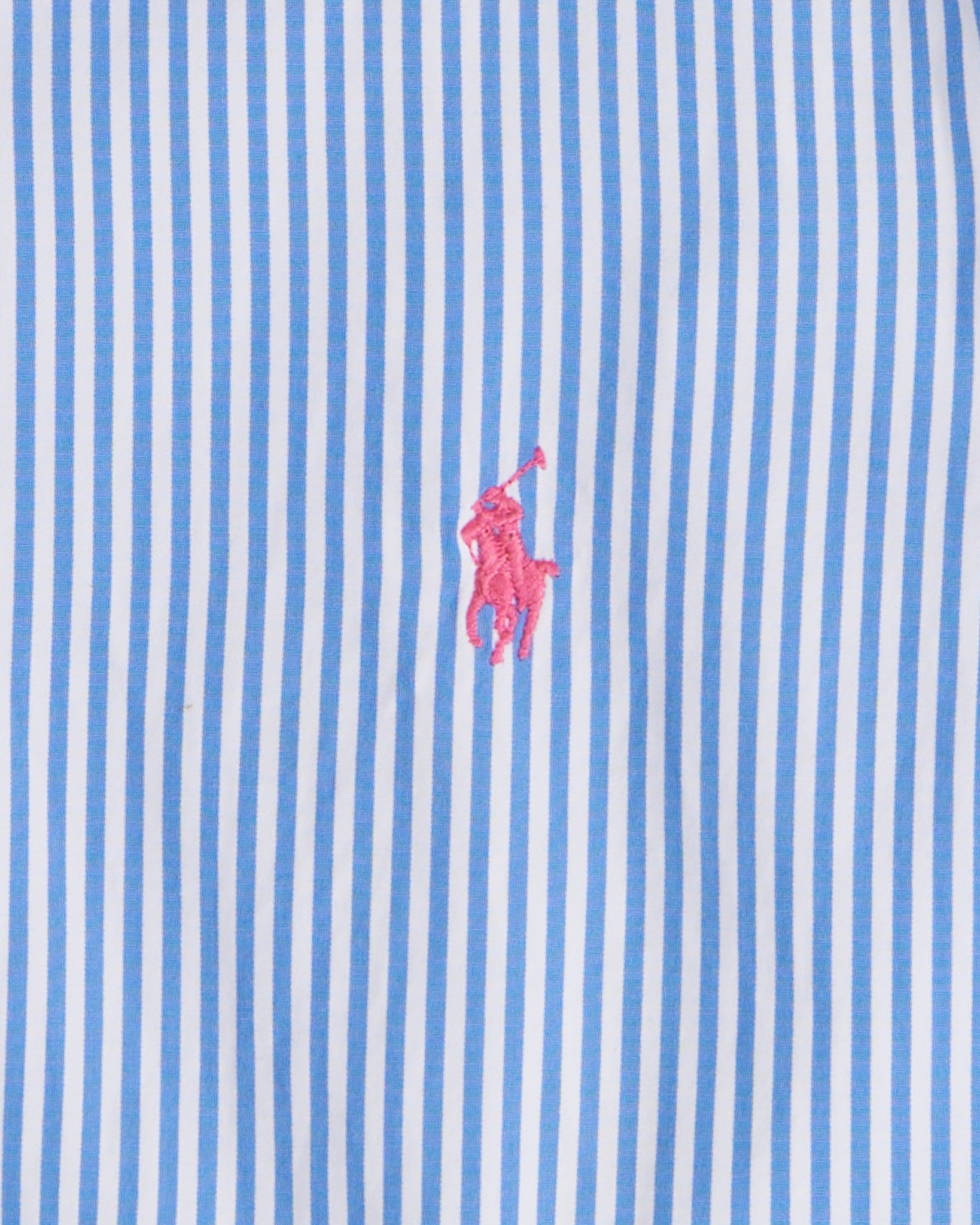 Рубашка хлопковая Polo Ralph Laureтn. Свободный силуэт. Прямая посадка. Воротник button-down фиксируется на пуговицах. Классическая планка. Широкие манжеты с застежкой на пуговицы. На груди контрастный логотип розового цвета.