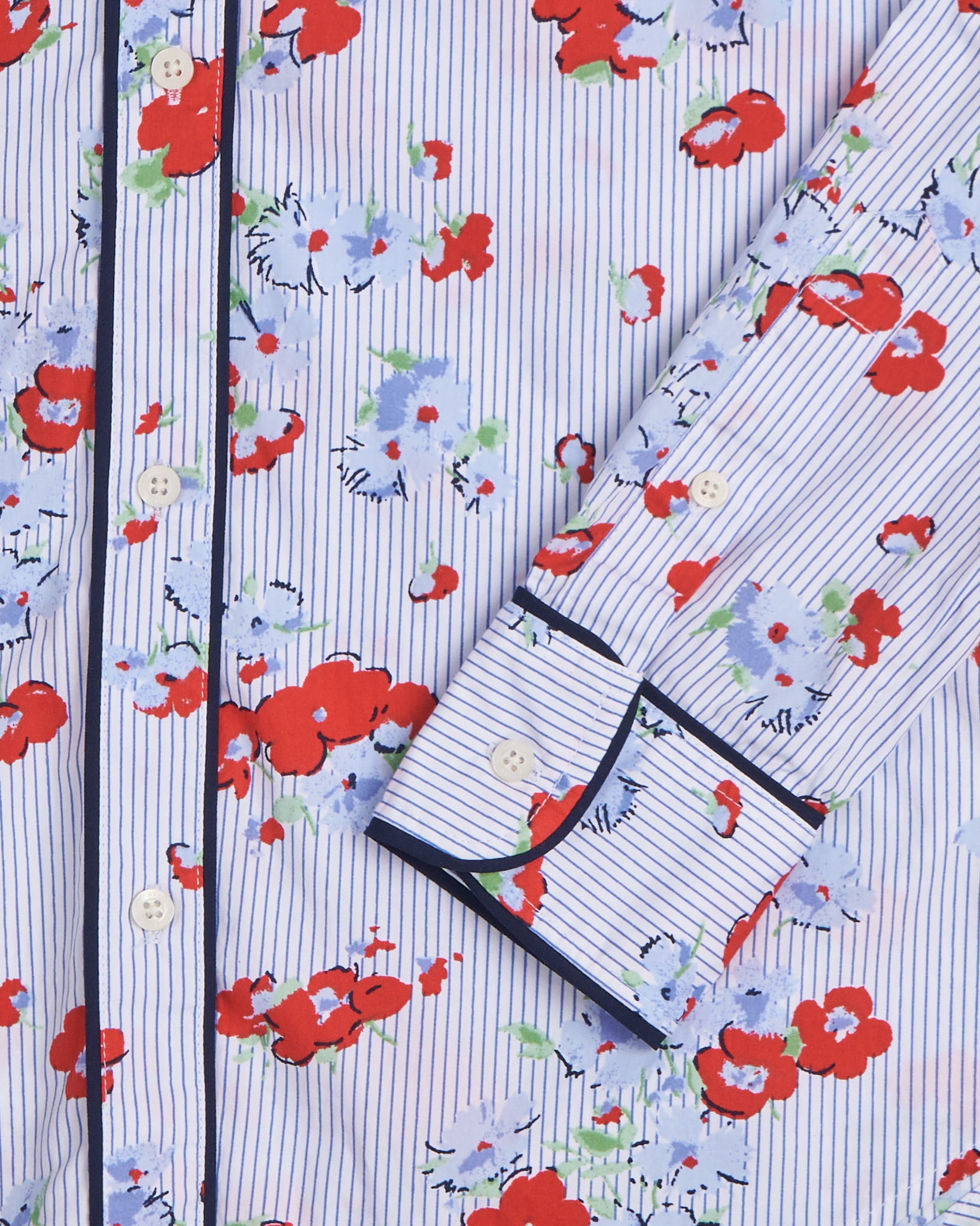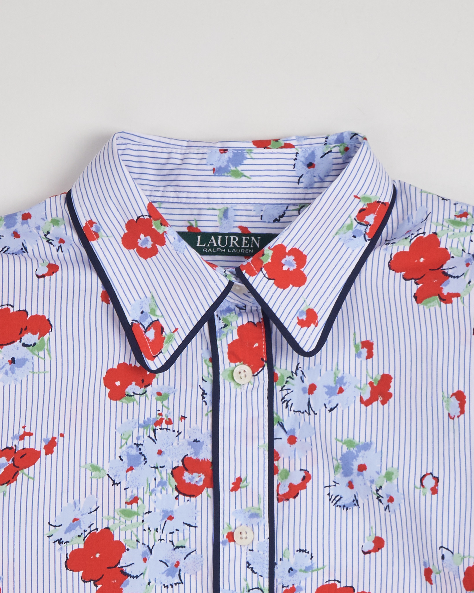 Рубашка Ralph Lauren с цветочным принтом. Классический крой. Контрастная окантовка по планке и воротнику. Бреднированые пуговицы