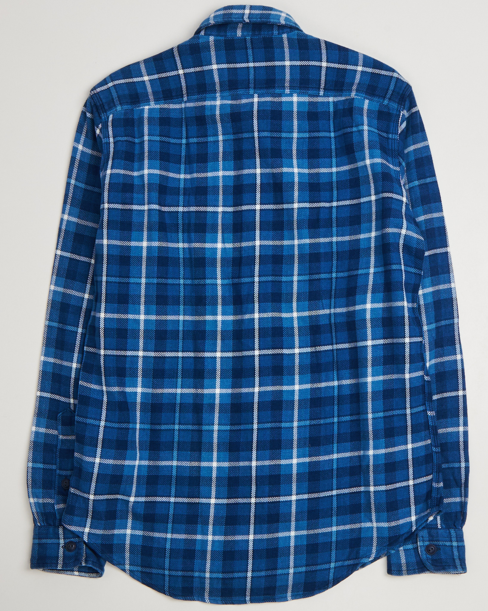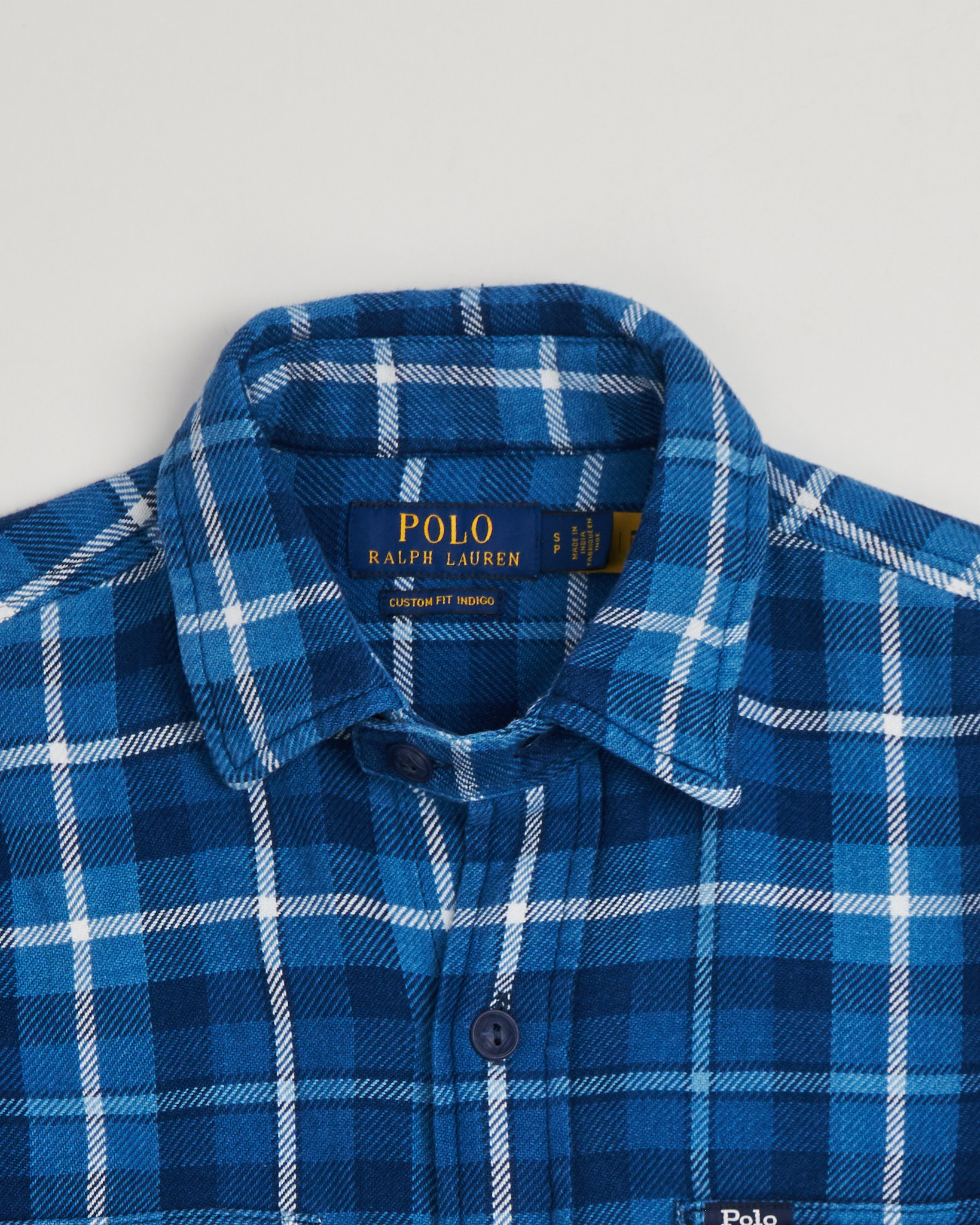 Классическая синяя рубашка в клетку от Polo Ralph Lauren. Прямой крой, удлинённый силуэт с изогнутым низом, длинные рукава с манжетами, два нагрудных кармана с клапанами на пуговицах.