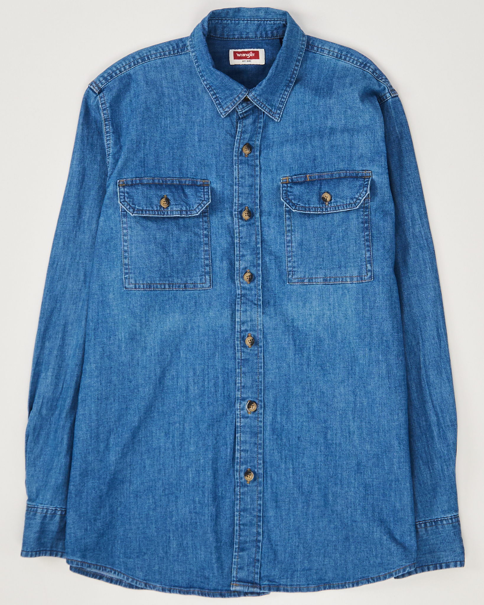 Рубашка Wrangler из плотного хлопка. Прямой крой, свободная посадка. Крупные нагрудные карманы.