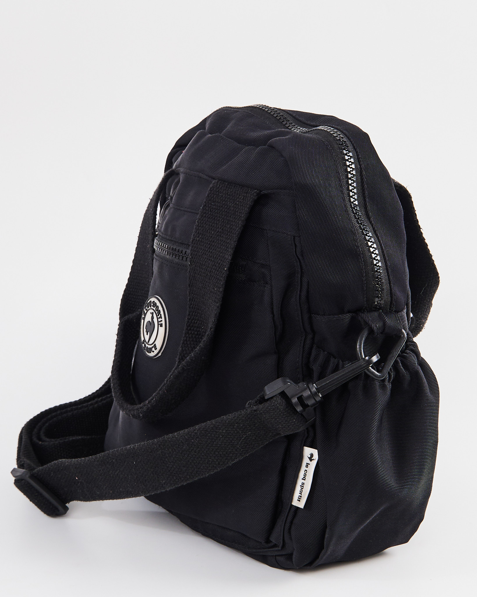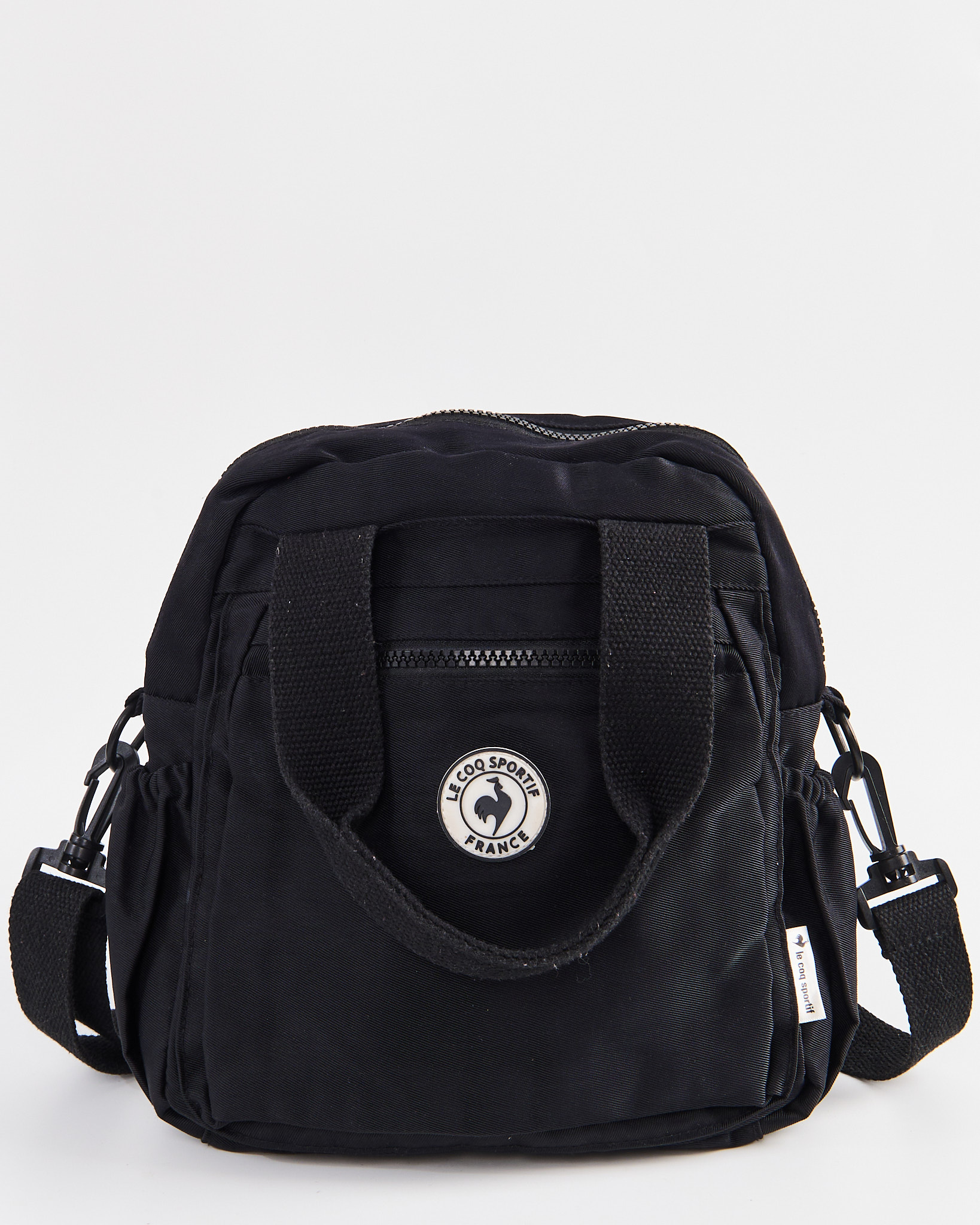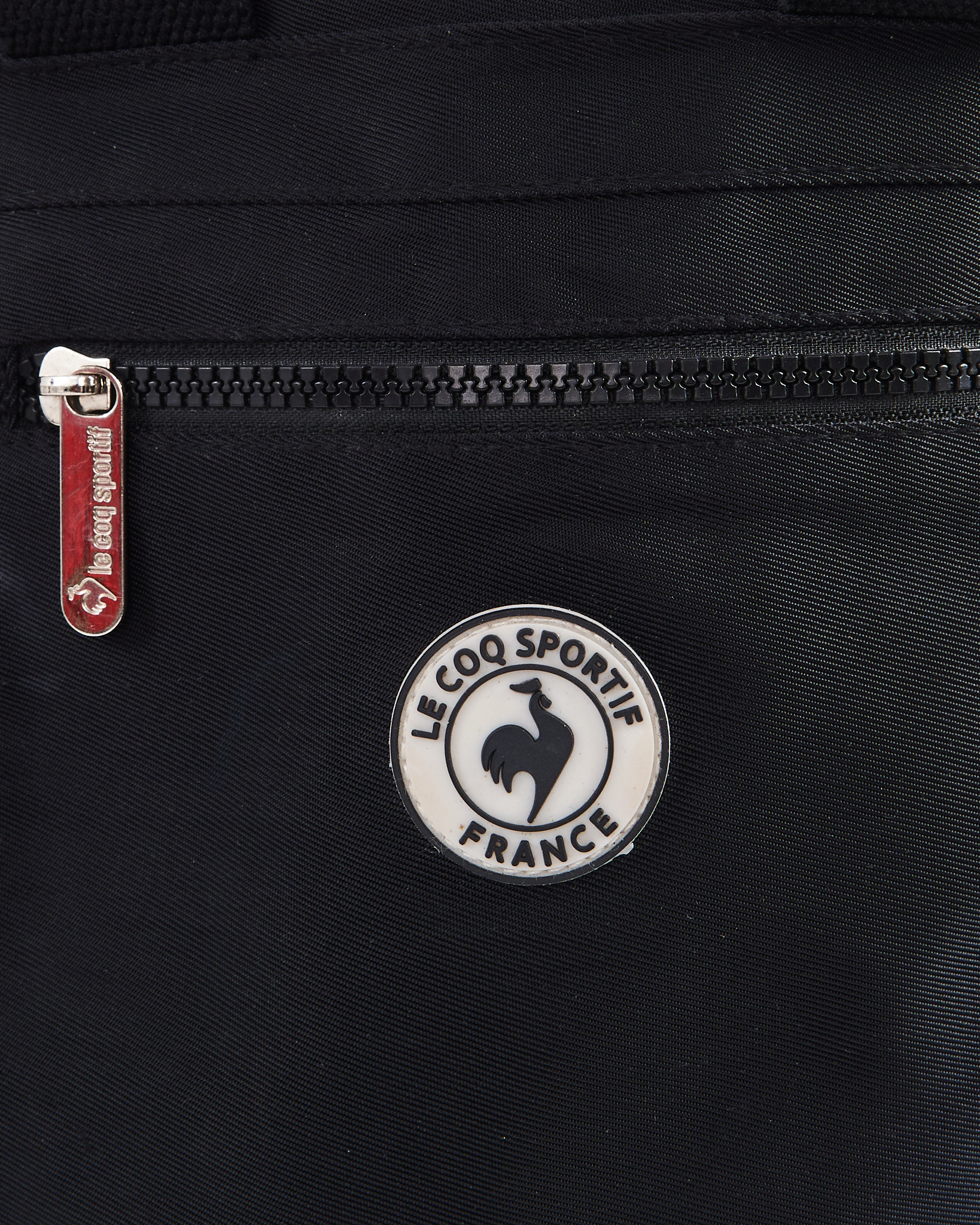 Компактная сумка Le Coq Sportif из плотного текстиля чёрного цвета. Удобные ручки и регулируемые ремешки. Материал гладкий и плотный, поверхность держит форму. Основное отделение на молнии, есть внешний карман для быстрого доступа. Фирменный логотип спереди.