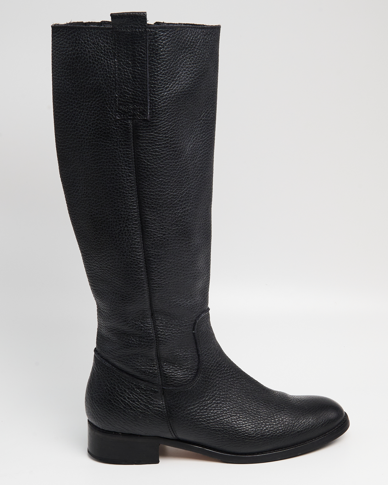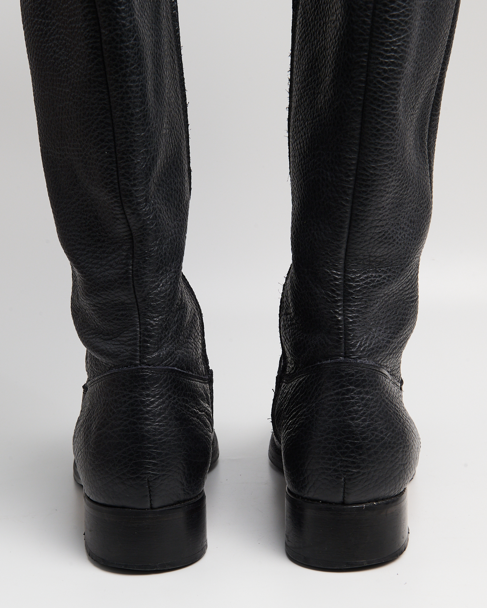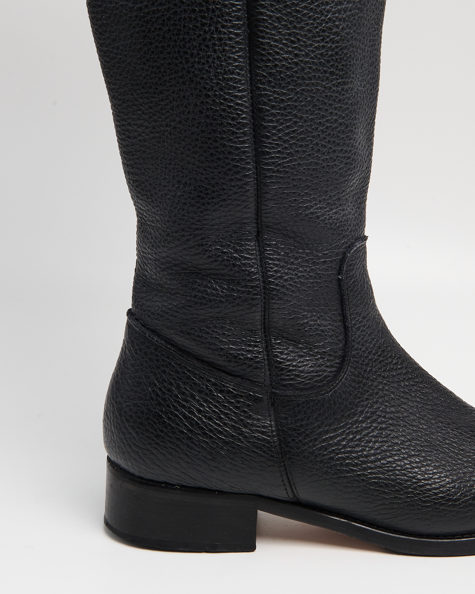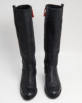Сапоги из плотной зернистой кожи. Высокое голенище, устойчивый низкий каблук. Застёжка-молния с контрастной текстильной застежкой. Итальянское производство.