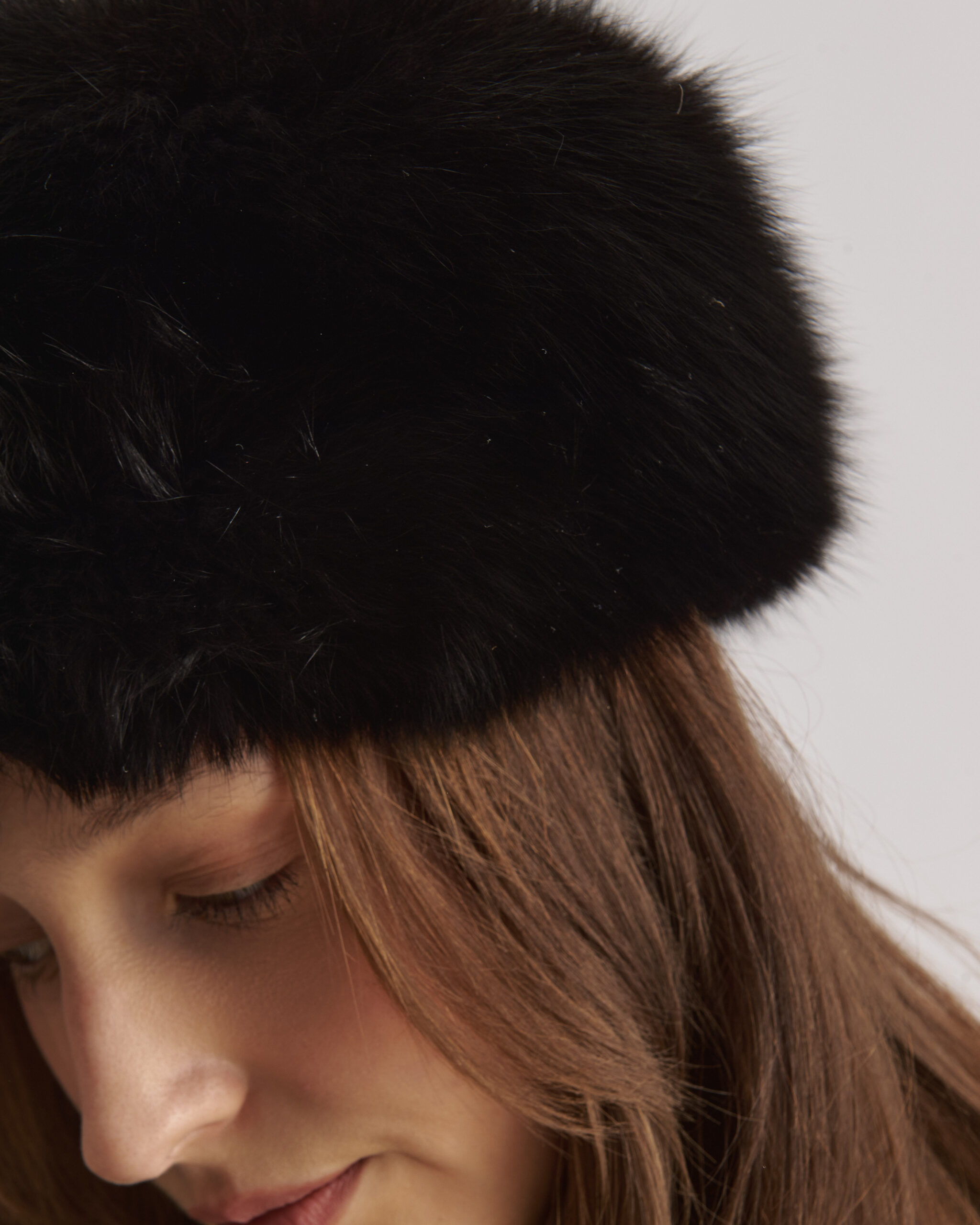 Шапка из 100% натурального меха песца Old Money. Густой и плотный мех, насыщенный черный цвет.