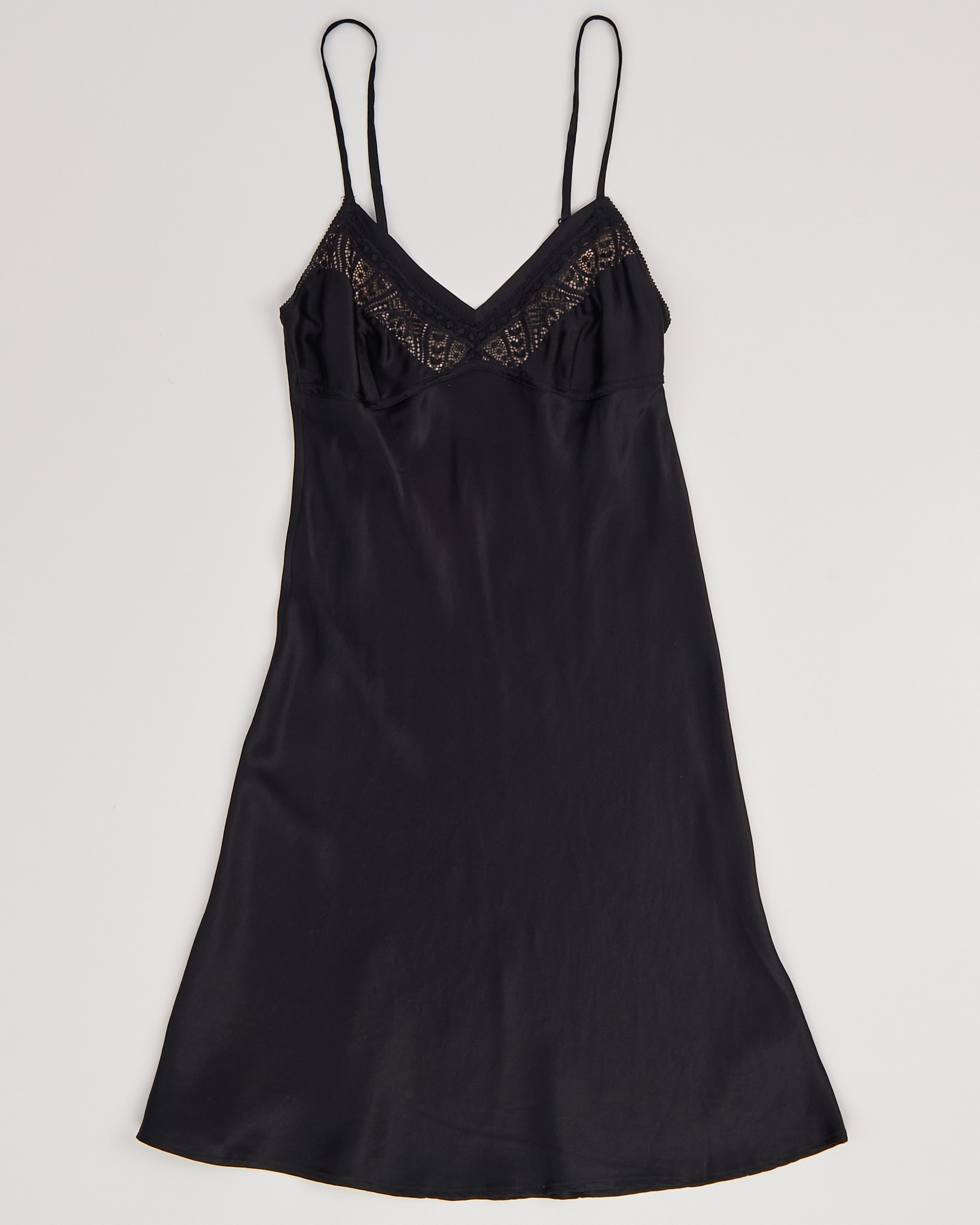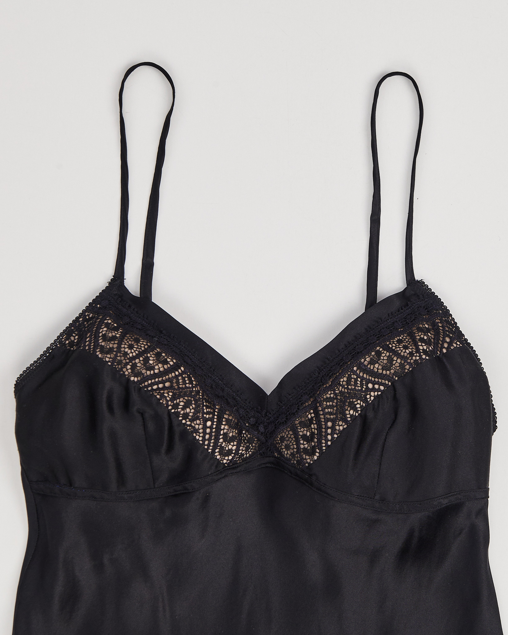 Комбинация из легкой шелковой ткани. Прямой крой, акцентная вставка из кружева. Регулируемые бретельки.