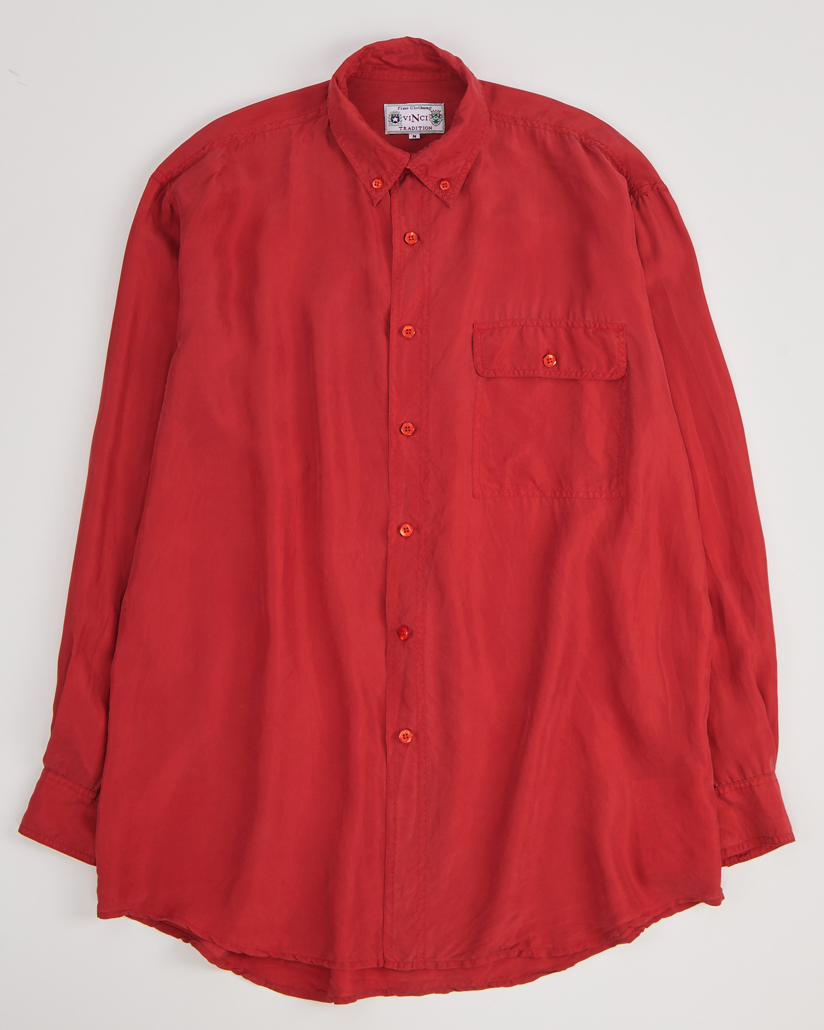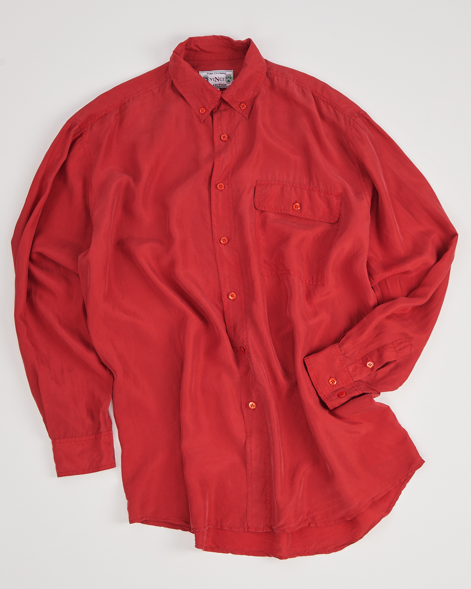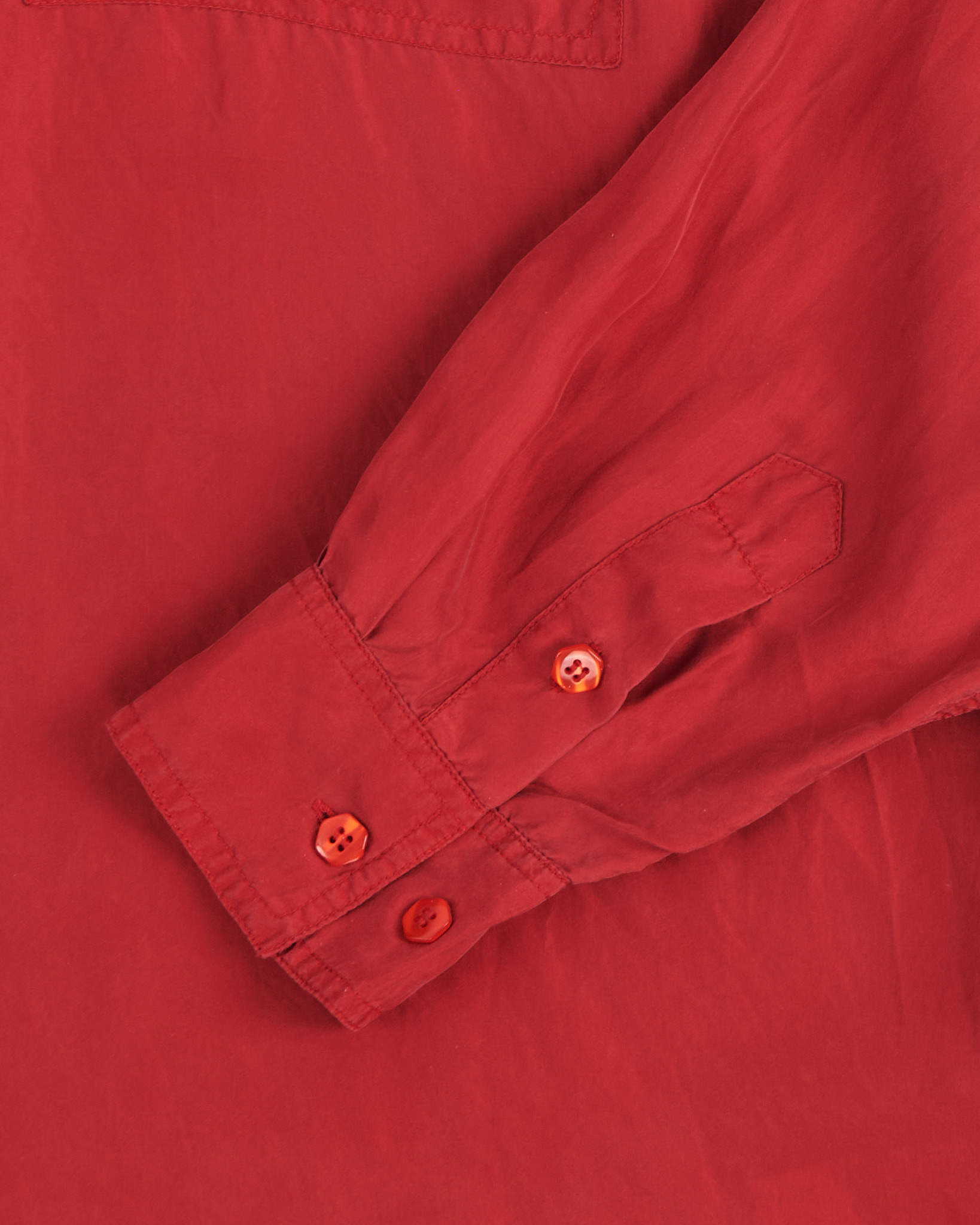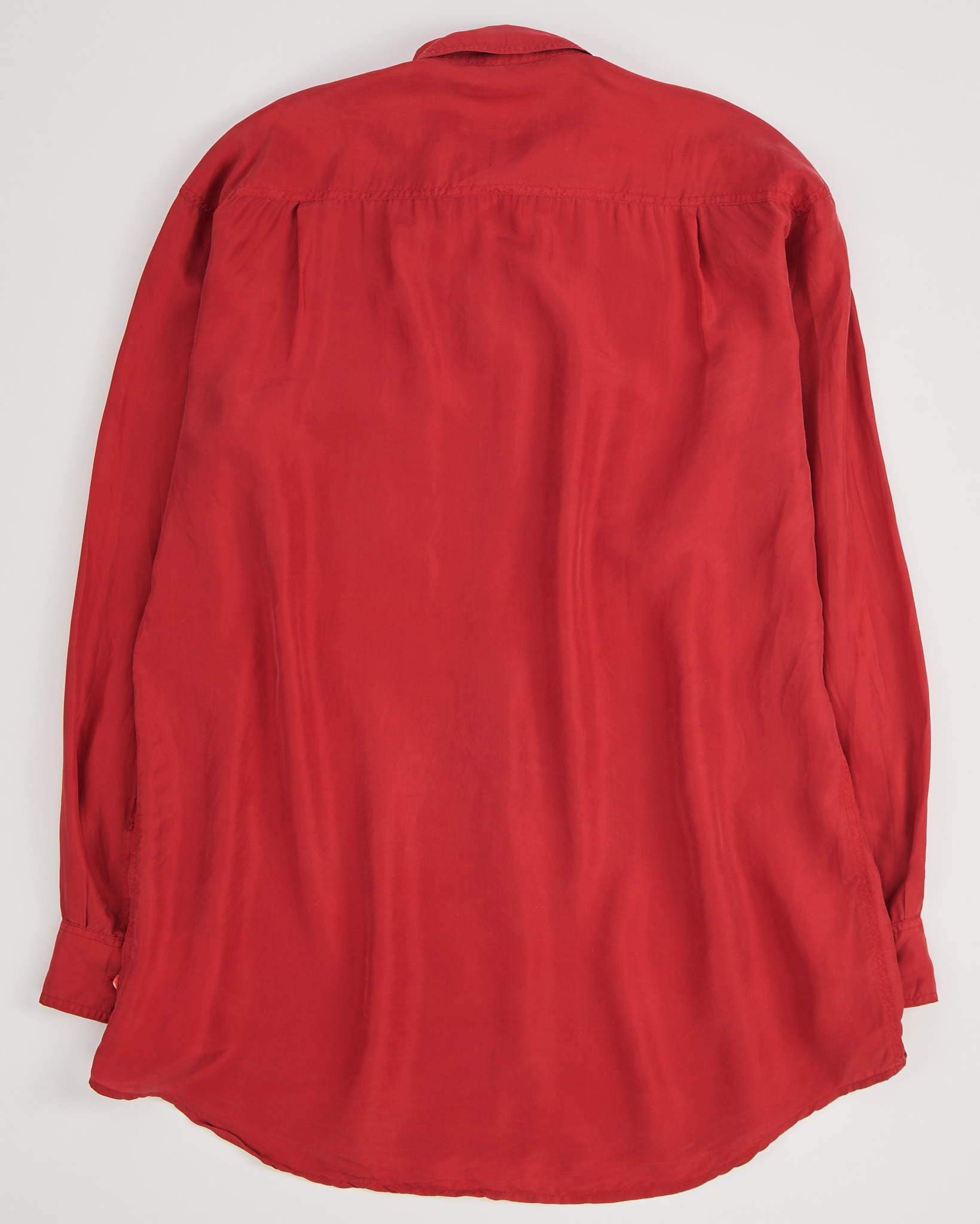 Рубашка из натурального шелка красного цвета. Прямой крой, свободная посадка. Аккуратный воротник, акцентные красные пуговицы с переливами.
