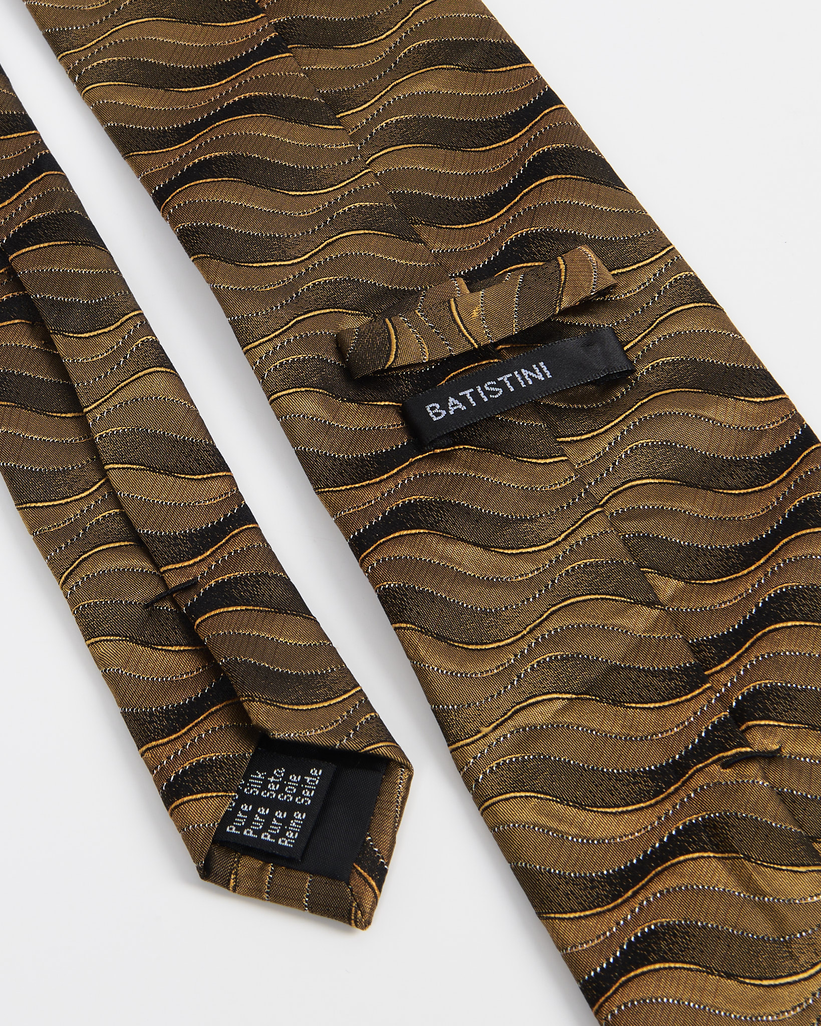 Галстук Batistini из 100% шёлка. Украшен орнаментом в золотисто-коричневой гамме.