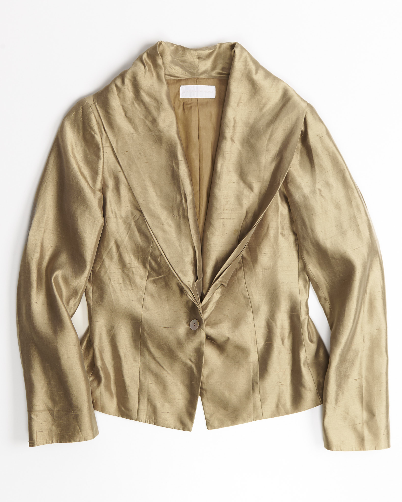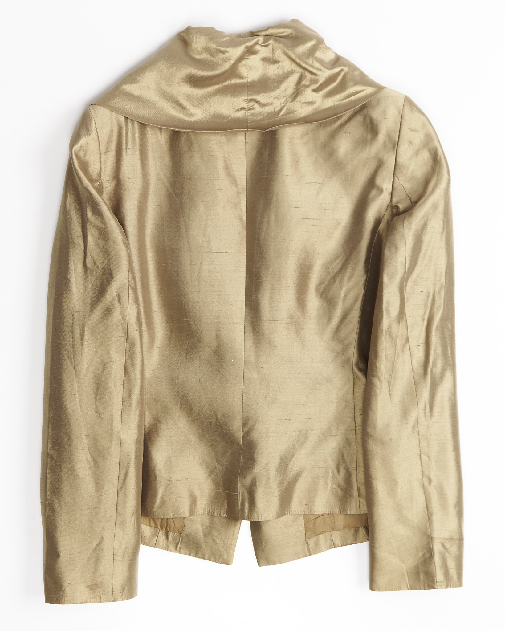 - Жакет из натурального шелка с мягким блеском подчеркивает форму и создаёт аккуратный силуэт