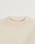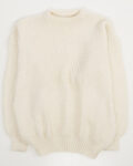 Выполнен из смеси шерсти и акрила, что делает изделие тёплым и при этом лёгким в уходе. Светло-кремового цвета, с объёмным геометрическим узором в фактурной вязке.