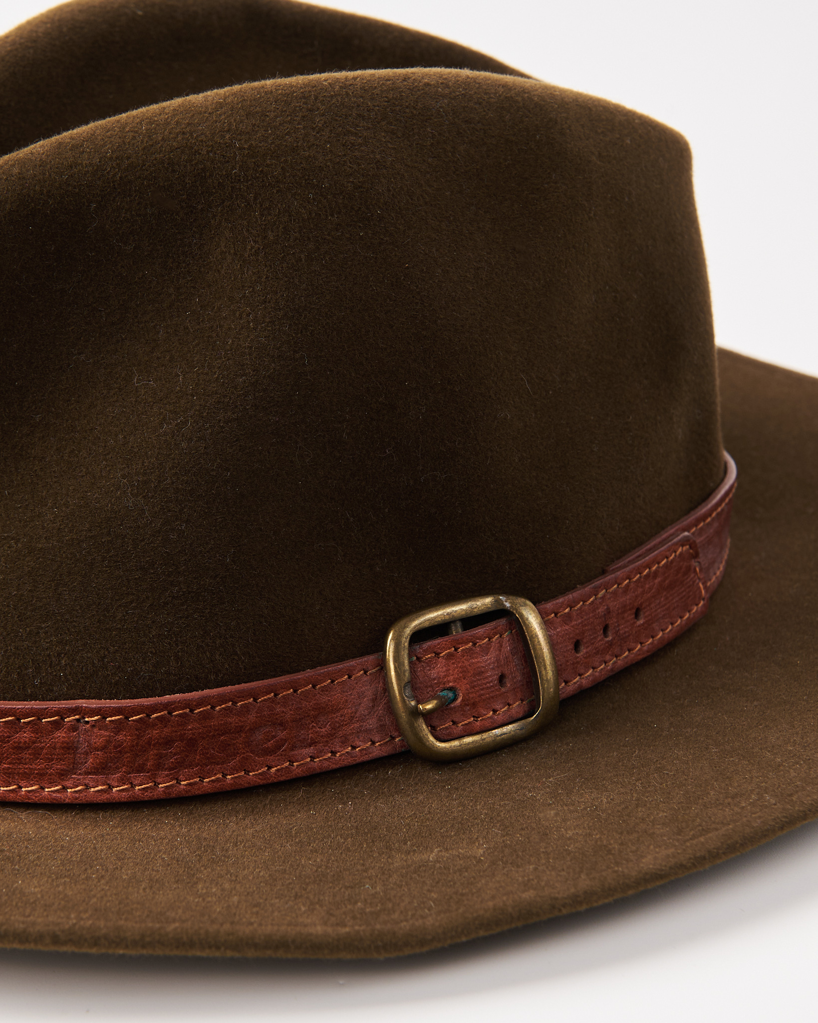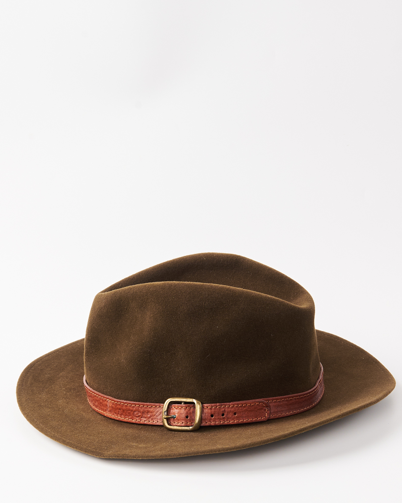 Шляпа ручной работы из фетра из натурального меха кролика. Материал мягкий, бархатистый. Шляпа держит форму и аккуратно садится по голове. Кожаный ремешок с пряжкой добавляет акцент.