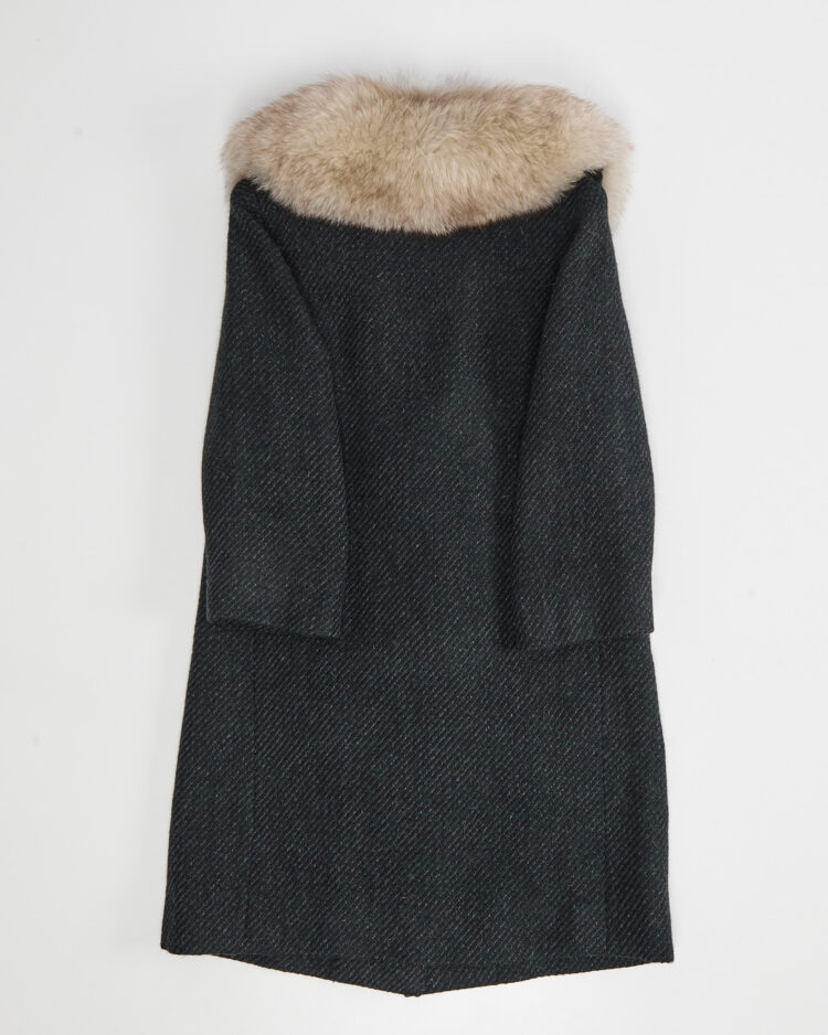 • Объёмная шуба из натурального меха песца с графичным сочетанием светлых и тёмных оттенков.