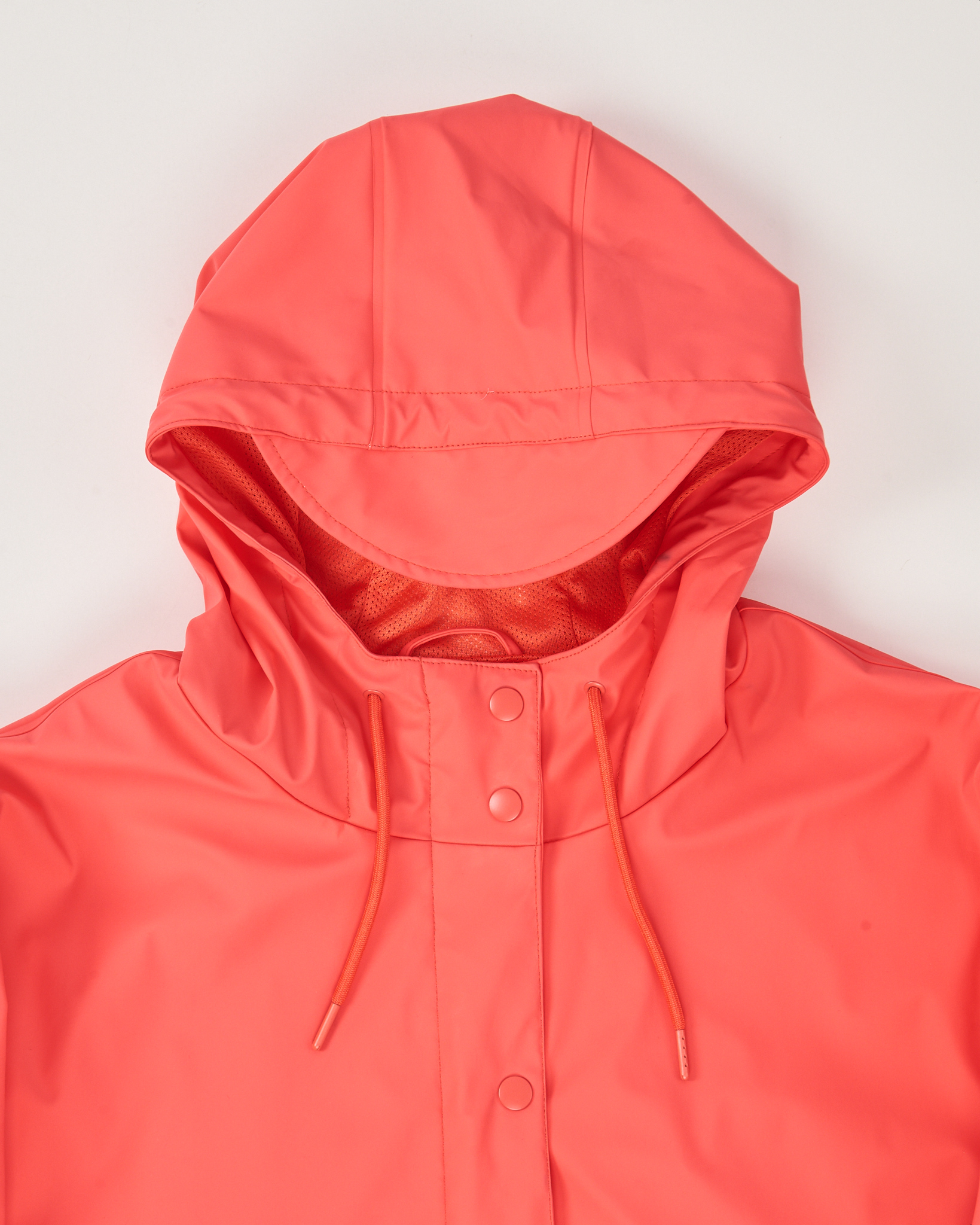 Куртка из лёгкого гладкого материала. Прямой крой, свободная посадка, удобный капюшон на кулиске, застежка на кнопки и молнию, дышащая подкладка.