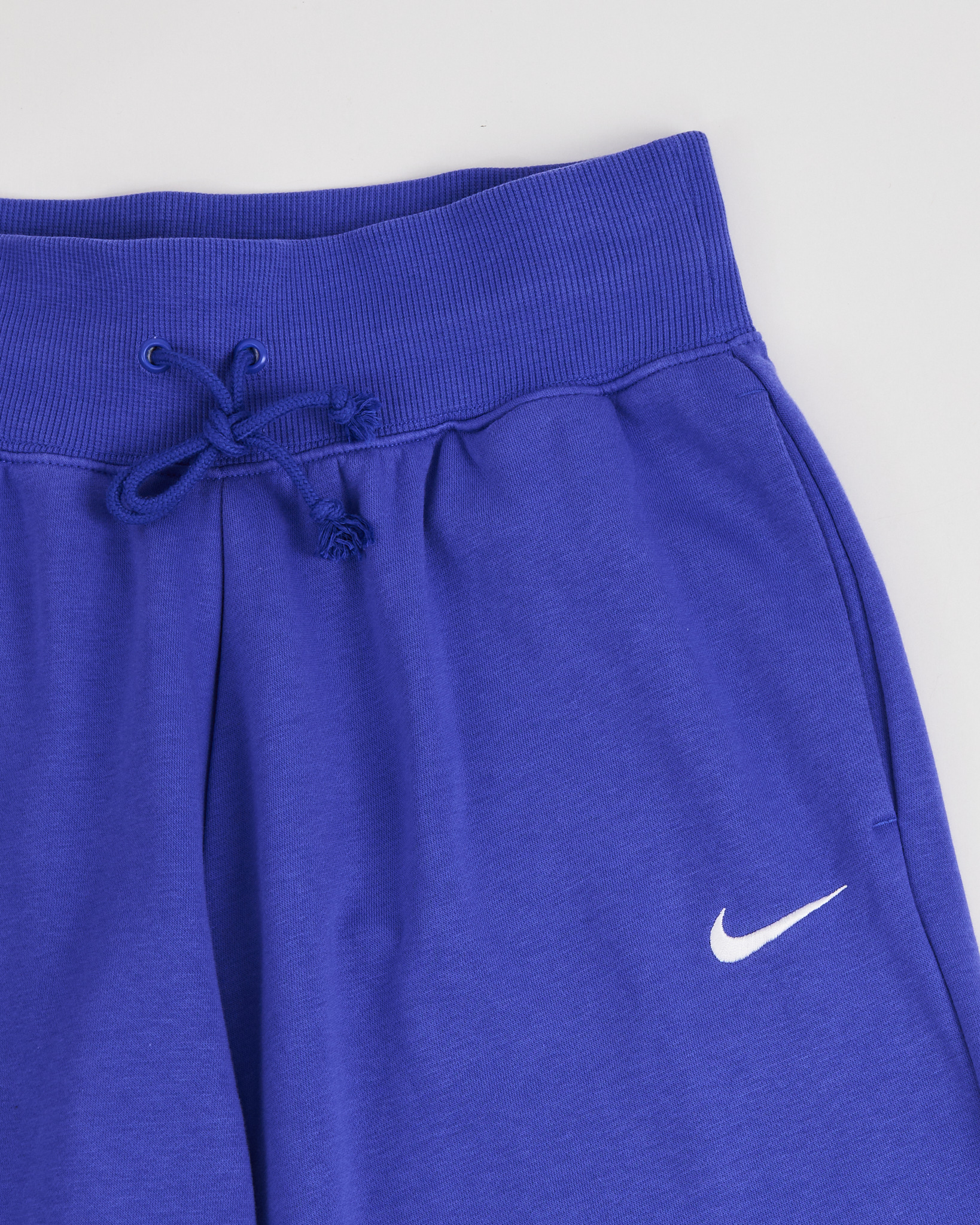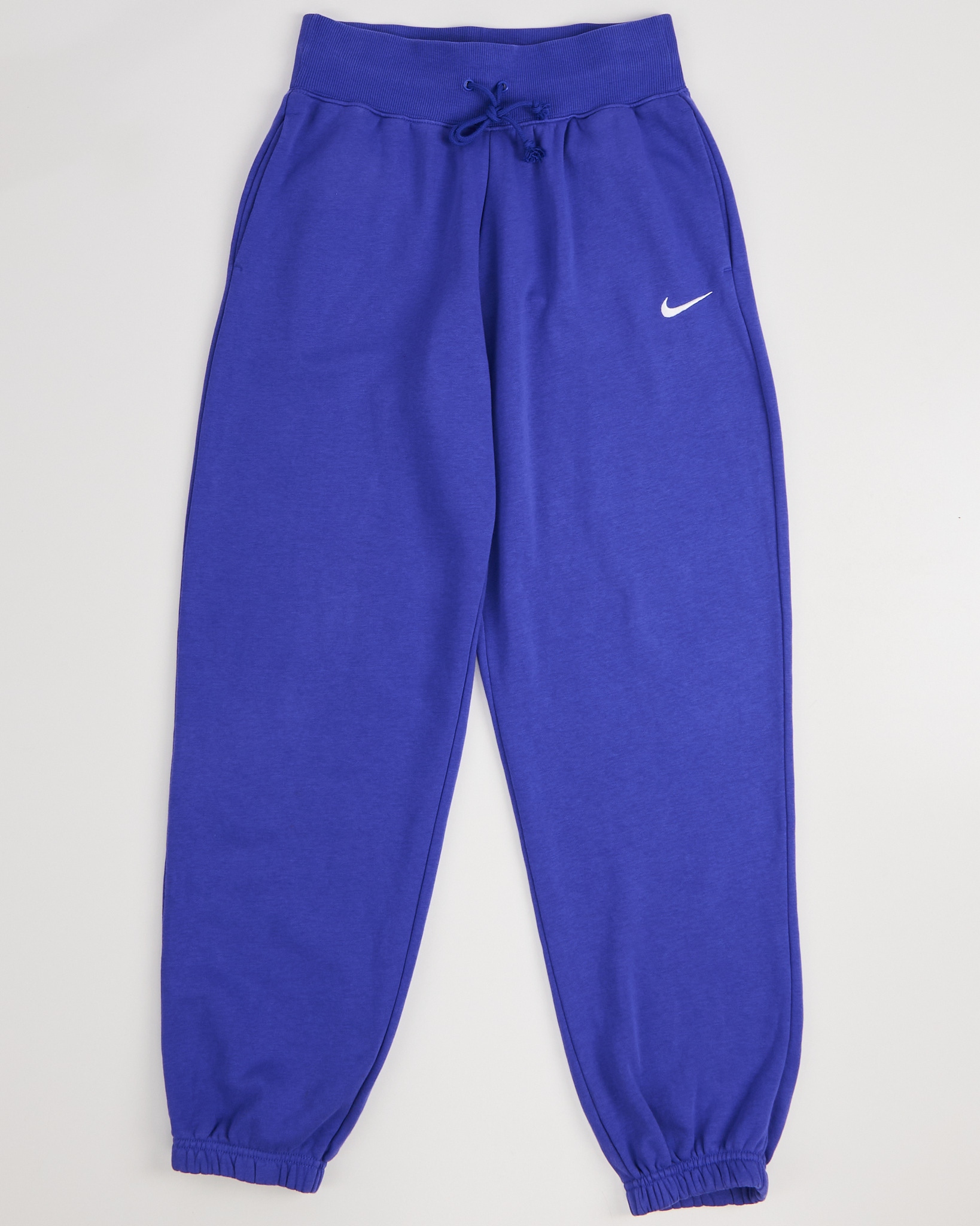 Спортивные брюки Nike фиолетового цвета. Свободная посадка. Высокая линия талии. Широкий эластичный пояс. По бокам расположены функциональные карманы. На бедре расположен контрастный логотип.