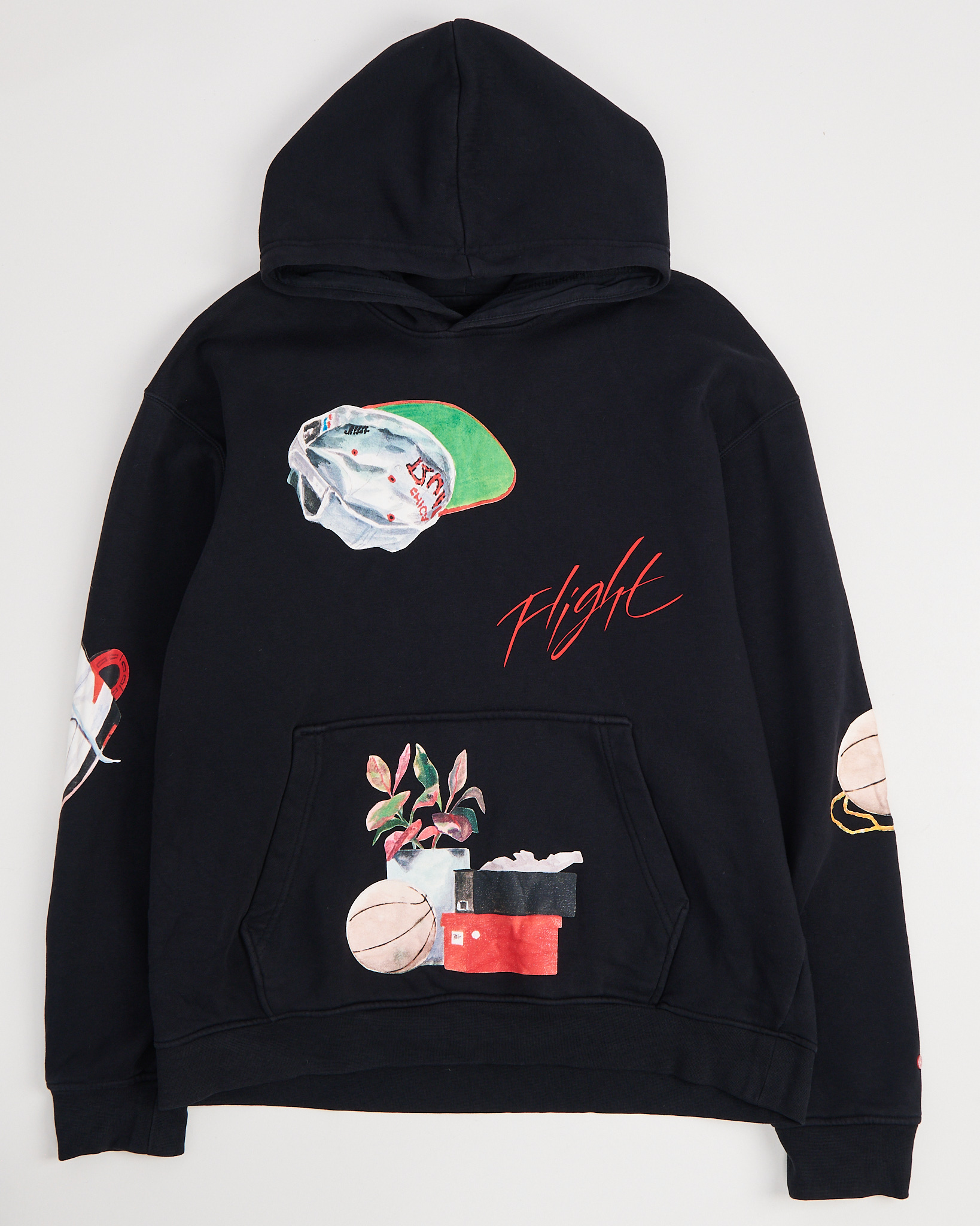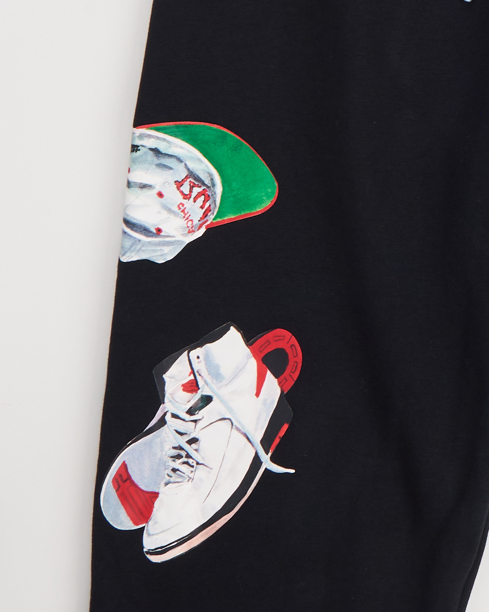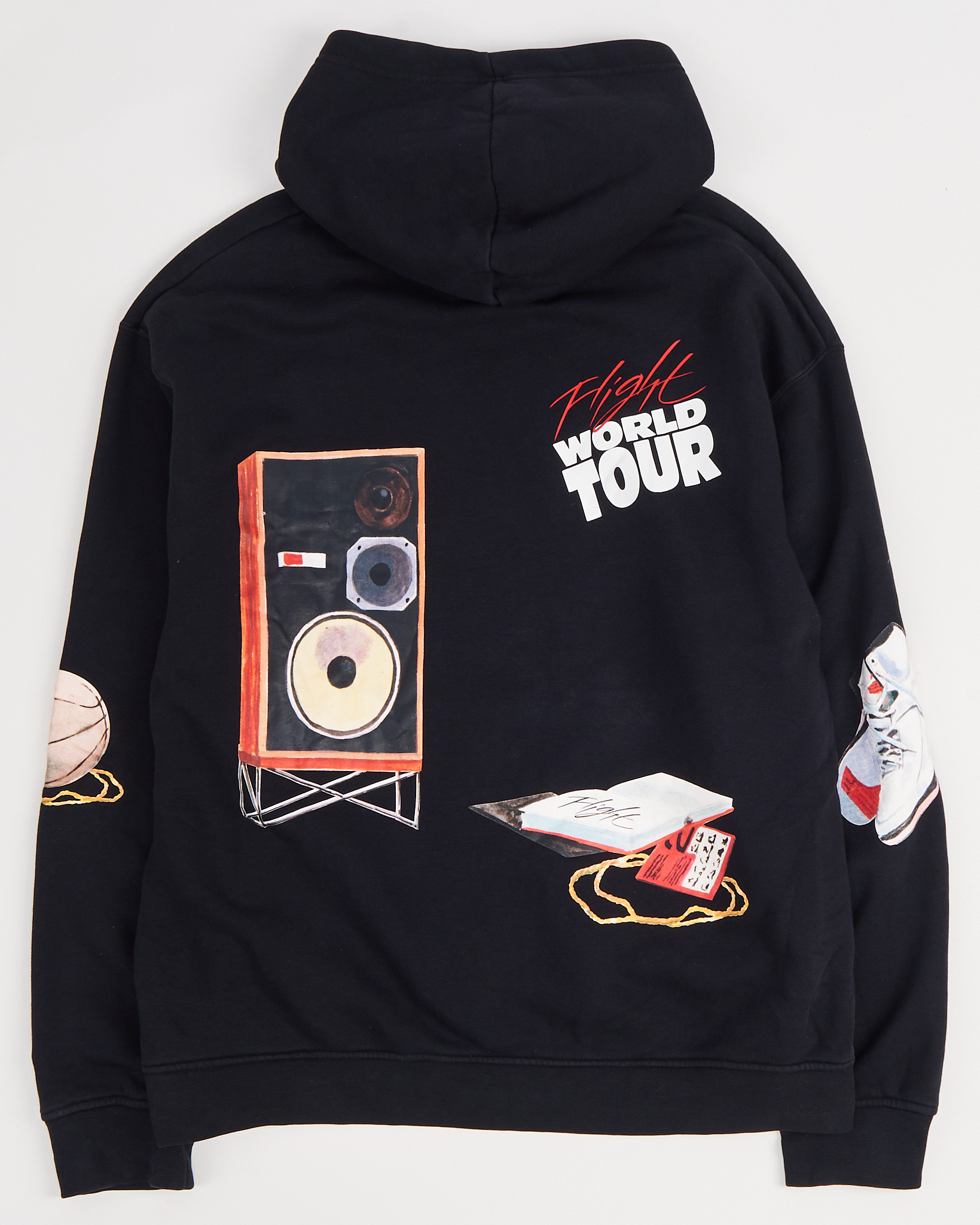 Спортивный костюм Jordan из 80% хлопка. Свободная посадка, мягкая линия плеч, брюки с эластичным поясом и манжетами. Плотный хлопковый материал, гладкий снаружи и приятный к телу изнутри. Принты с кроссовками, колонкой и сценой придают акцент, надпись Flight World Tour на груди.