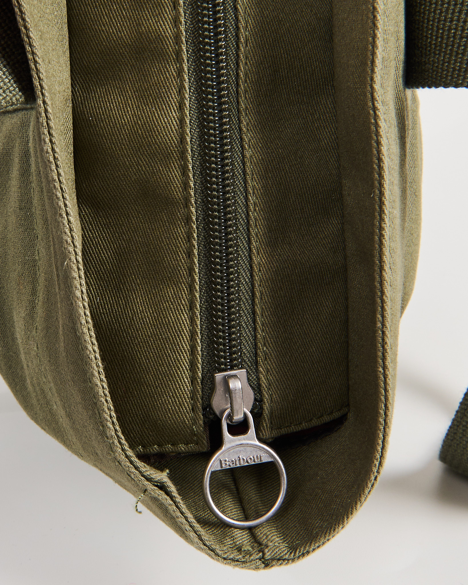 Сумка хлопковая Barbour зеленого цвета. Широкие лямки. Логотип бренда на переднем функциональном кармане. Аккуратная прострочка по швам. Вместительное внутреннее пространство с небольшим карманом на молнии.
